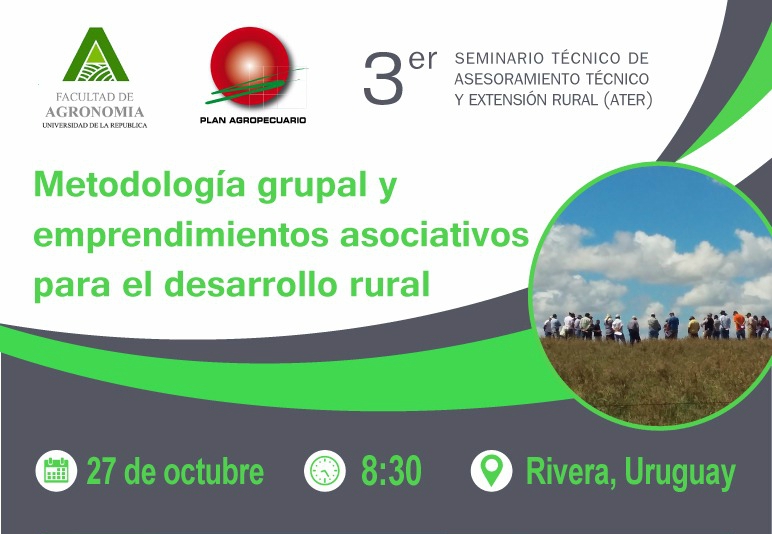 El próximo 27 de octubre, a las 8:30 horas, se realizará el 3er Seminario Técnico de Asesoramiento Técnico y Extensión Rural, que tendrá lugar en el Campus de Rivera.