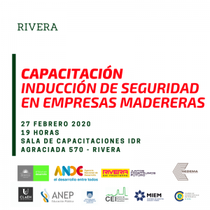 El próximo jueves 27 de febrero de 2016 se realizará una capacitación en Inducción de seguridad en empresas madereras de la ciudad de Rivera. La capacitación ocurre a las 19 horas en Sala de Capacitaciones de la Intendencia Departamental de Rivera.