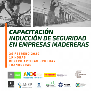 El próximo miércoles 26 de febrero de 2016 se realizará una capacitación en Inducción de seguridad en empresas madereras. La capacitación ocurre a las 19 horas en el Centro Artigas Uruguay , en la ciudad de Tranqueras.