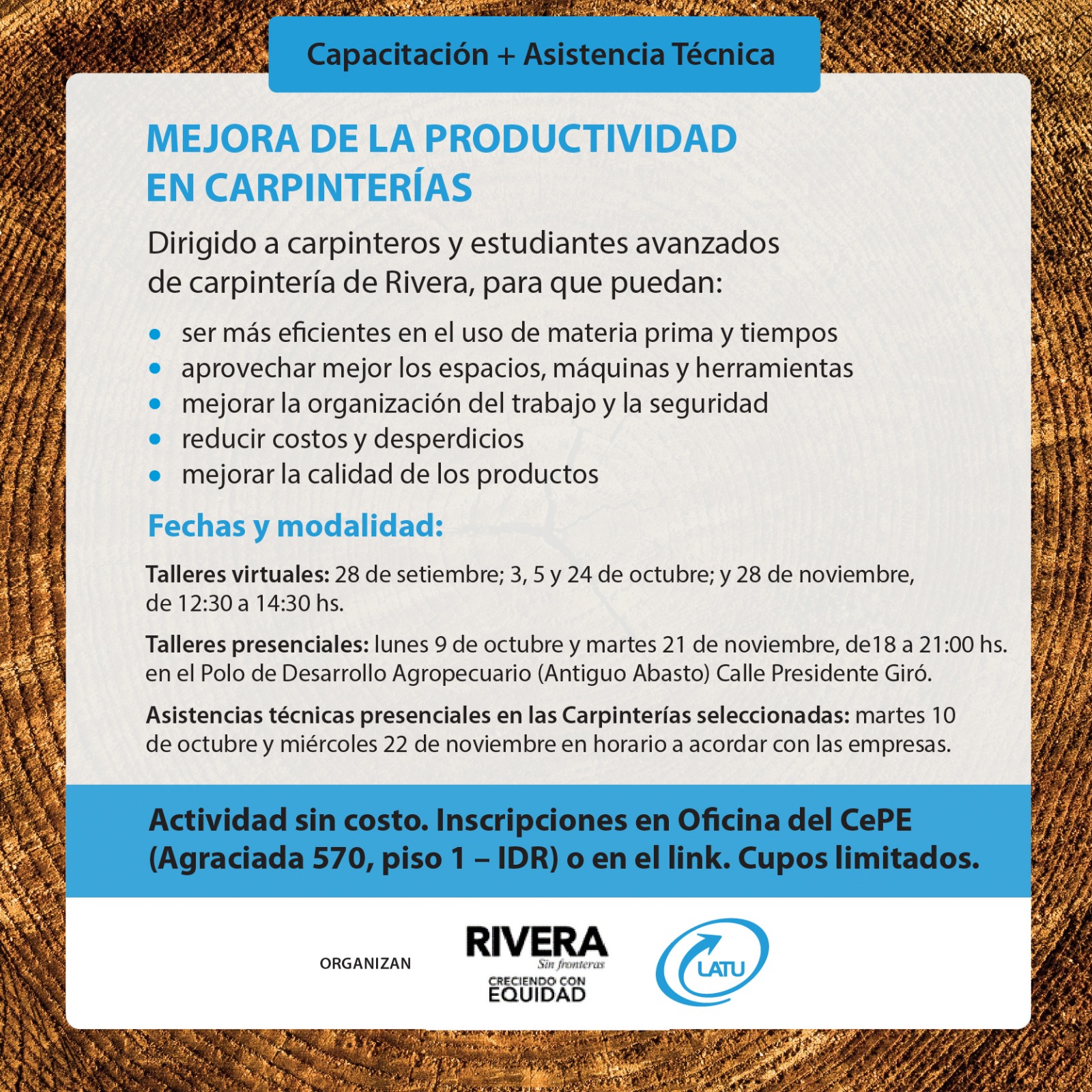 Dirigido a carpinteros y estudiantes avanzados de carpintería de Rivera.
