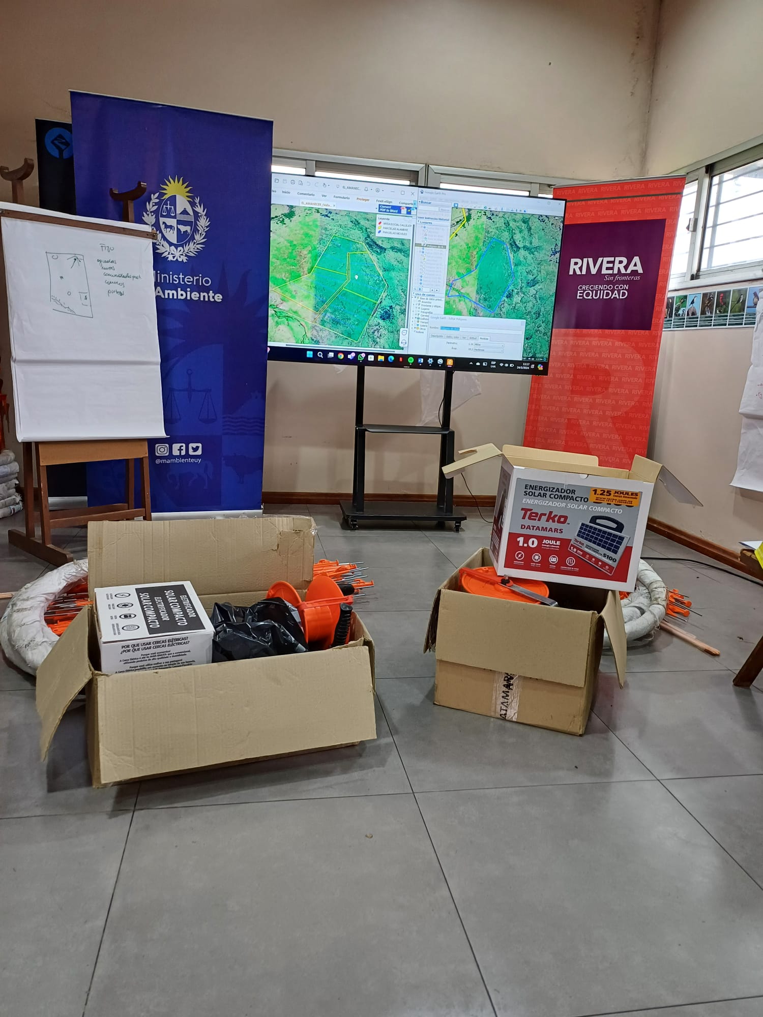 El Director de Medio Ambiente, Fabio Ocaño, junto al Director del Paisaje Protegido Valle del Lunarejo, Álvaro Armúa y técnicos del Ministerio de Ambiente e Intendencia Departamental de Rivera, realizaron la entrega de materiales a los productores beneficiarios. Entre los materiales entregados se incluyeron electrificado completo panel + batería, tres rollos de alambre de 1000 metros, 40 aisladores de arranque, 200 aisladores de línea, 30 varillas de alma de acero, 3 varilla de cobre un carrete de almacenamiento de piola, una rollo de piola para eléctrico de 500 metros y un medidor de corriente.