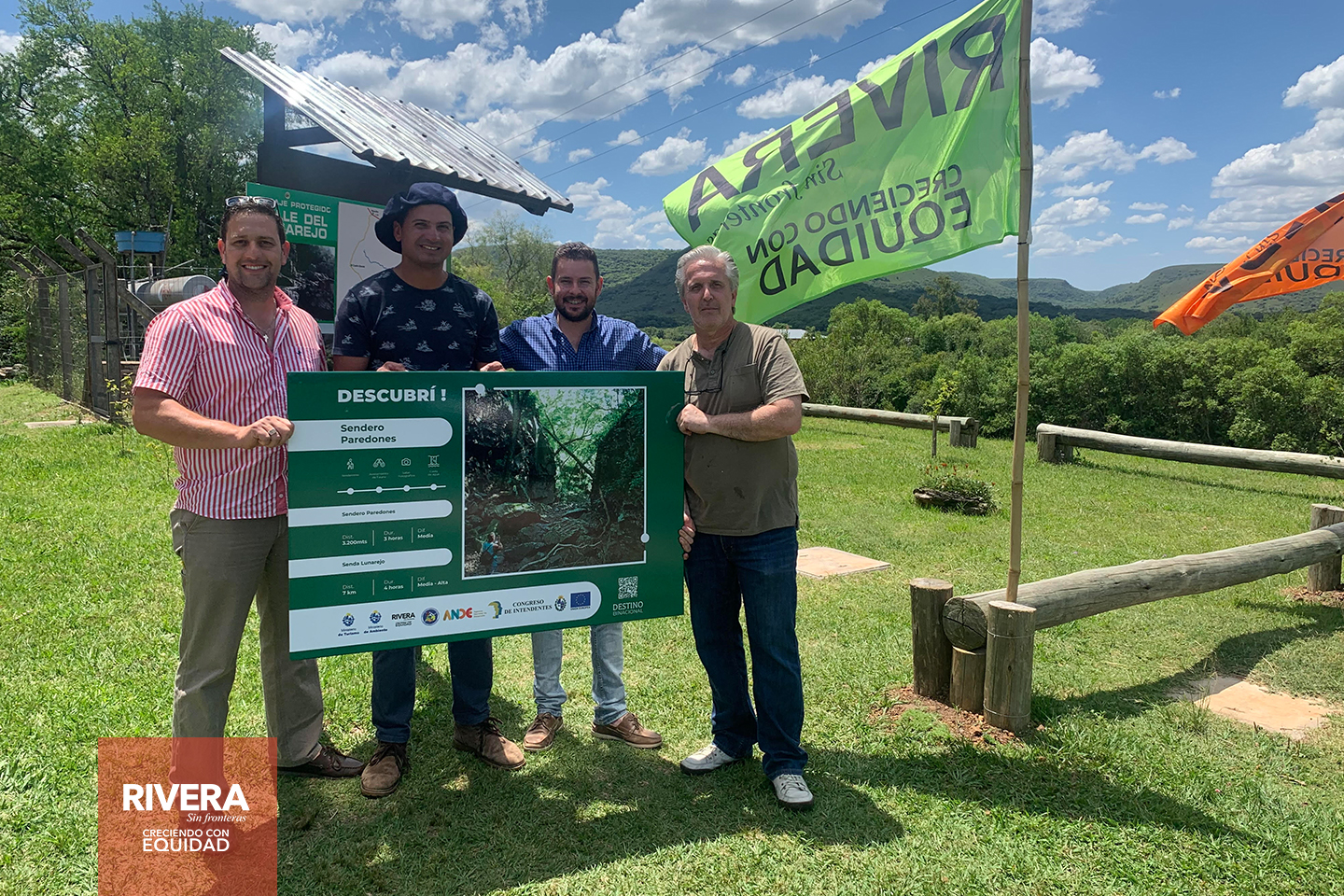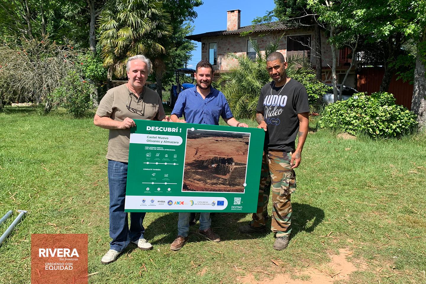 Una de las actividades principales es el apoyo a emprendedores en la renovación de Cartelería Turística. En esta ocasión Enrique Puentes, coordinador del proyecto y técnico de la División Estrategias, Fabio Ocaño Director de Medio Ambiente de la Dirección General de Desarrollo y Álvaro Armúa director del área protegida, hicieron la entrega de 12 carteles a operadores turísticos del Valle del Lunarejo y Olivos Castel Nuovo.
