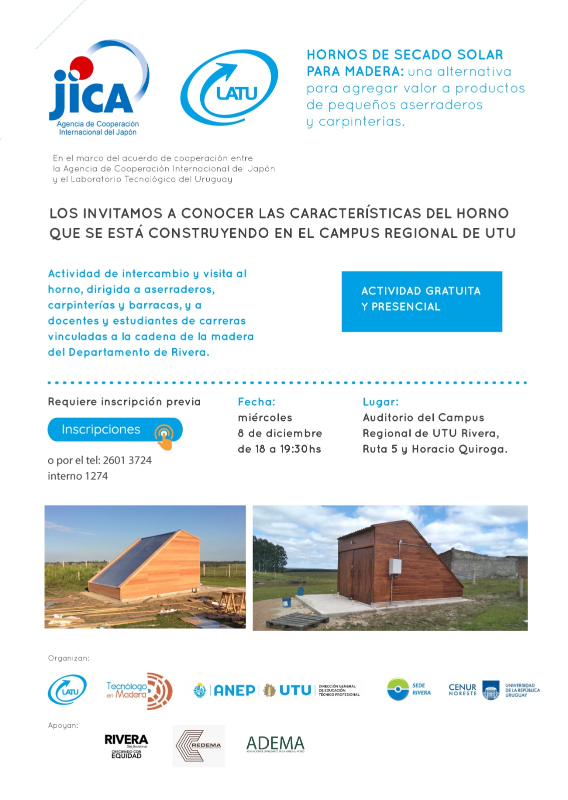 El Campus Regional de UTU está construyendo un horno de secado solar para madera. En ese marco, invita a una actividad presencial gratuita, para conocer las características del mismo.