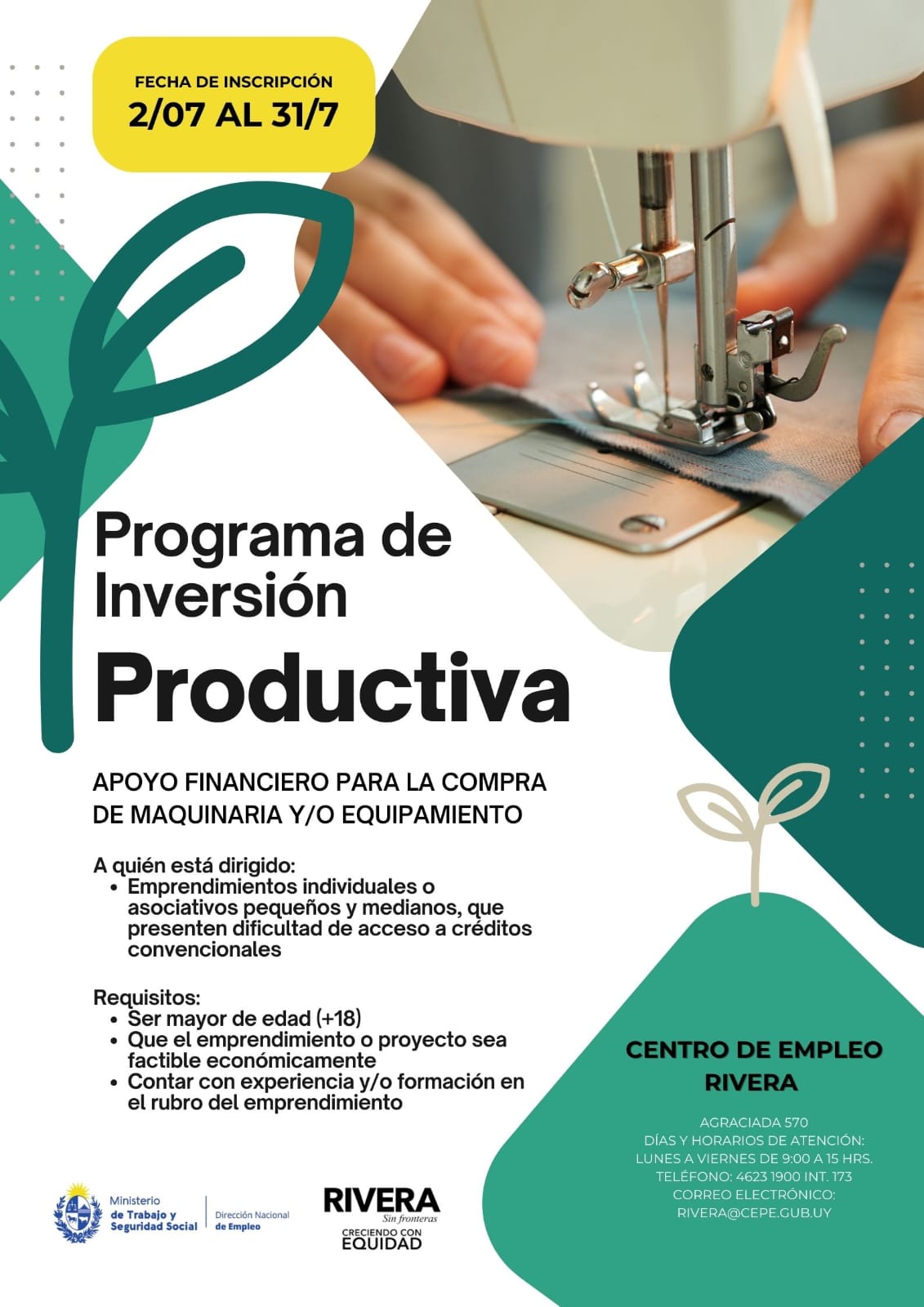 Desde la oficina del Centro Público de Empleo tenemos el placer de informar que se inicia una nueva etapa de postulaciones al PIP (Programa de Inversión Productiva) en su escisión 2024. gestionado por la Intendencia de Rivera y el Ministerio de Trabajo anuncian el lanzamiento de más una edición del Programa de Inversión Productiva (PIP).