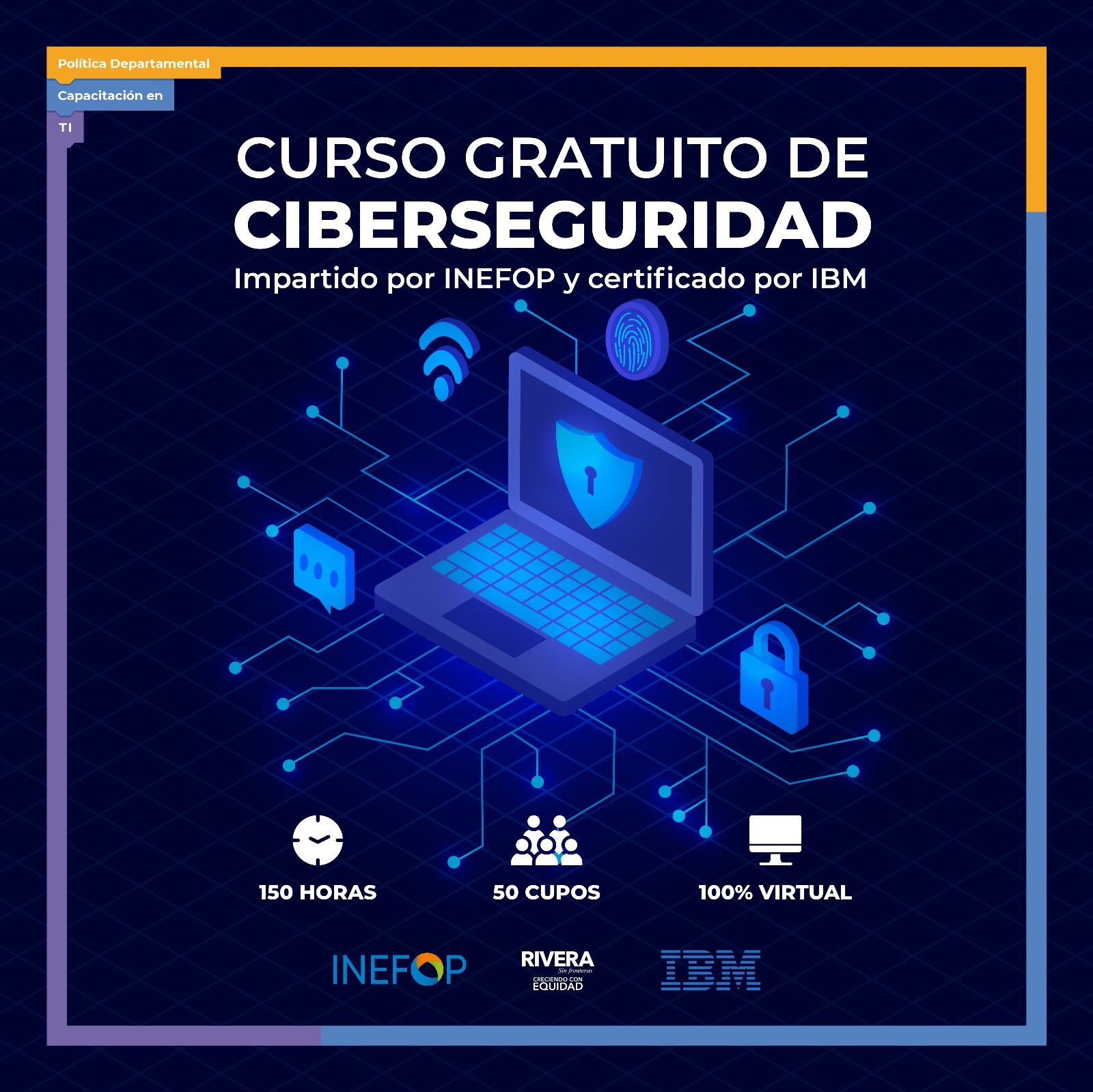 Desde la División Estrategias y Articulaciones Regionales, dependiente de la Dirección General de Desarrollo y Medio Ambiente de la Intendencia Departamental de Rivera invita a todos los interesados para el Curso de Ciberseguridad impartido por INEFOP y certificado por IBM.