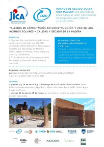 Entre el próximo 21 de abril y el 12 de mayo, se realizarán en Rivera los Talleres de capacitación en construcción y uso de los hornos solares + calidad y secado de la madera.