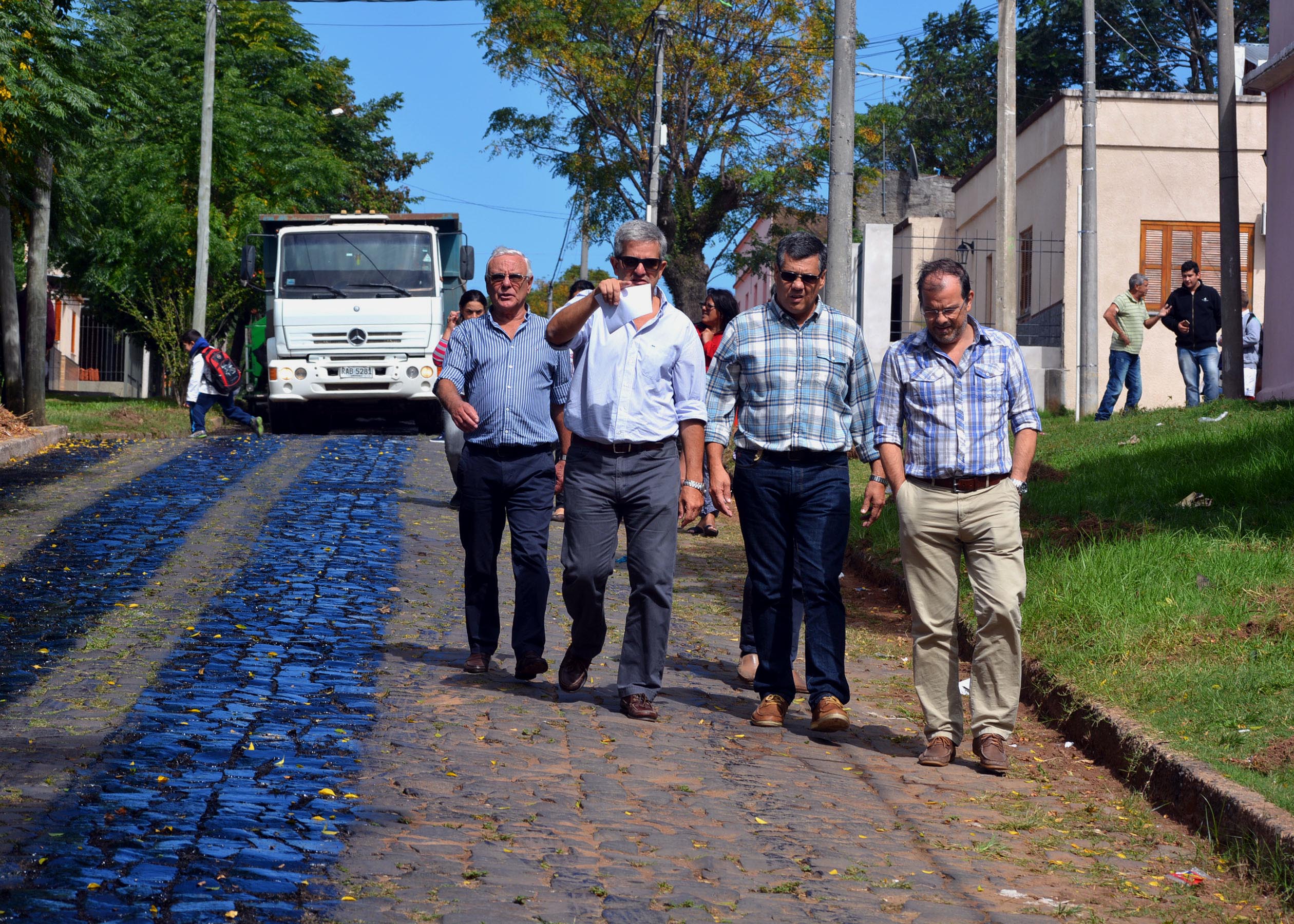 En la jornada del viernes 13 de abril, el Intendente Dr. Marne Osorio Lima, acompañado del Secretario General, Cr. Richard Sander, el Director General de Obras, Arq. José Mazoni y el Secretario General de la Junta Departamental, Ing. Abílio Briz, recorrieron obras en ejecución en barrio “Pueblo Nuevo”.