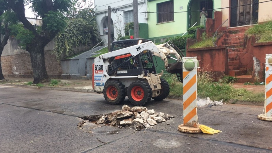 Rondeau esq. Ap. Saravia, Construcción de Drenes y Pluviales. Cuadrilla Mantenimiento y Construcción de Obras Pluviales, Capataz Jorge Bazzi.
