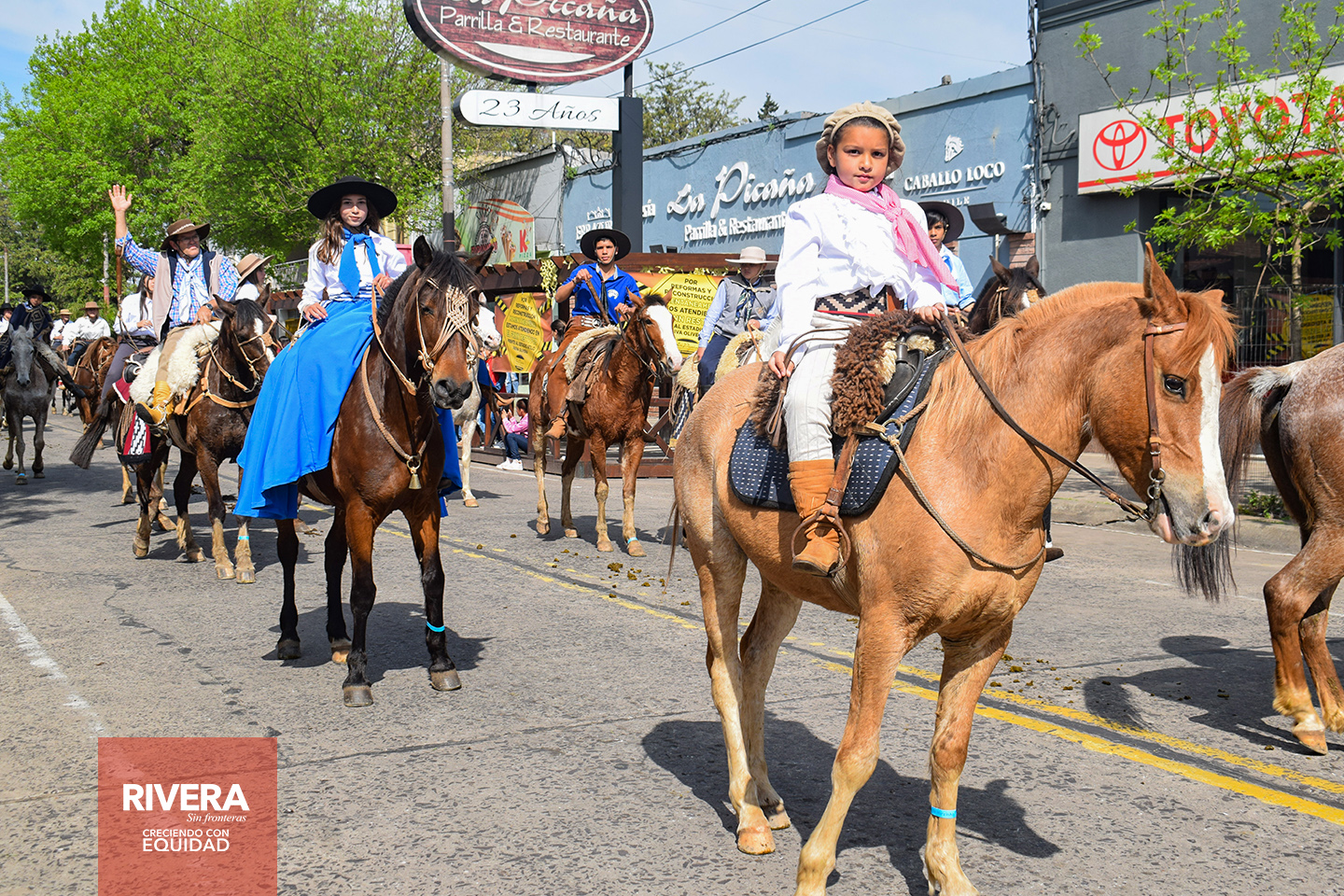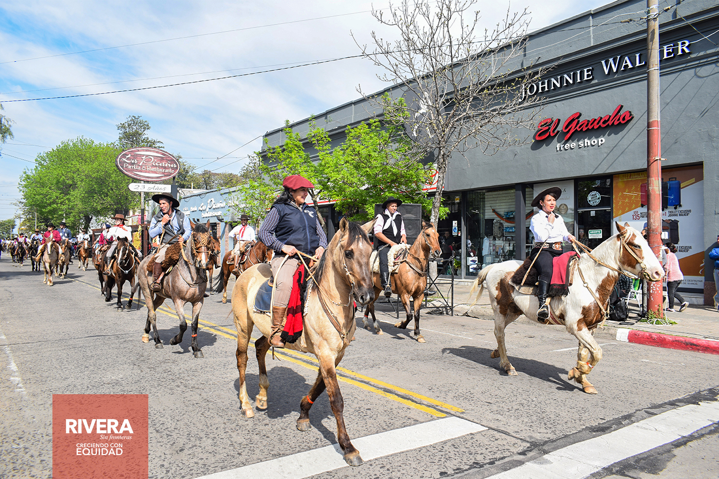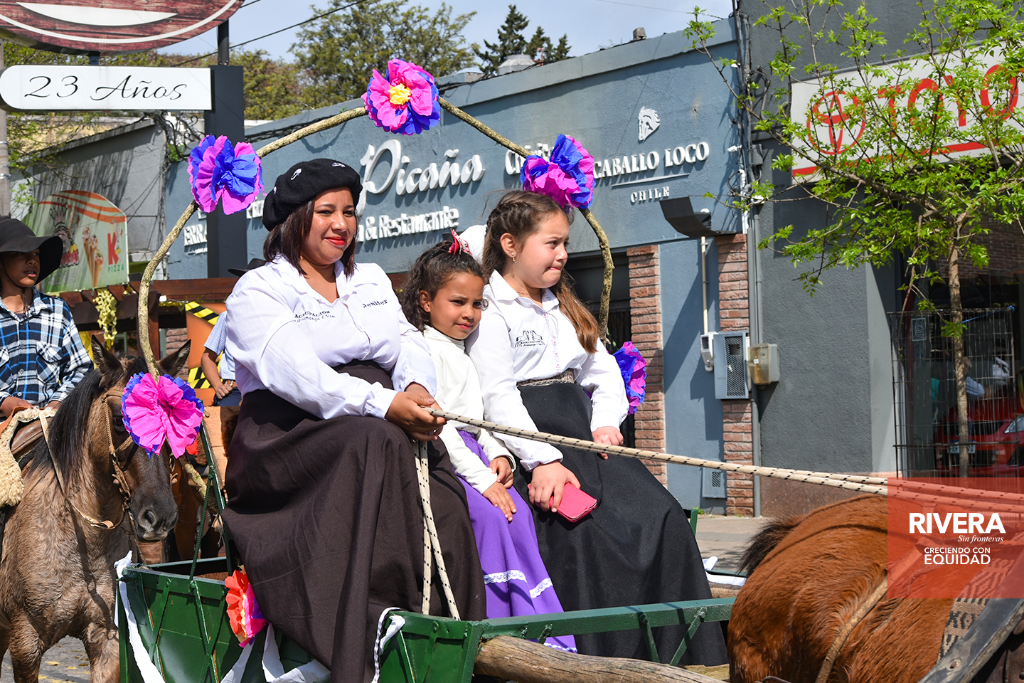 Las agrupaciones tradicionalistas de Rivera desfilaron desde Avda. Presidente Viera, recorriendo Avda. Sarandí, hasta calle Monseñor Vera.