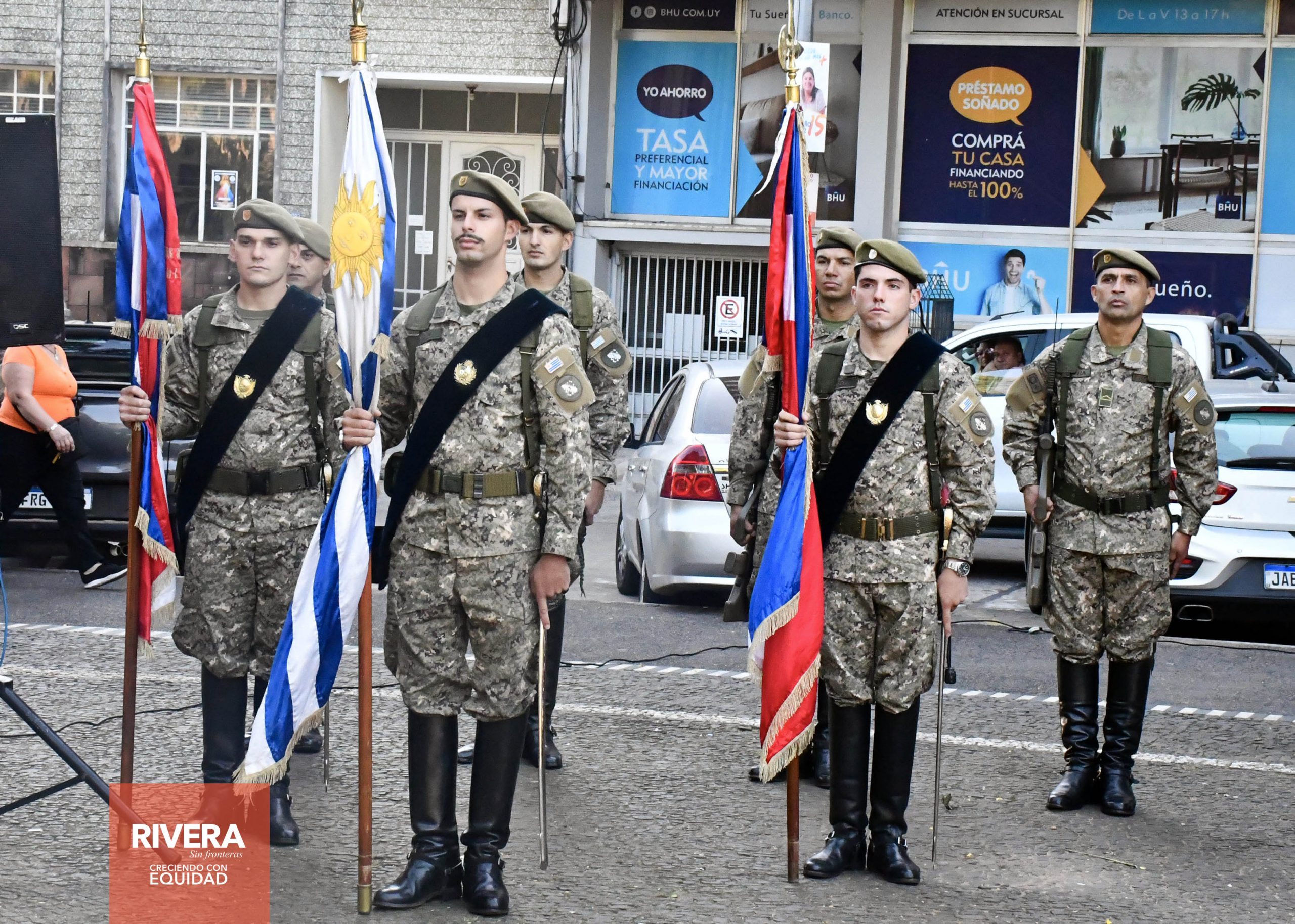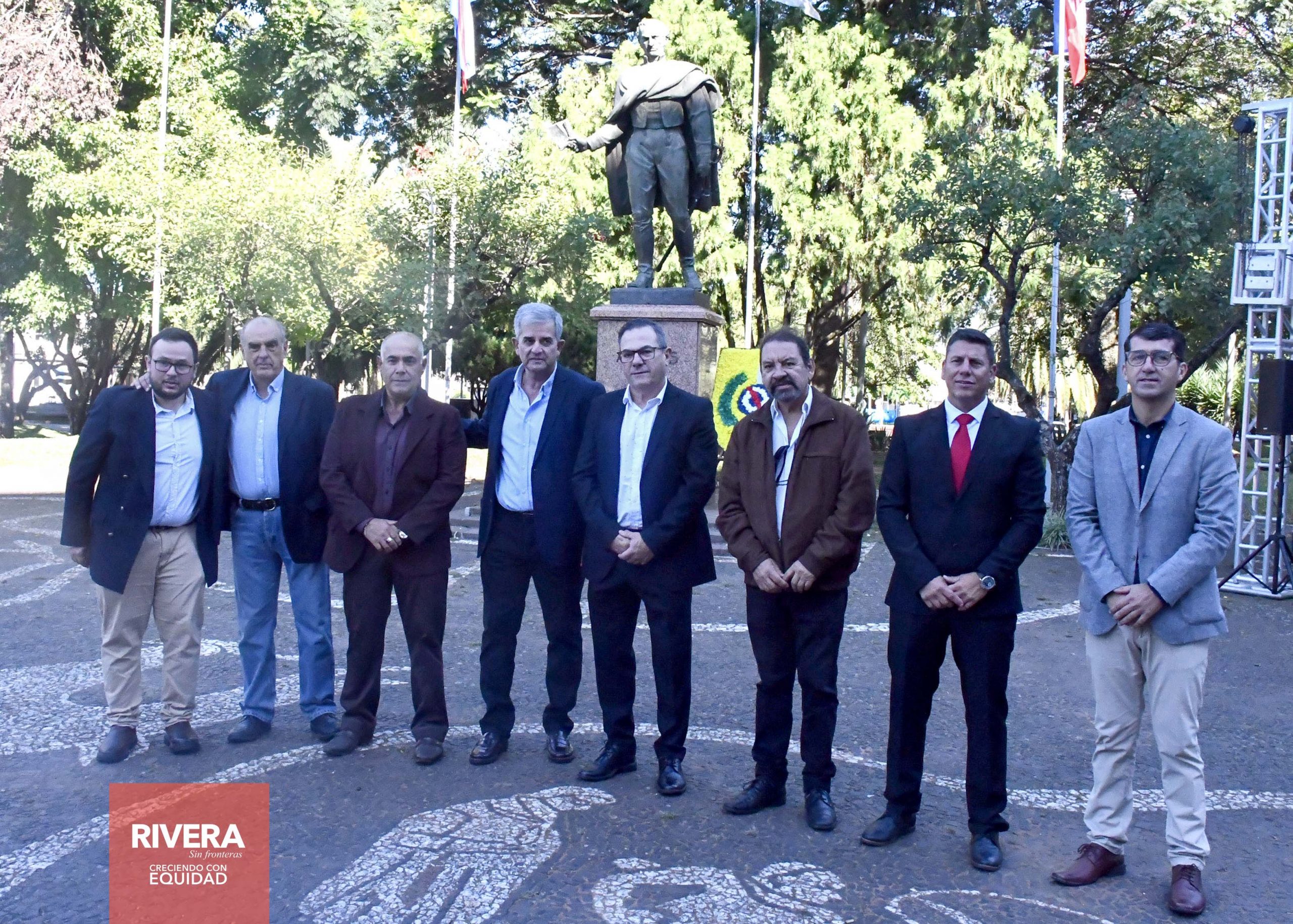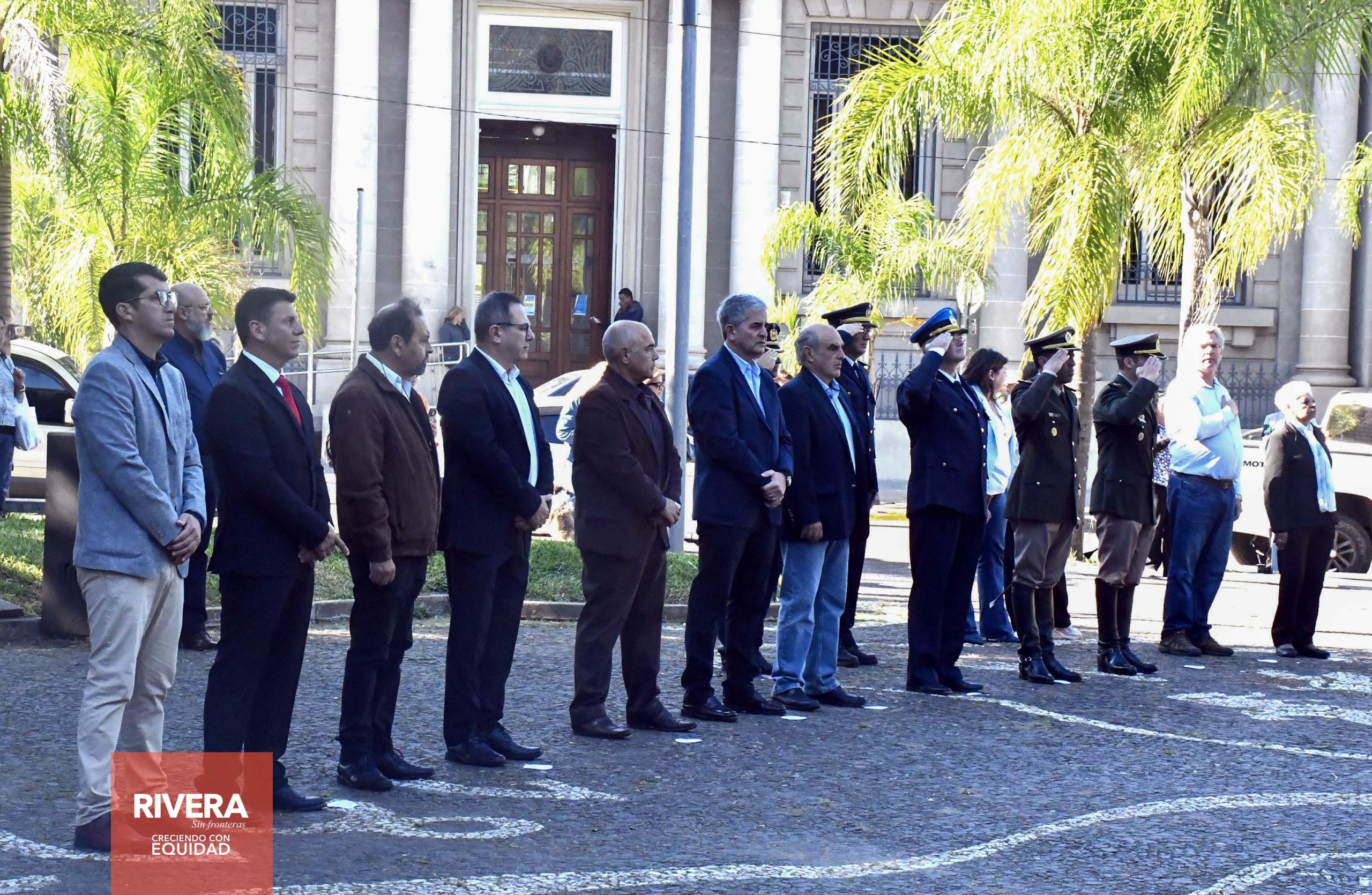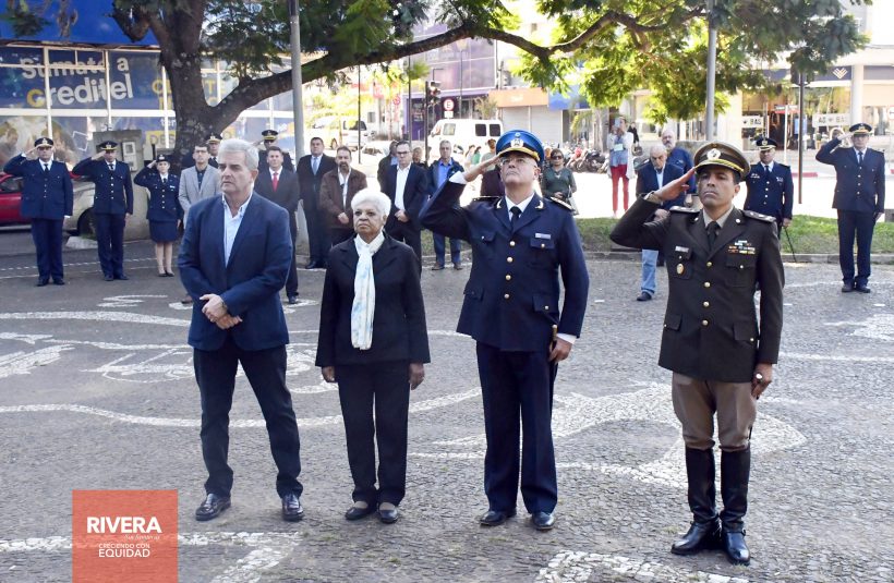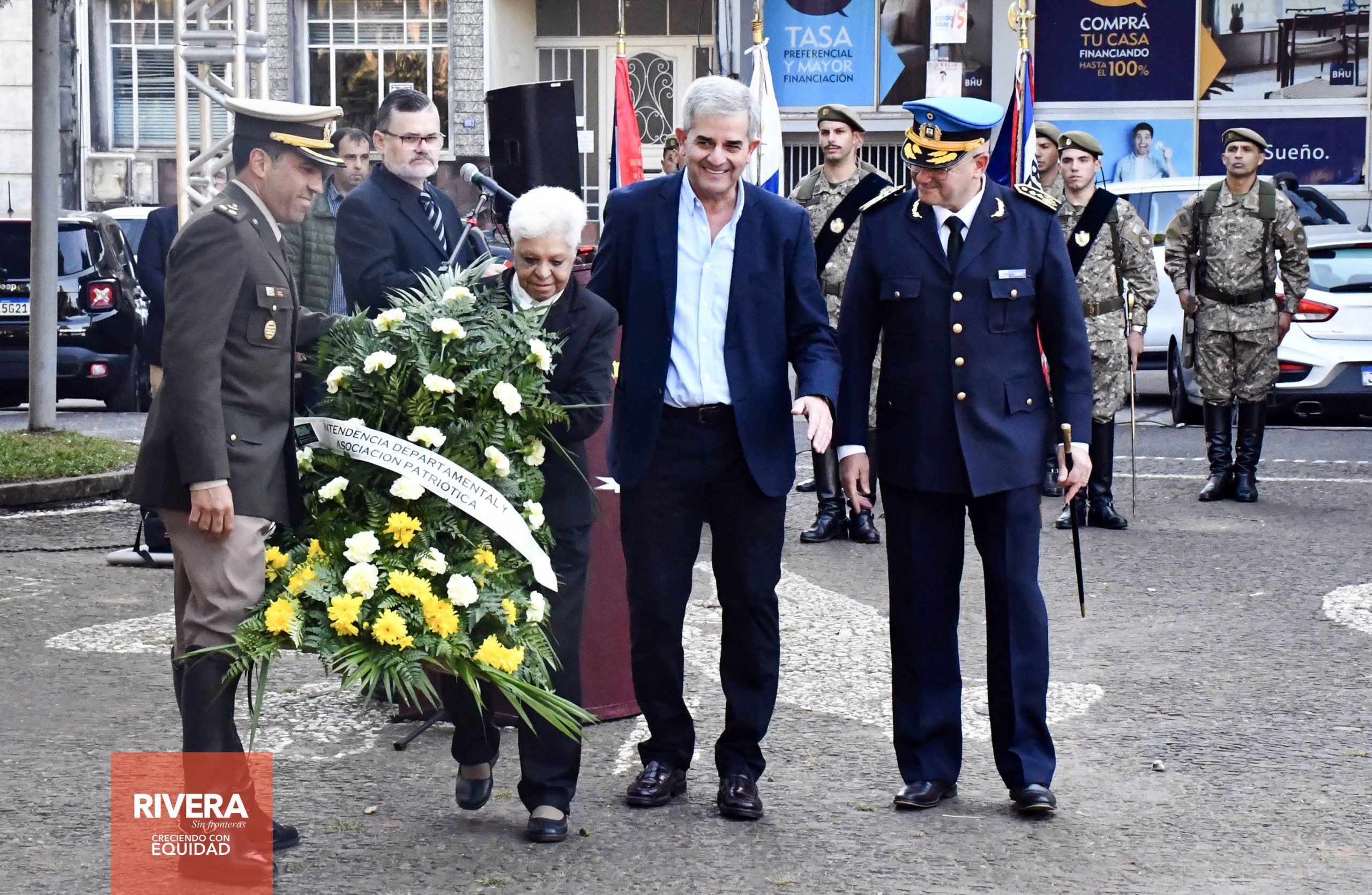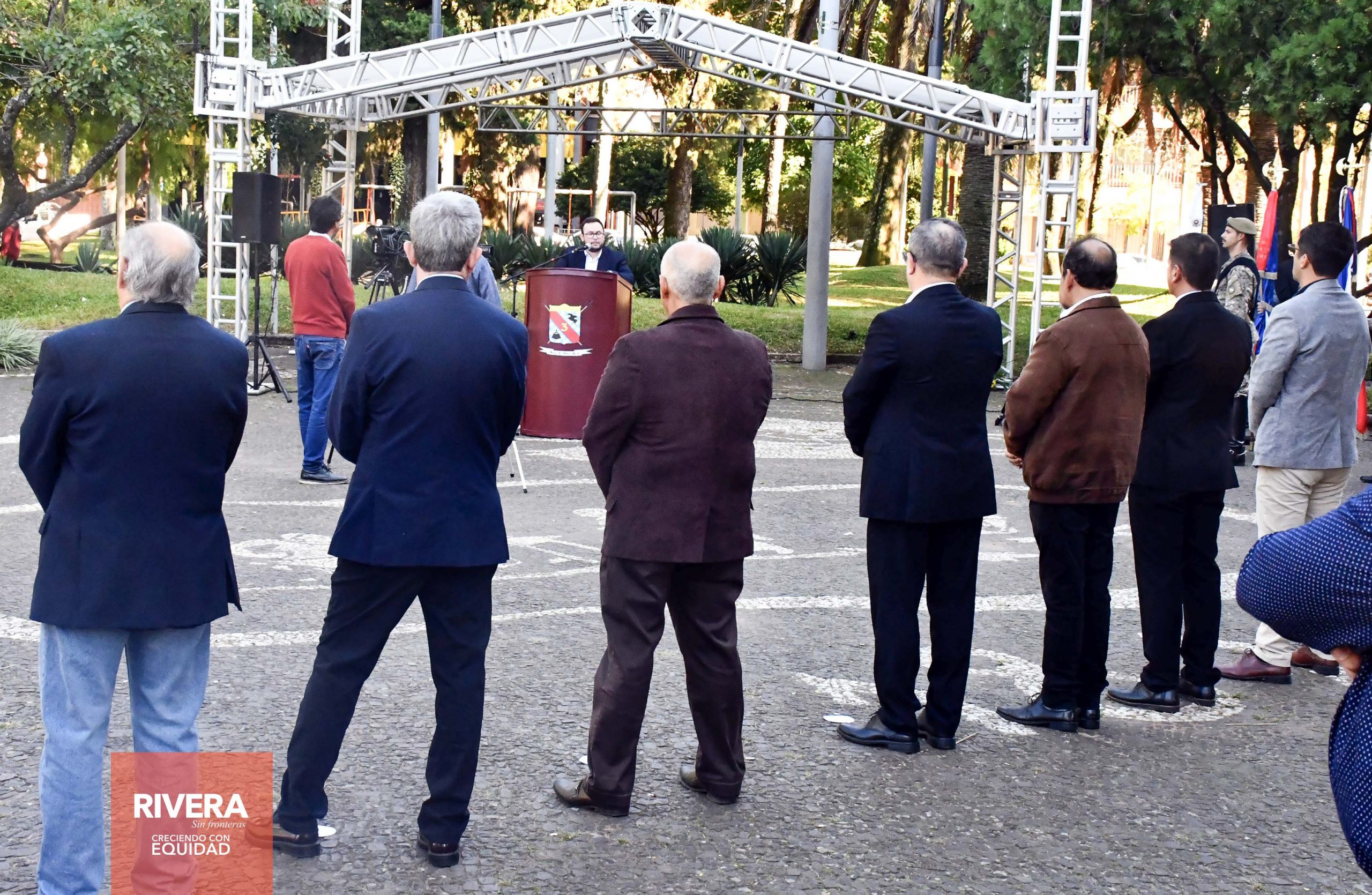 “Intendente Departamental Arq. José Mazzoni Gollardía, autoridades del ejecutivo y legislativo departamental, representantes nacionales, Asociación Patriótica de Rivera, Ejército Nacional, Policía Nacional , autoridades de las diversas instituciones de enseñanza, de servicio público y público general aquí presentes.