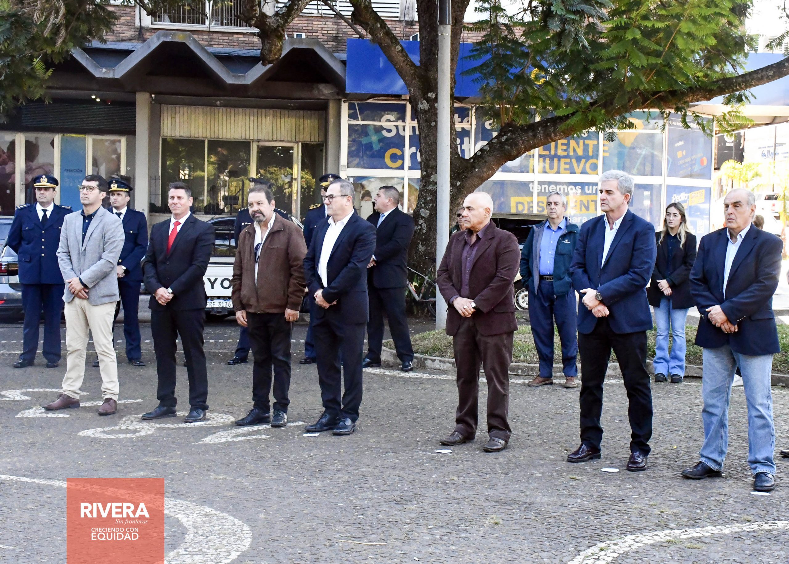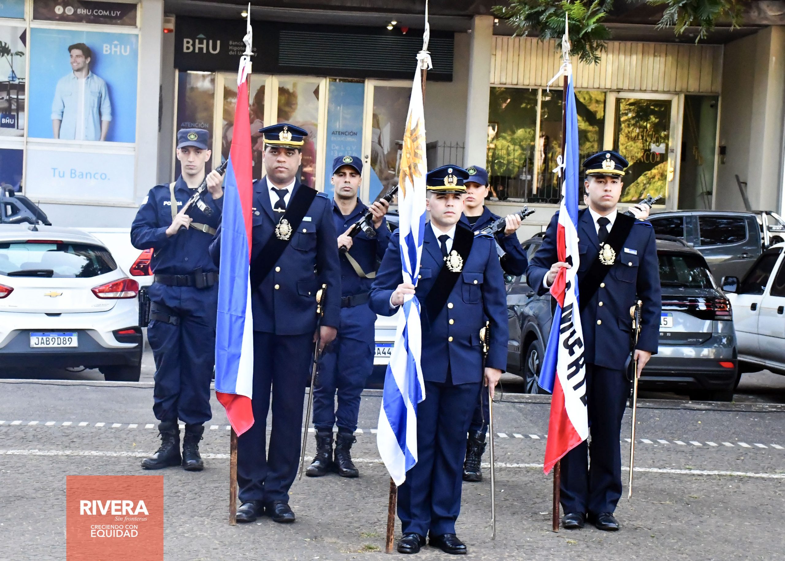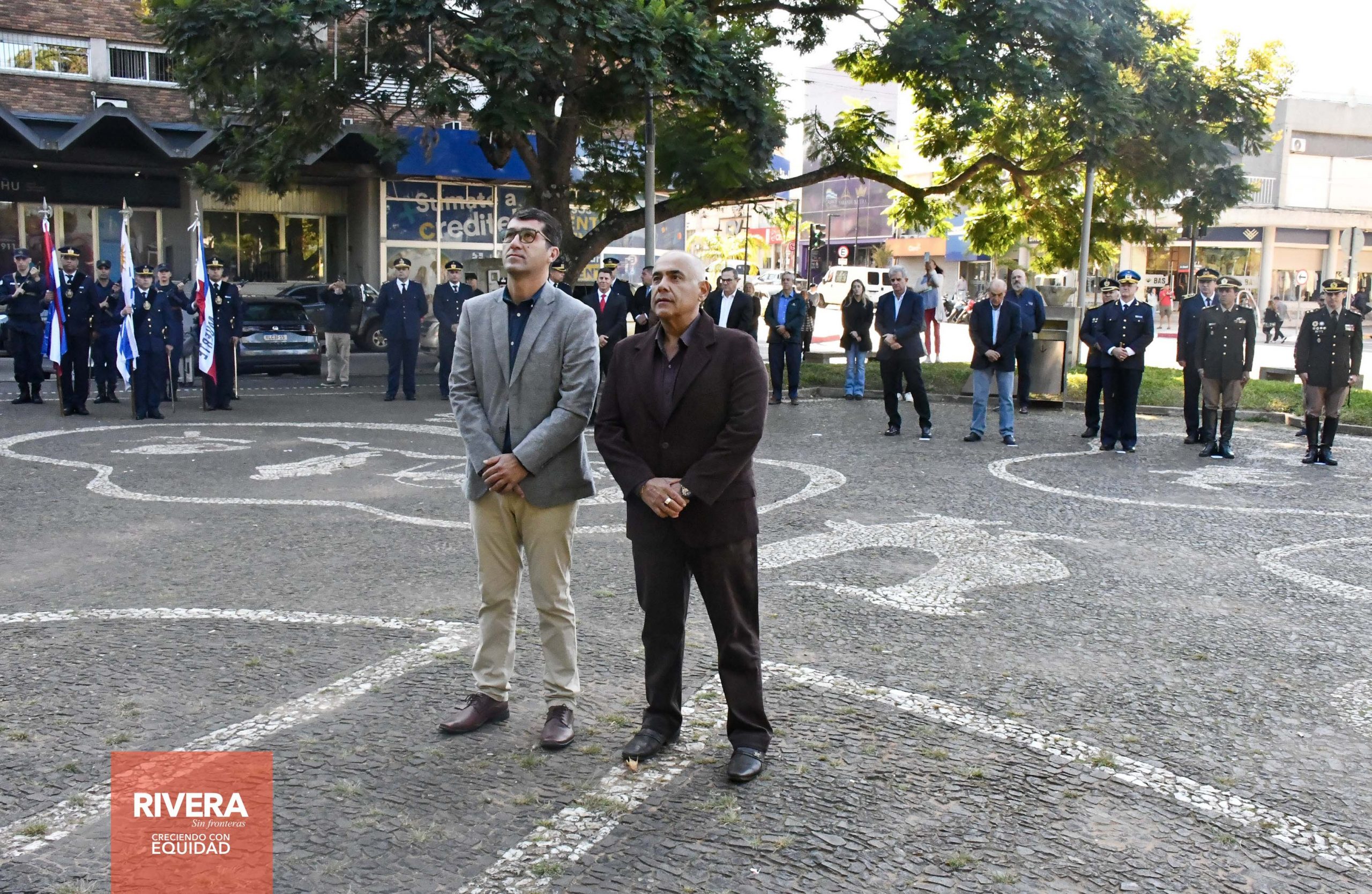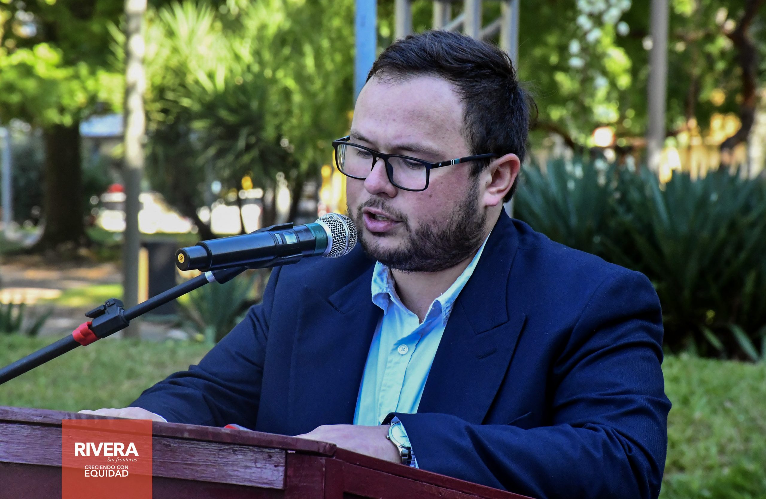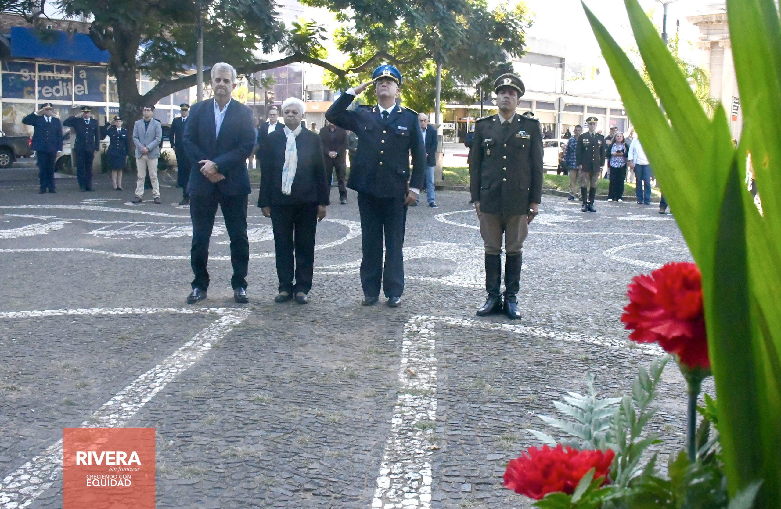“Intendente Departamental Arq. José Mazzoni Gollardía, autoridades del ejecutivo y legislativo departamental, representantes nacionales, Asociación Patriótica de Rivera, Ejército Nacional, Policía Nacional , autoridades de las diversas instituciones de enseñanza, de servicio público y público general aquí presentes.
