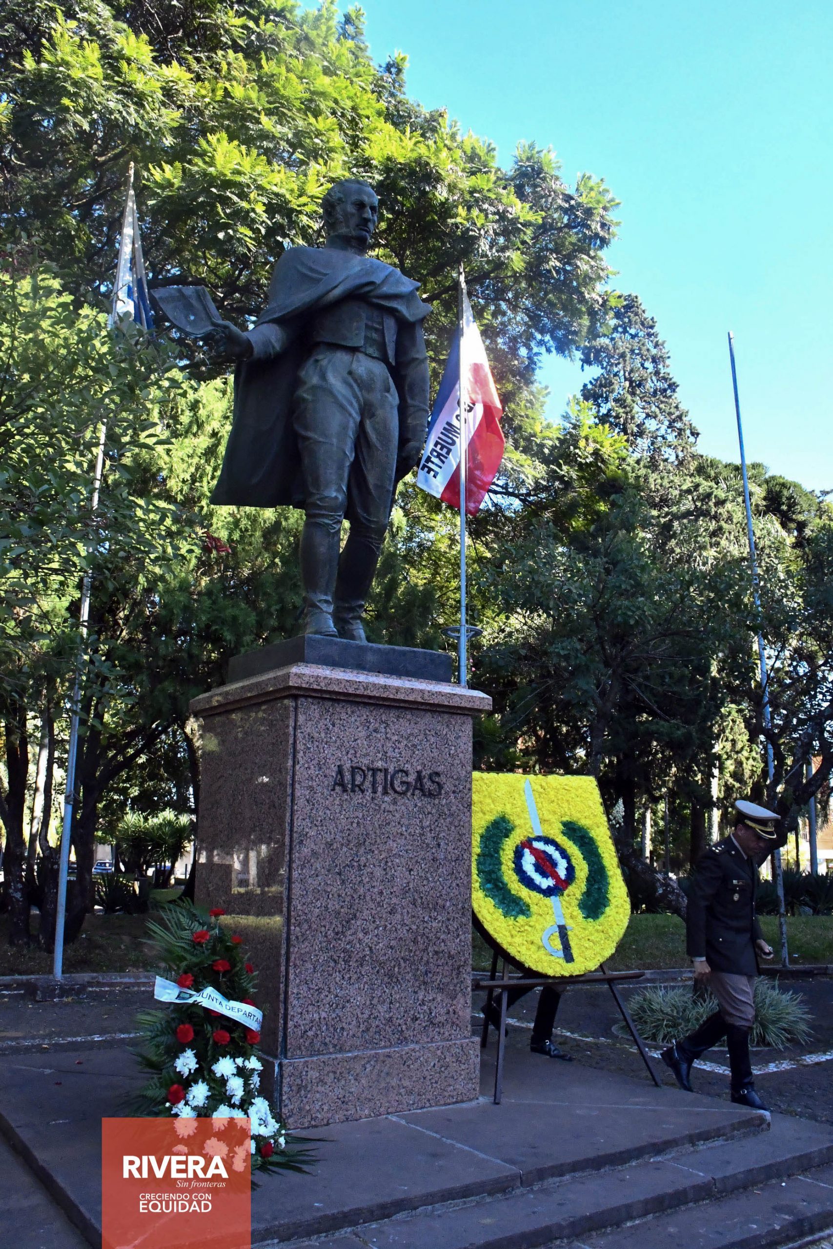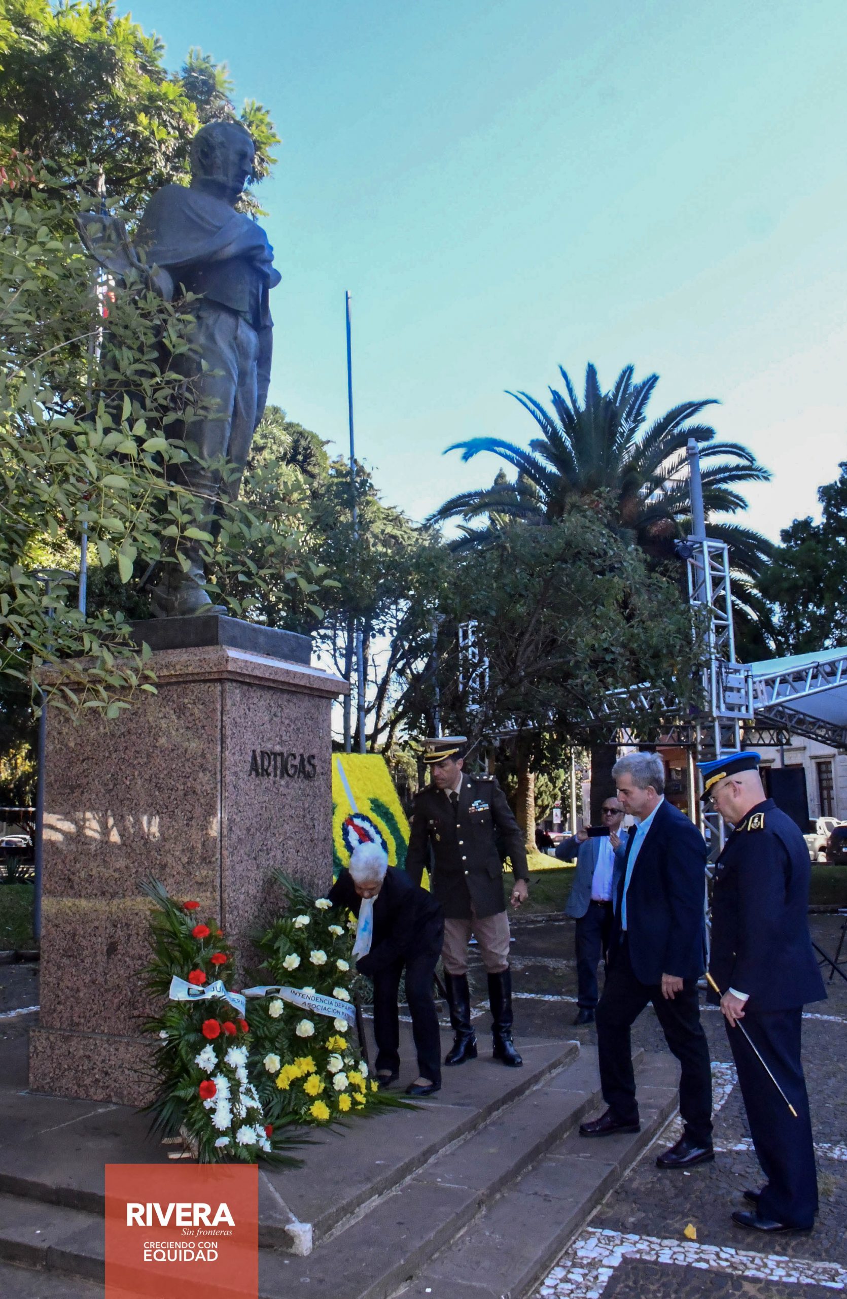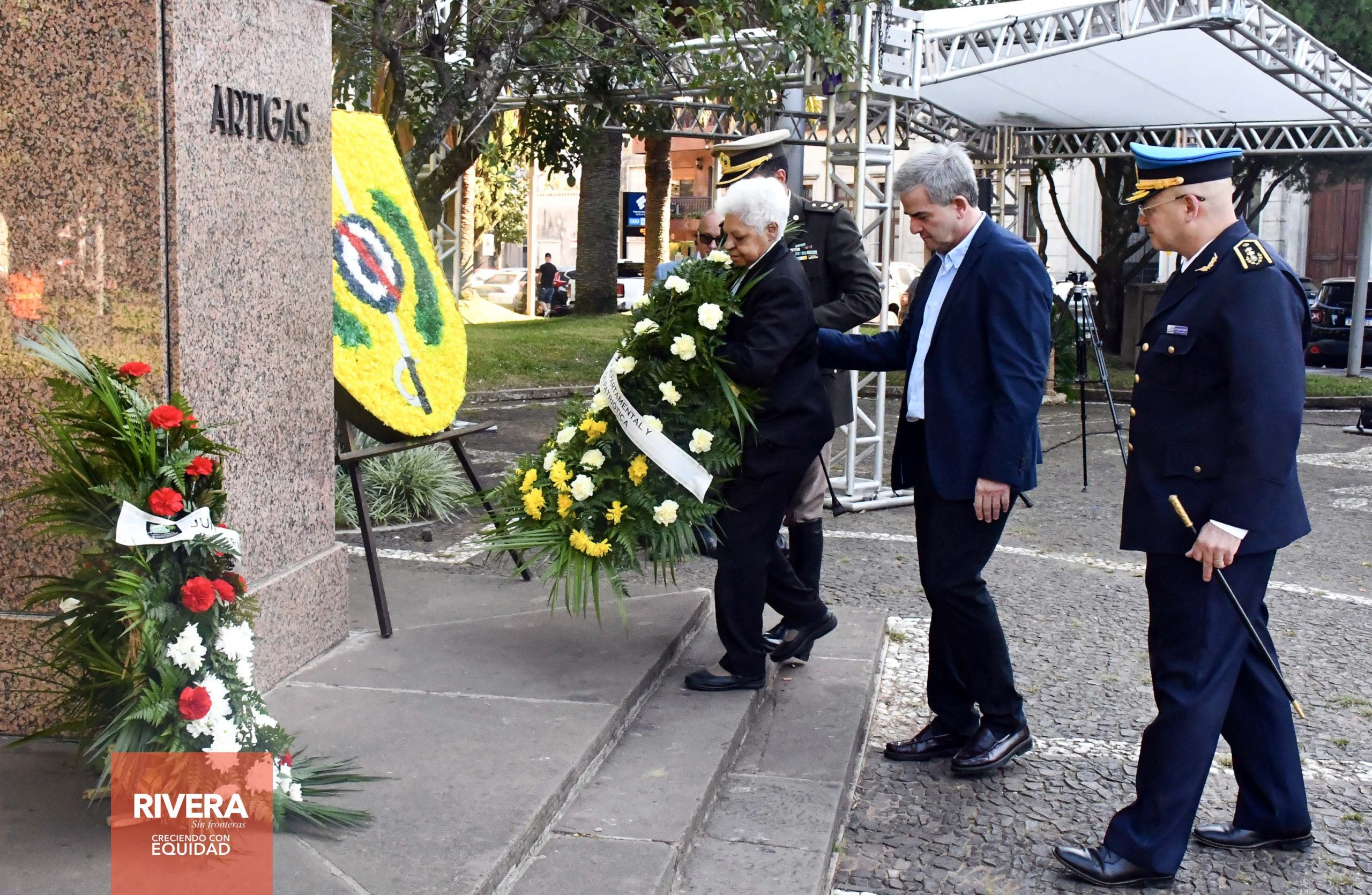 La Asociación Patriótica de Rivera realizó la convocatoria a instituciones y público en general para reunirse a la hora 10,00 frente al monumento al Prócer José Artigas y rendir homenaje con ofrendas florales recordando la hazañosa jornada ocurrida hace dos siglos. En la oportunidad el Prof. José Sampayo, único orador, impartió un discurso de forma elocuente y con estilo elevado, detallando con lujo de detalles los sucesos del inicio de la Cruzada Libertadora.