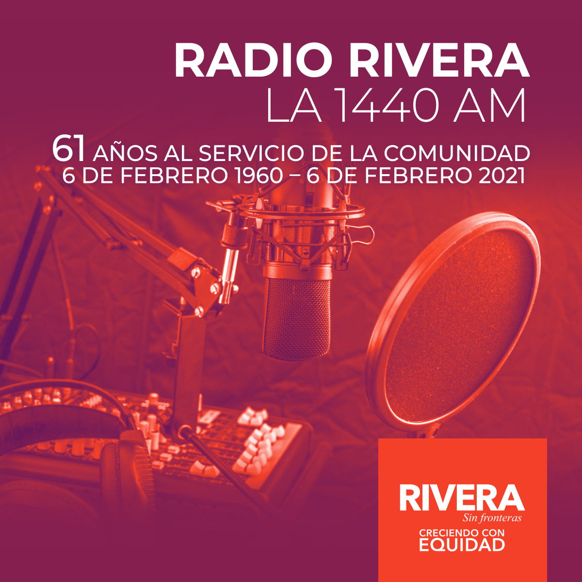 El intendente departamental, Cr. Richard Sander y el secretario general, Arq. José Mazzoni, les hace llegar un cordial saludo a directivos y funcionarios de Radio Rivera, por sus 61 años al servicio de todos los habitantes de la frontera.