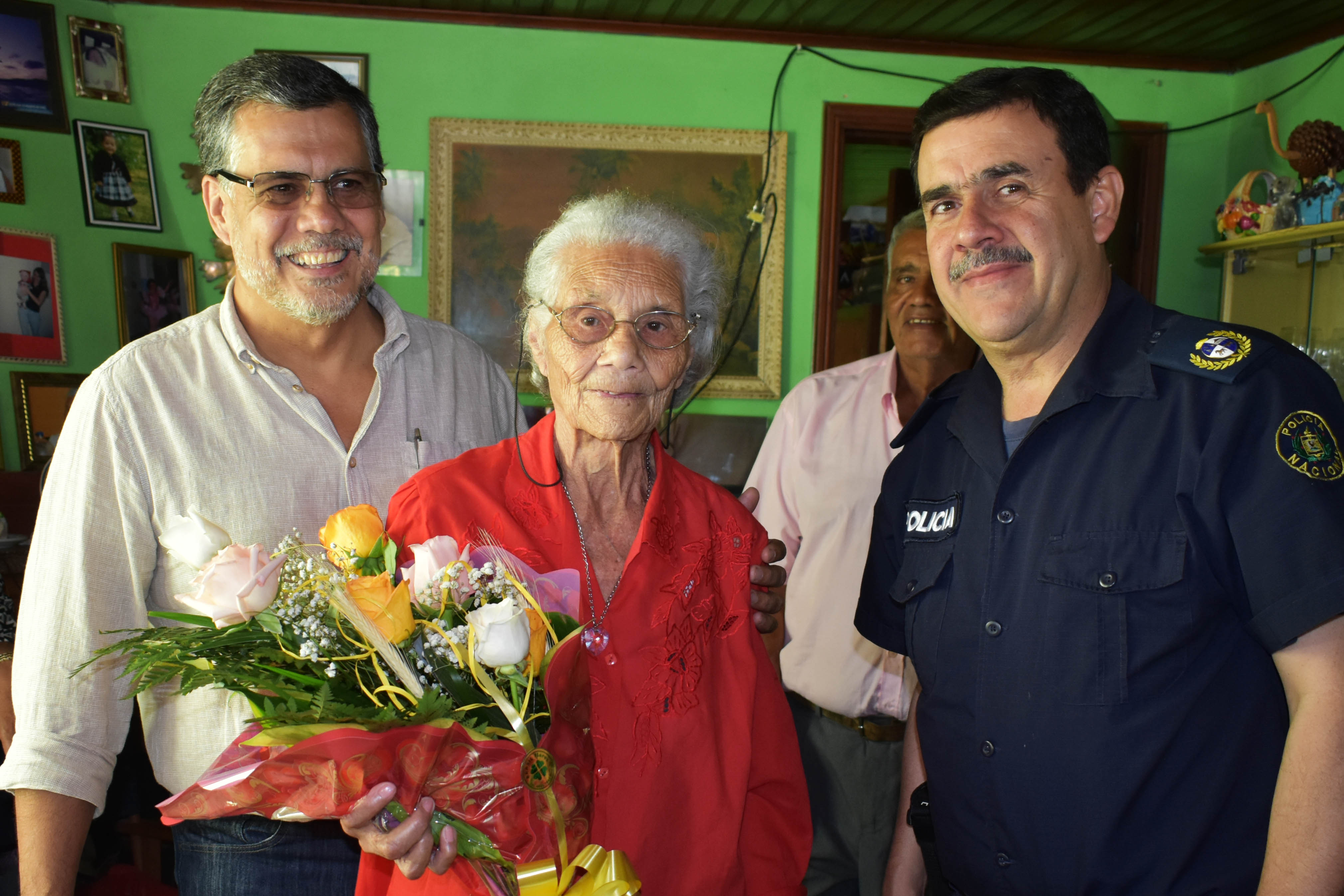 Edelma Santana Carneiro, celebró sus 94 años y su deseo era que a su cumpleaños fueran dos invitados especiales, el intendente de Rivera, Marne Osorio Lima, y el Jefe de Policía, Ricardo Pereira, para poder registrar una foto que guardará en su recuerdo.
