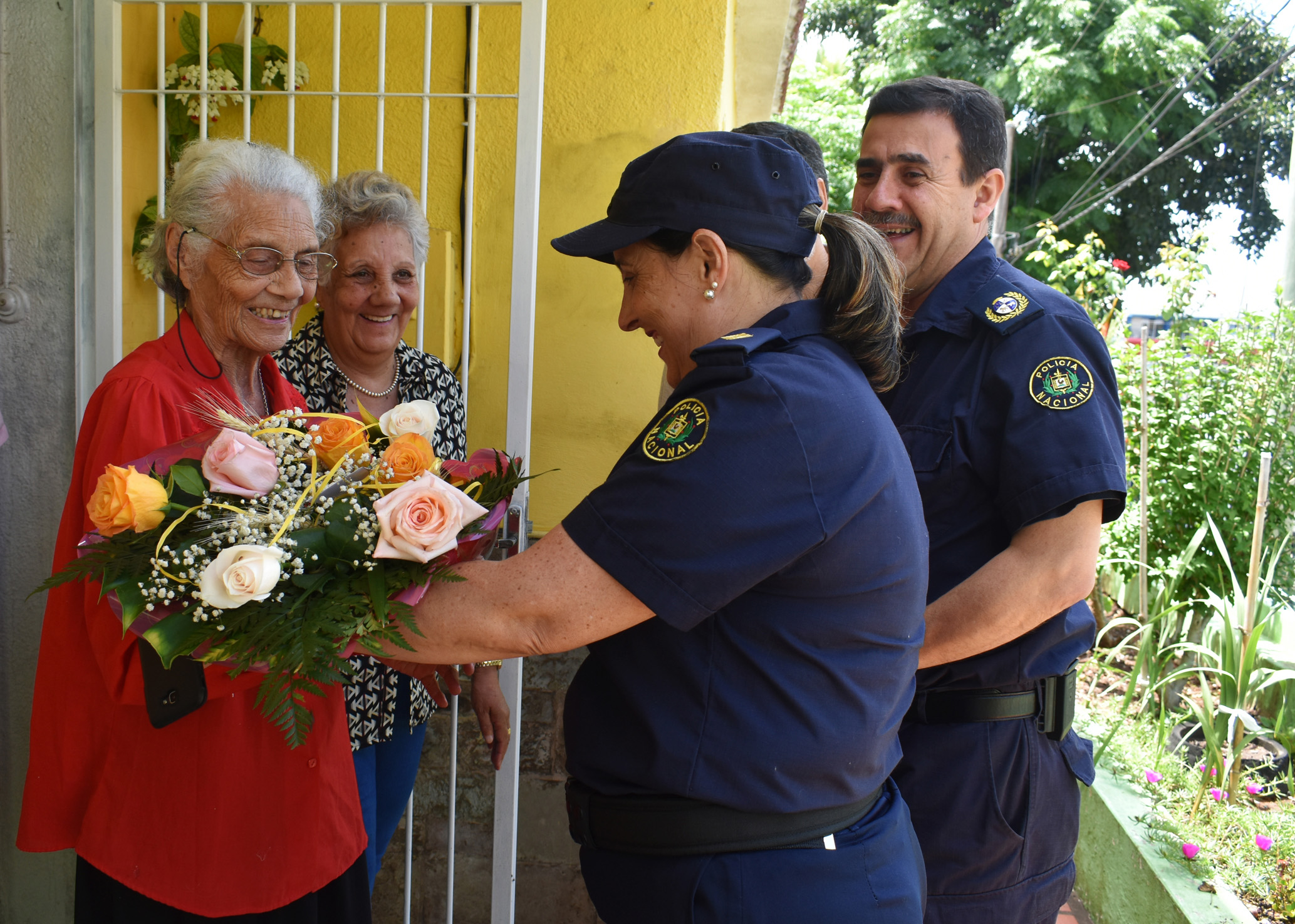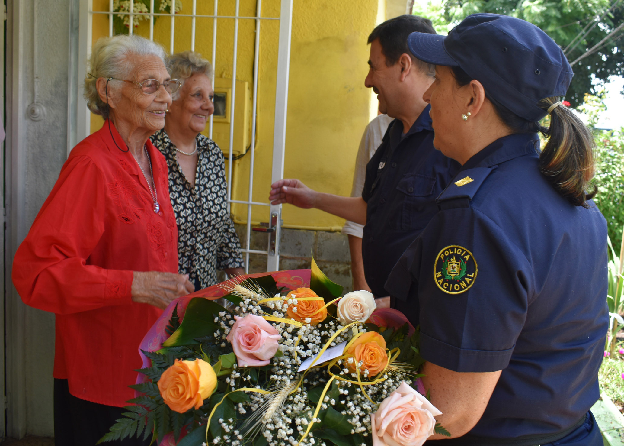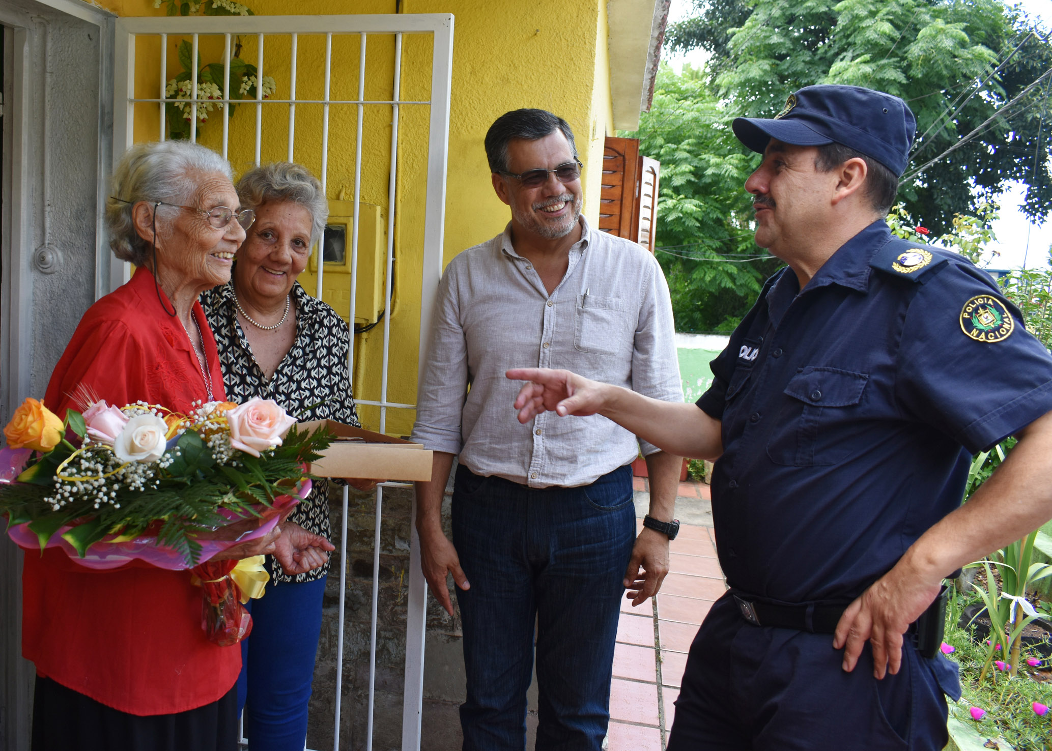 Un simple gesto, para prestigiar un hermoso momento de doña Edelma y su familia, junto al Intendente y el Jefe de Policía de Rivera.