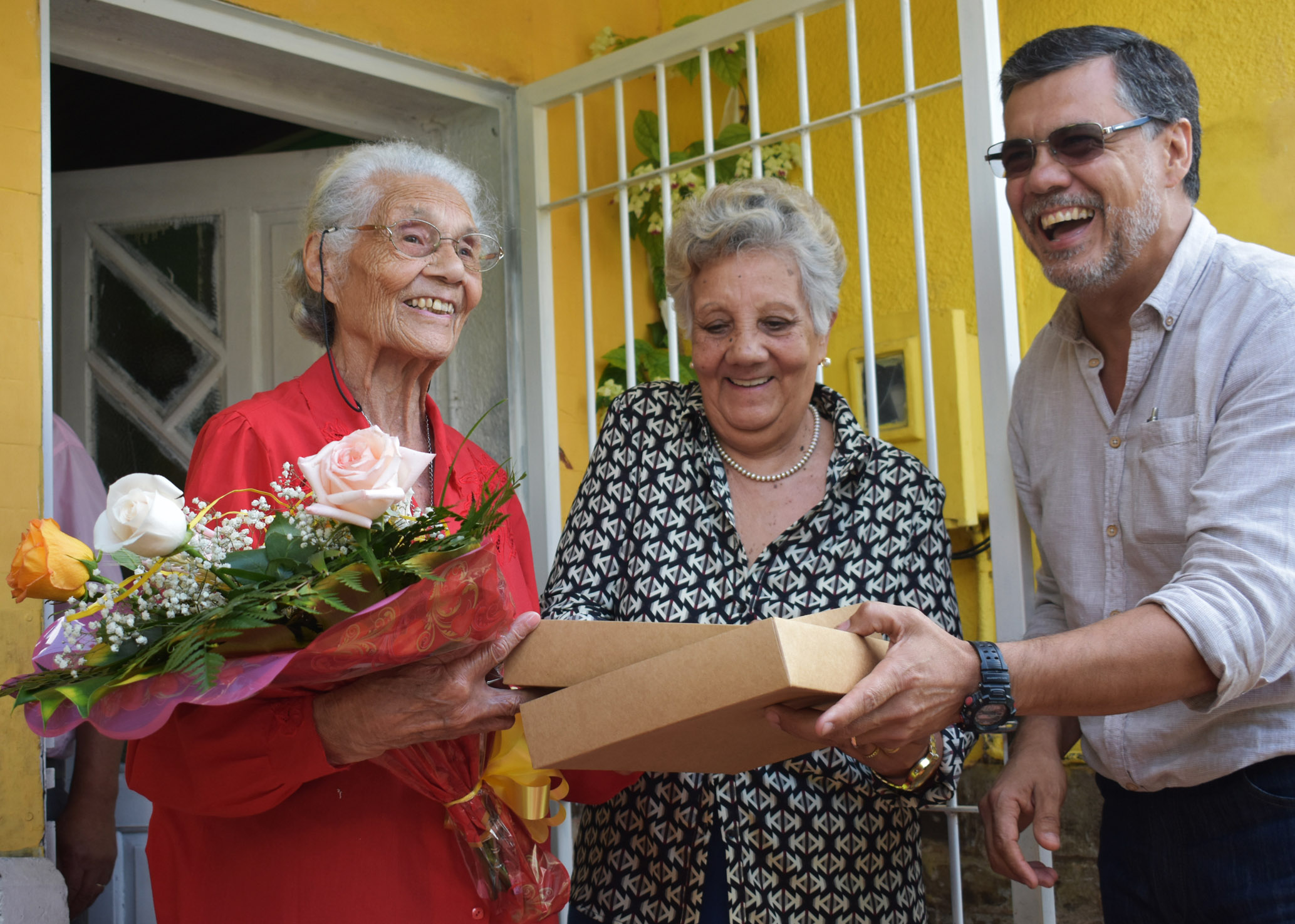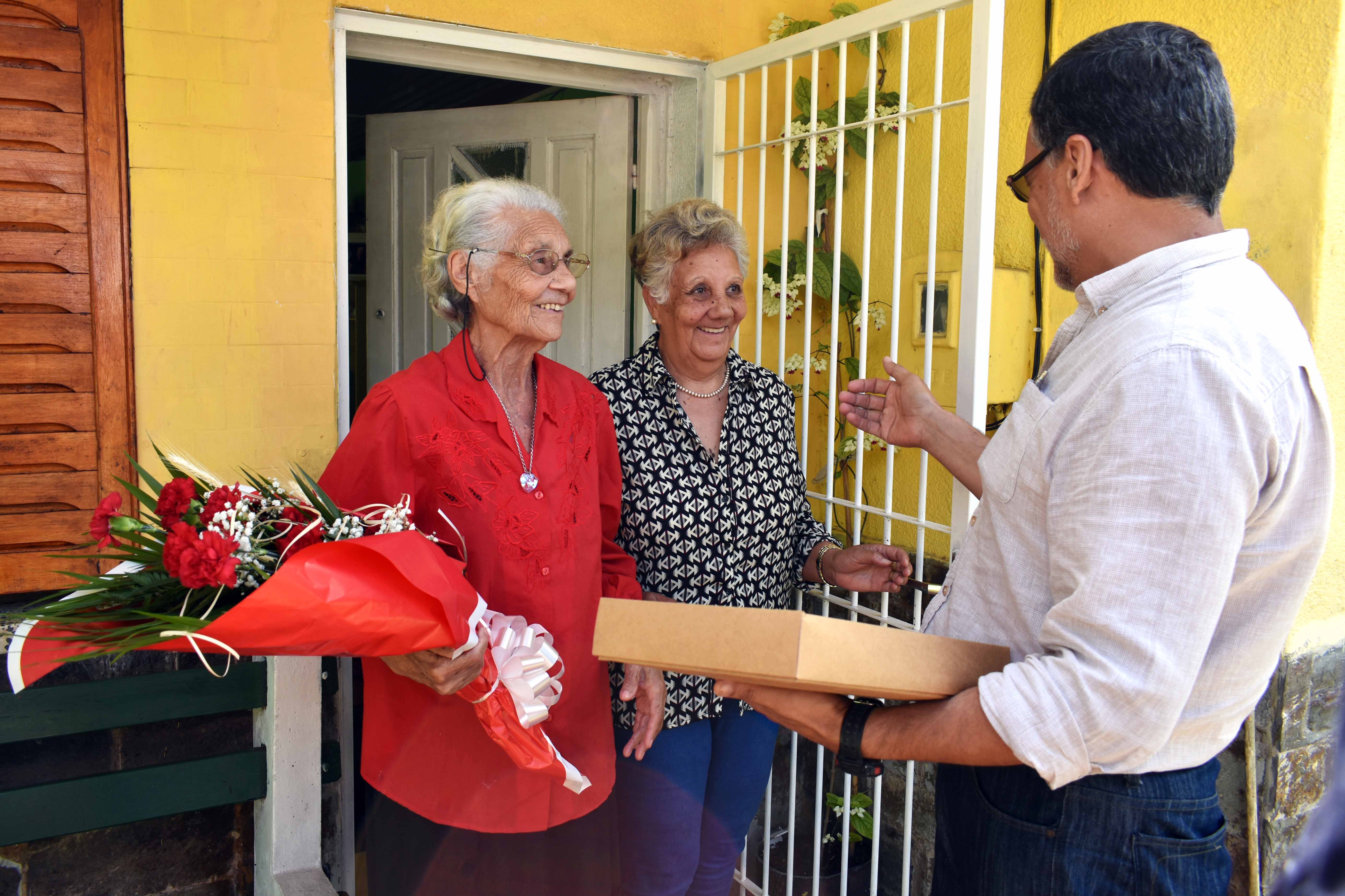 Su deseo se cumplió este 8 de enero, cuando a su casa, en el cerro Marconi, llegaron ambos jerarcas con obsequios en conmemoración a su aniversario N° 94.