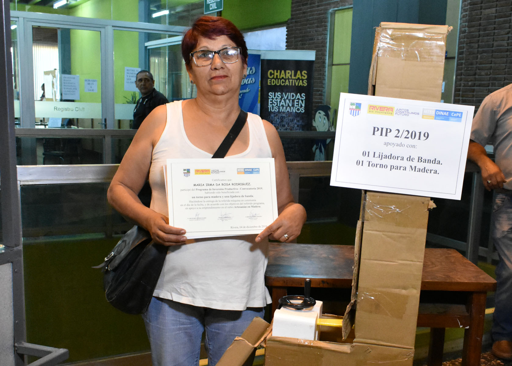 El intendente Departamental de Rivera, Cr. Richard Sander Darín, oficializó la entrega de maquinarias y herramientas financiadas a través del Programa de Inversión Productiva (PIP) en Rivera; en el marco del Convenio que mantiene la intendencia Departamental de Rivera, a través del Centro Público de Empleo (CePE) de Rivera, con el Ministerio de Trabajo y Seguridad Social (MTSS), coordinado por la dirección Nacional de Empleo (Dinae), desde setiembre de 2009.