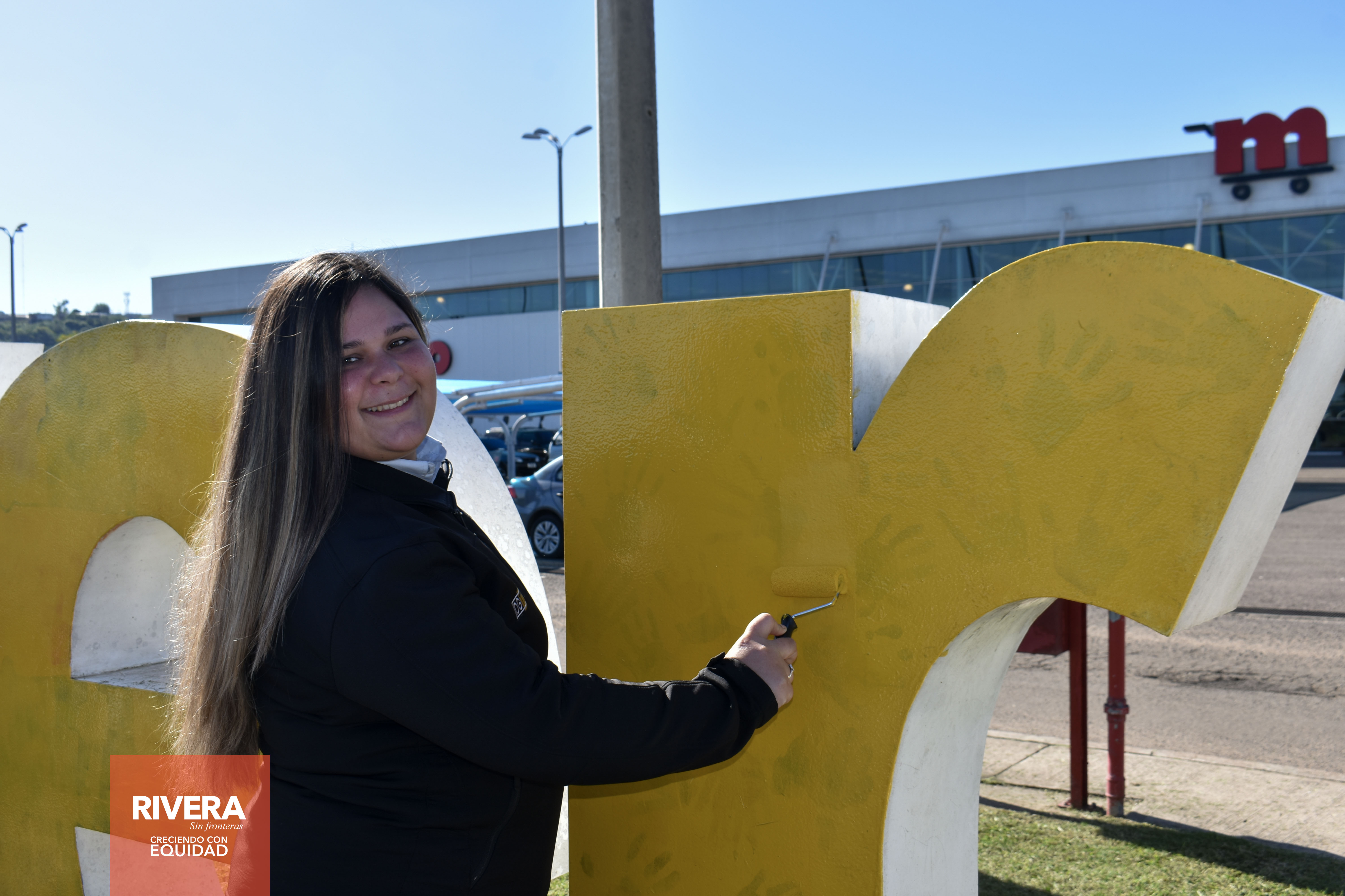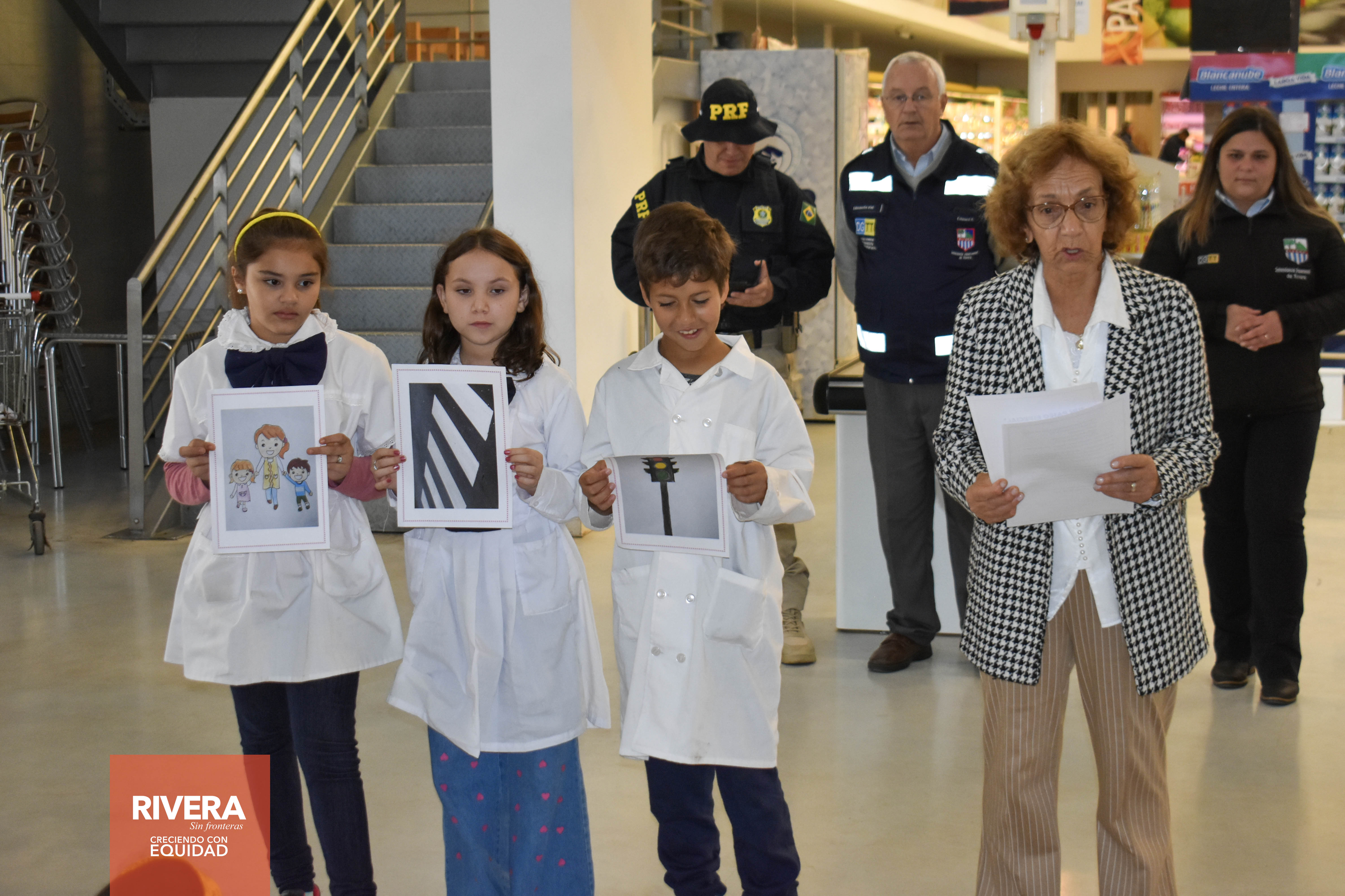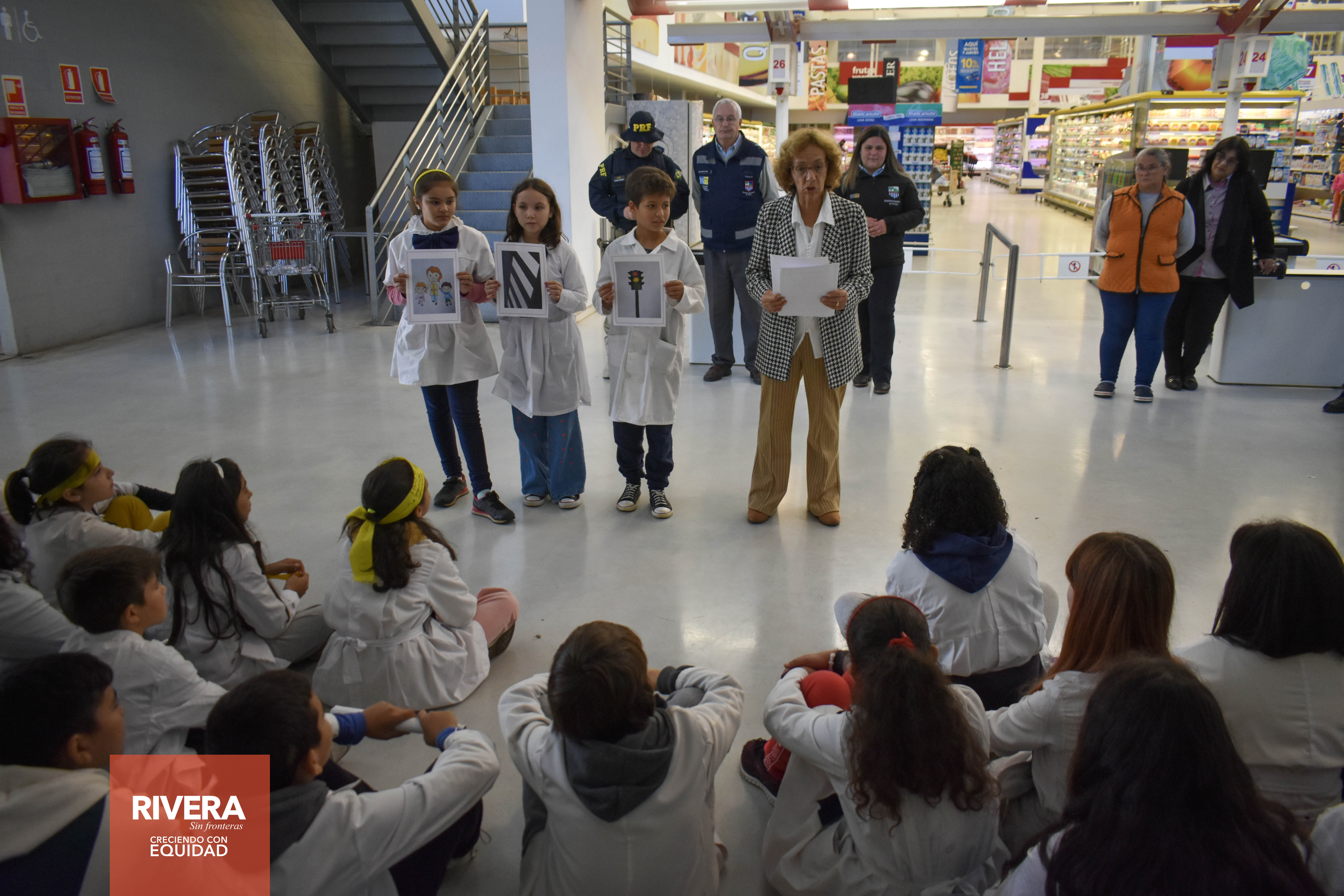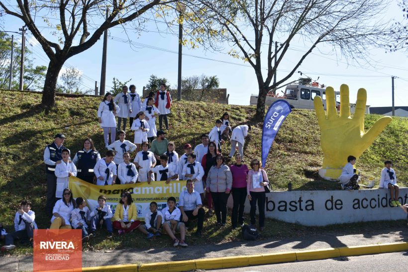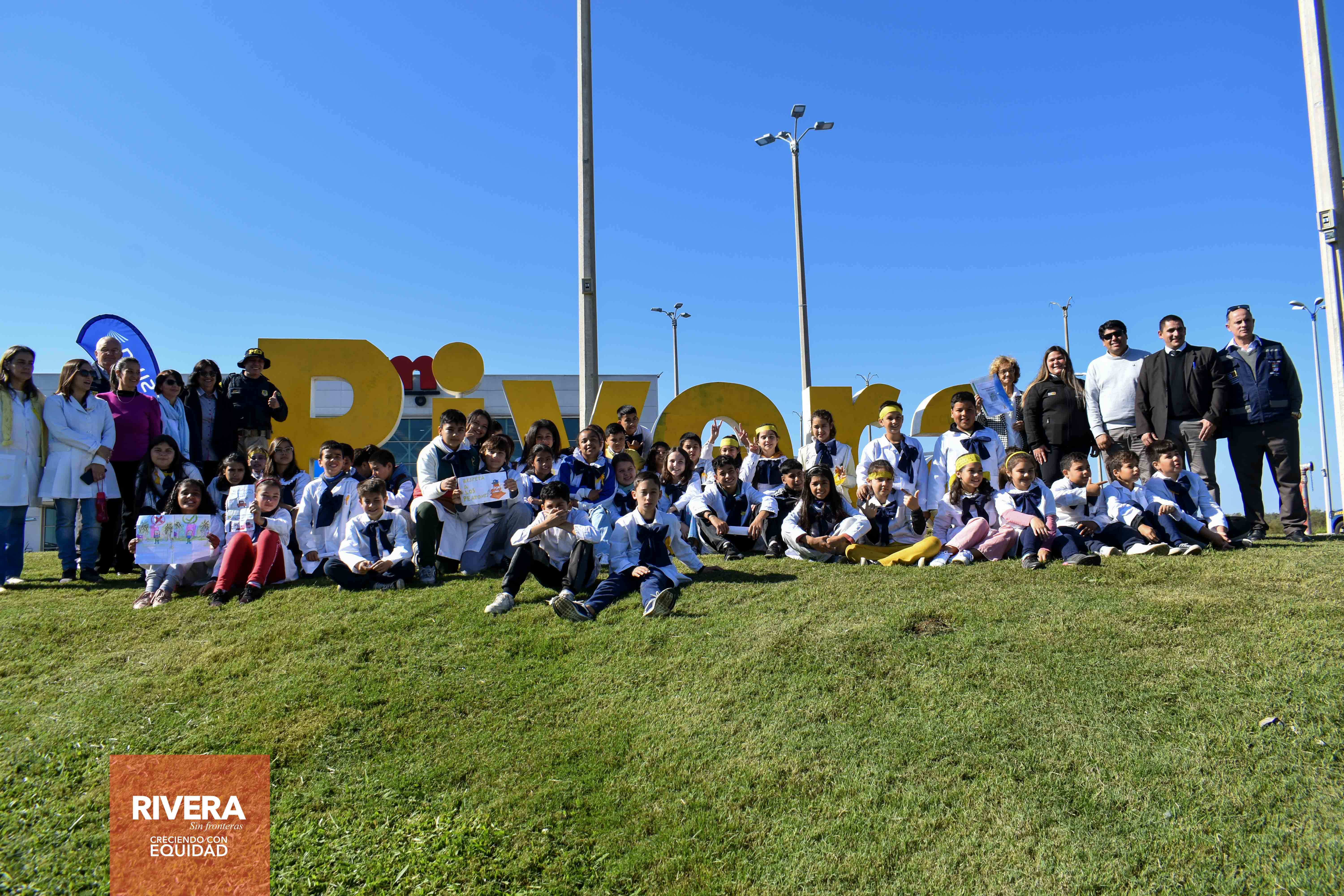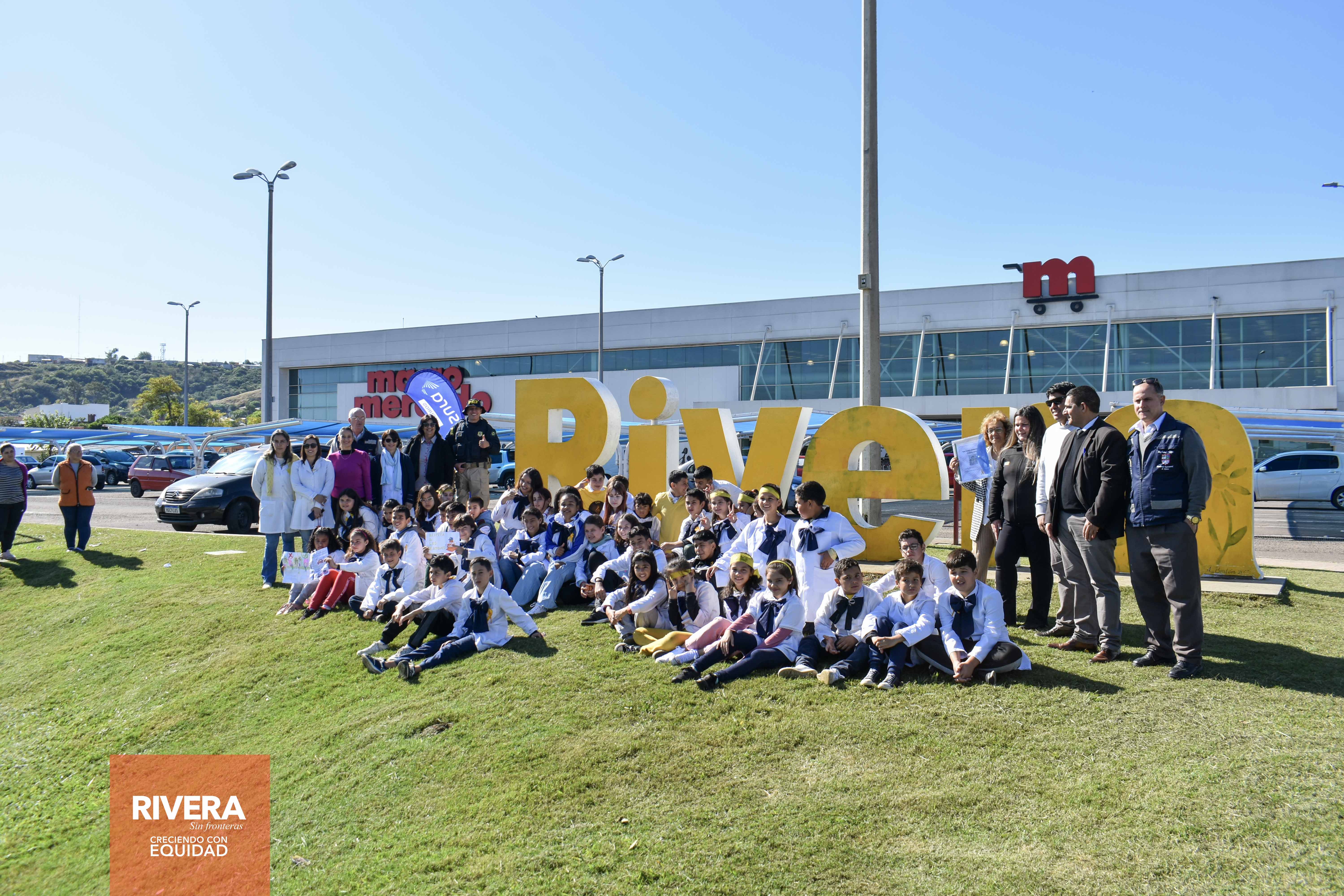 En horas de la mañana del martes 9 de mayo, alumnos y docentes de la escuela Nº 112 de barrio Bisio, autoridades de Educación primaria de la Dirección General de Tránsito y de instituciones asociadas, pintaron un lazo en la entrada del supermercado Macro Mercado y las letras corporeas que forman la palabra RIVERA en color amarillo.