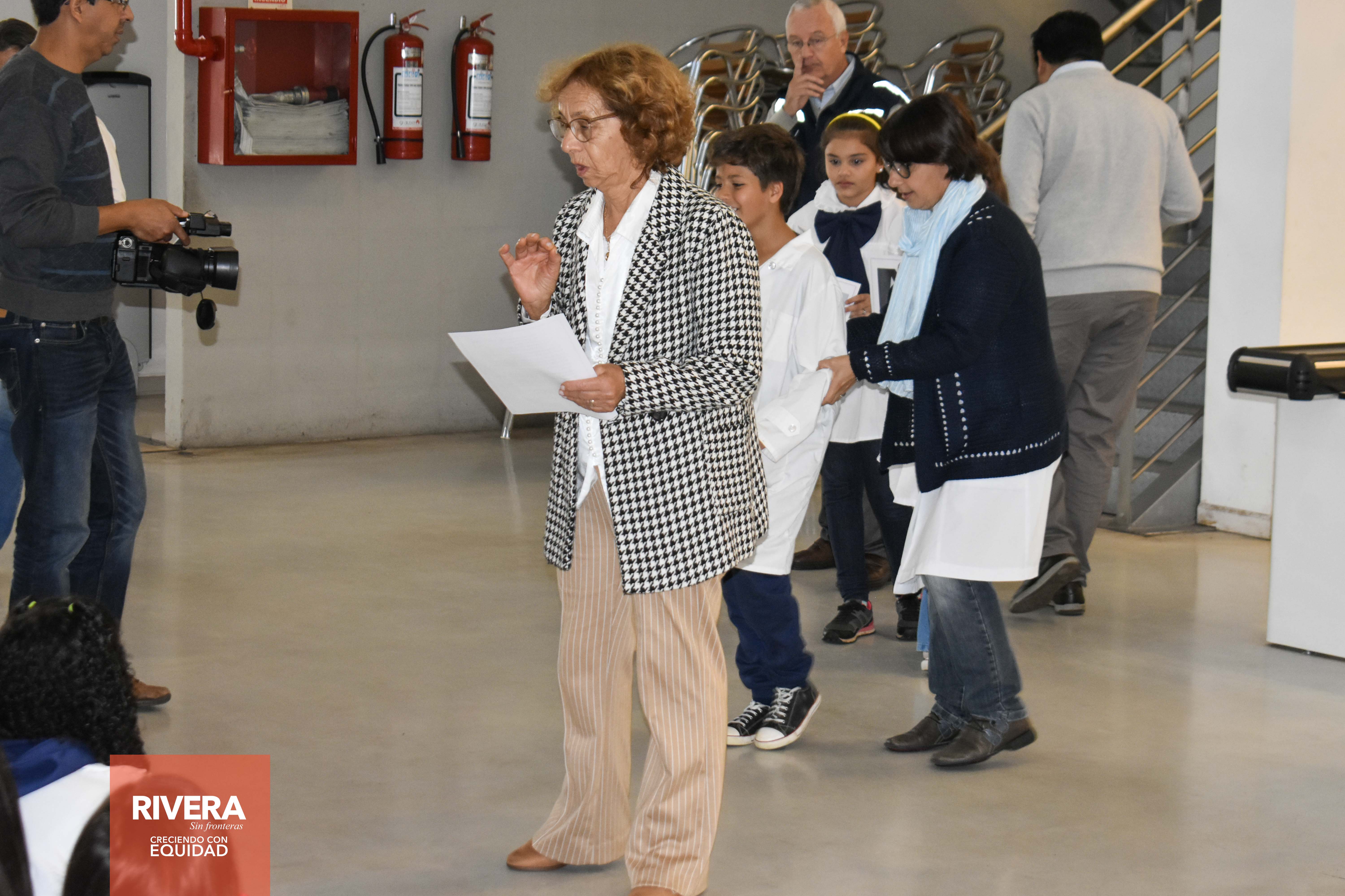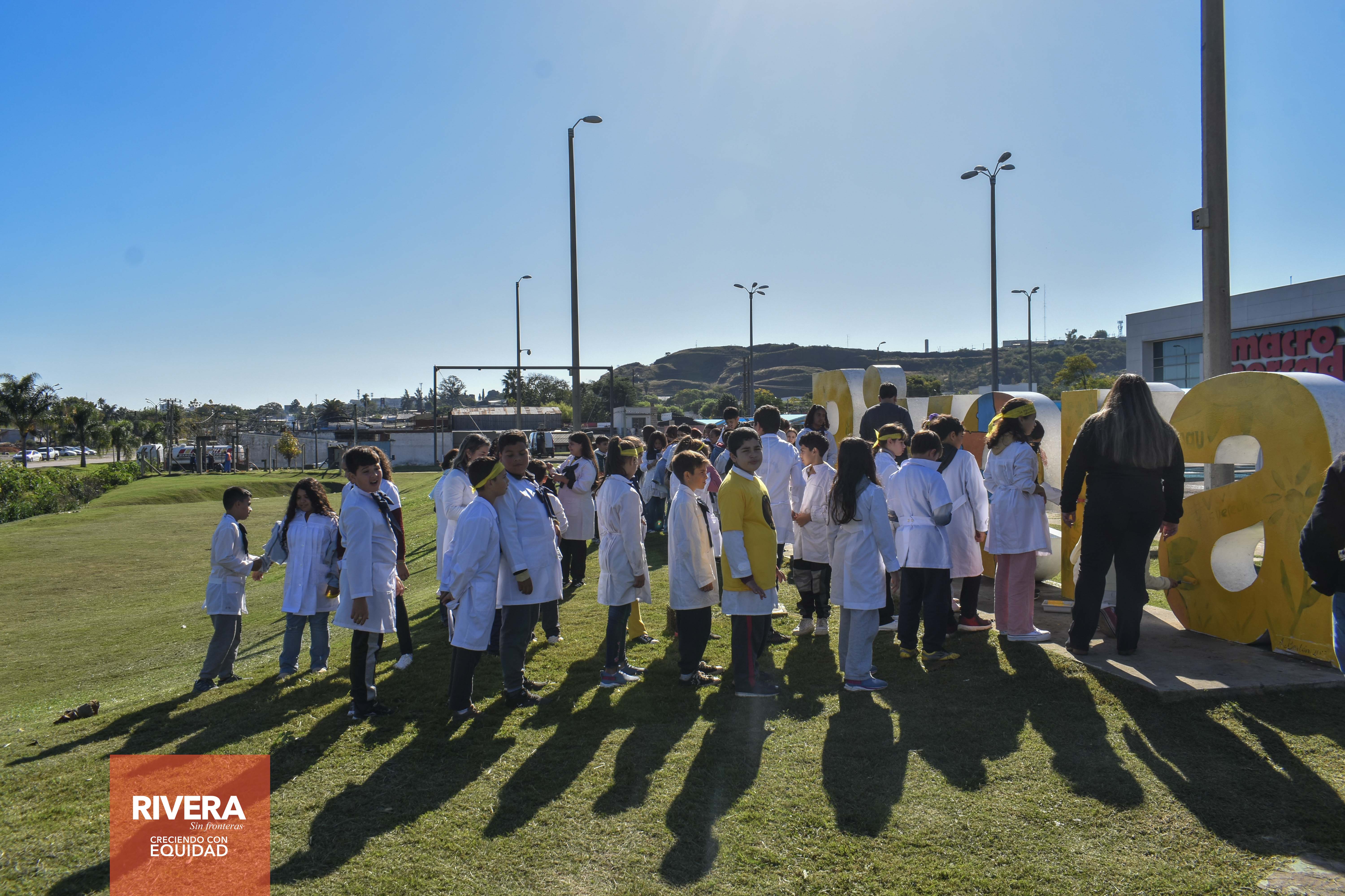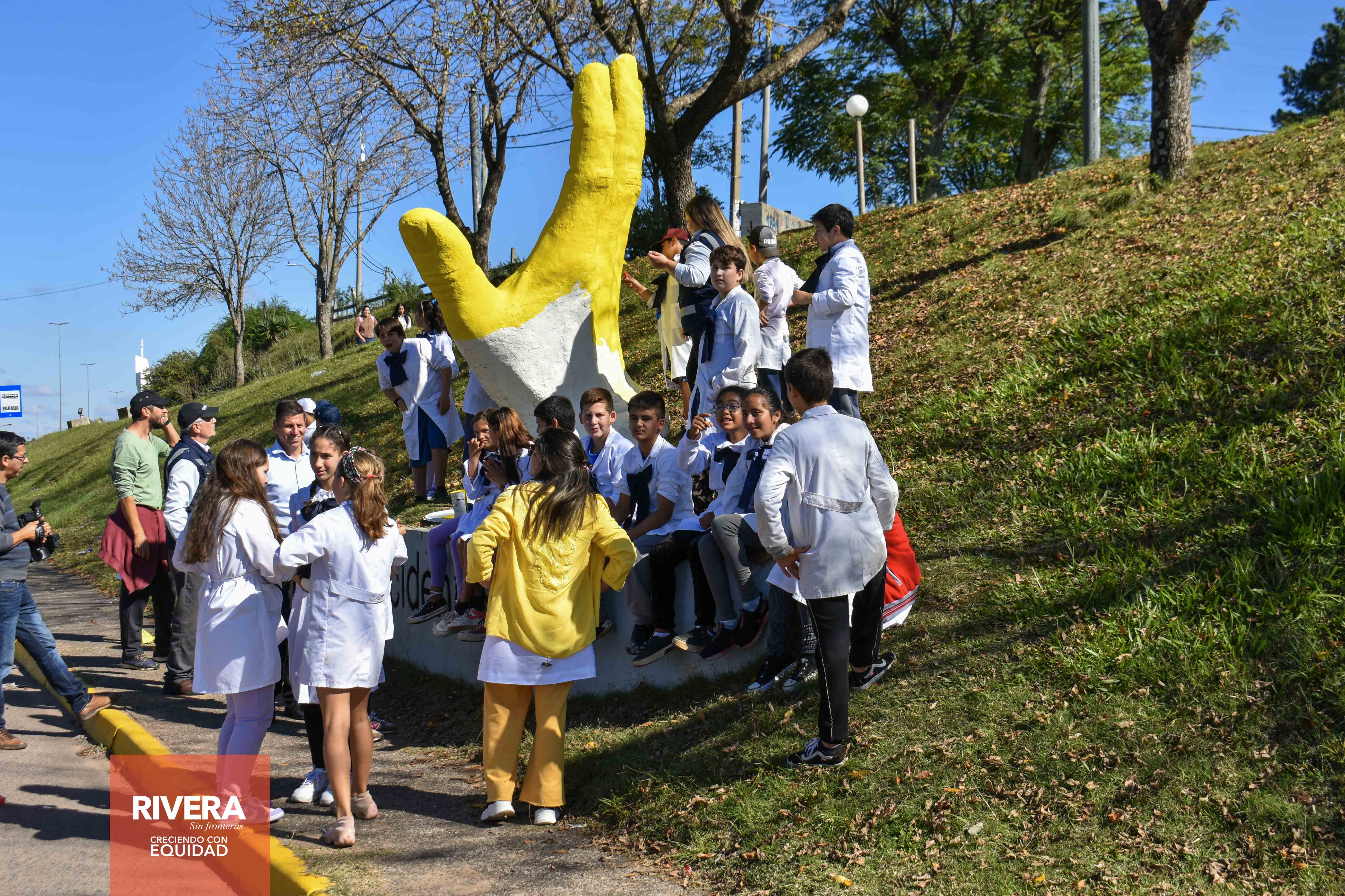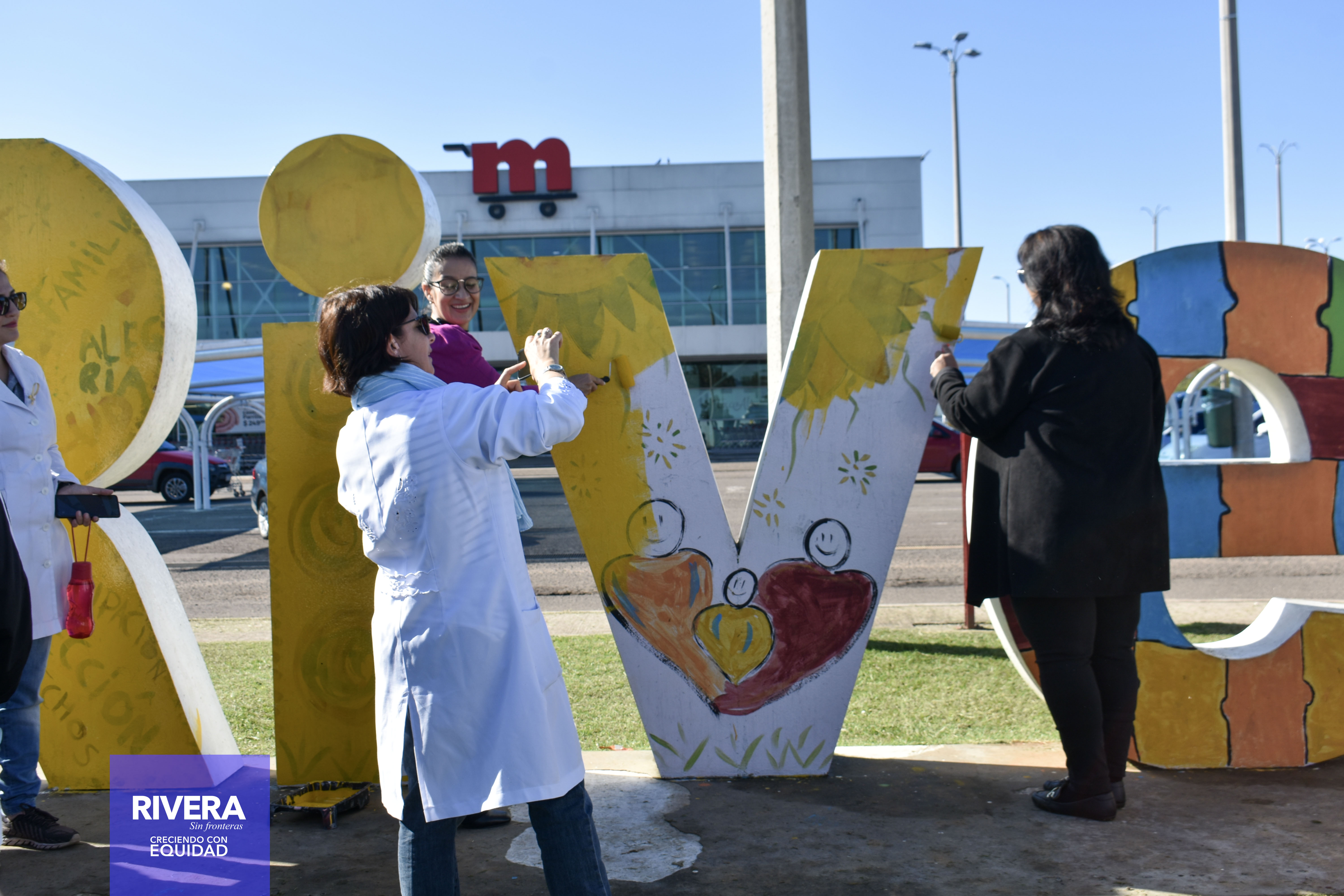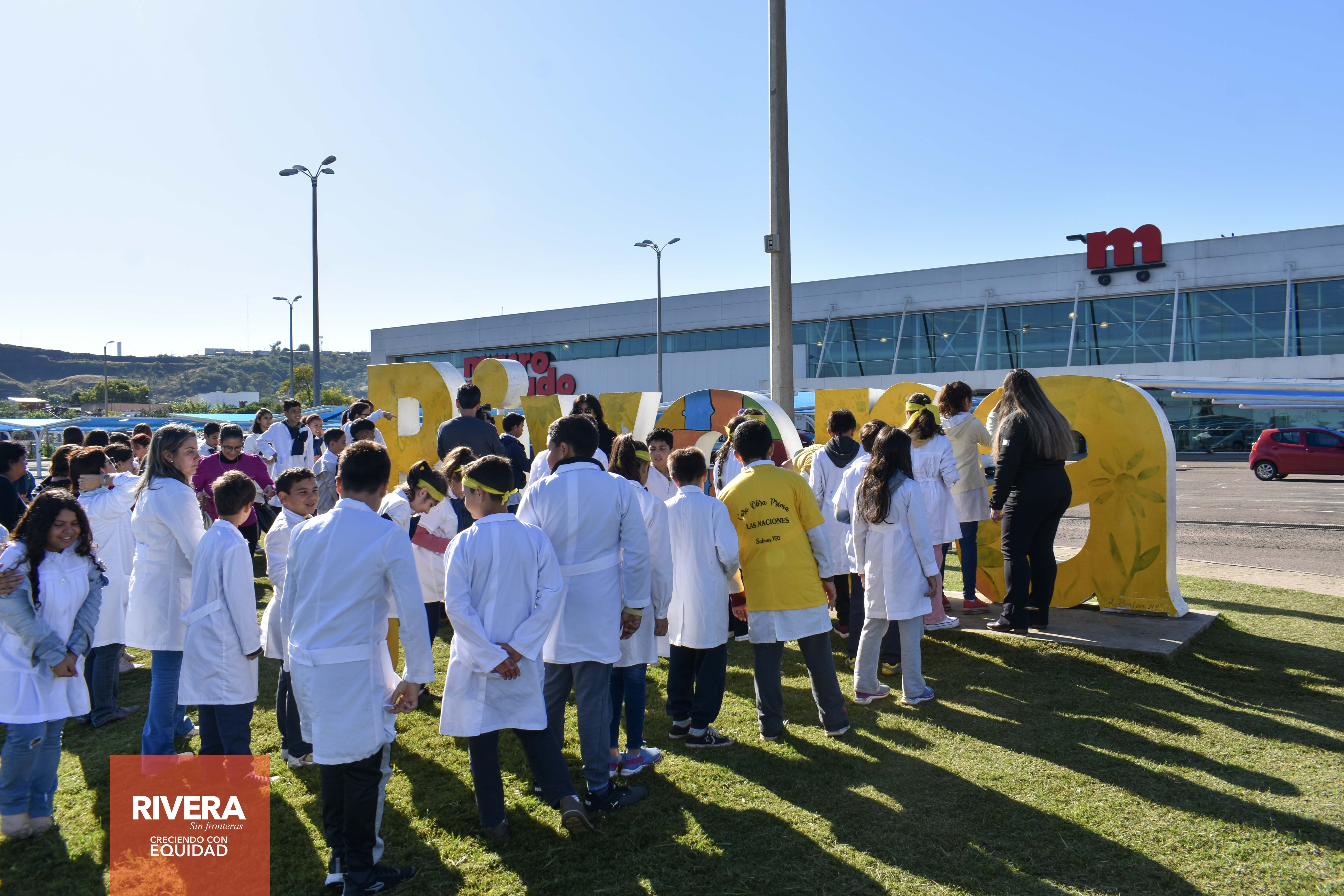 En horas de la mañana del martes 9 de mayo, alumnos y docentes de la escuela Nº 112 de barrio Bisio, autoridades de Educación primaria de la Dirección General de Tránsito y de instituciones asociadas, pintaron un lazo en la entrada del supermercado Macro Mercado y las letras corporeas que forman la palabra RIVERA en color amarillo.