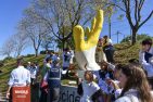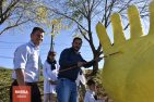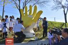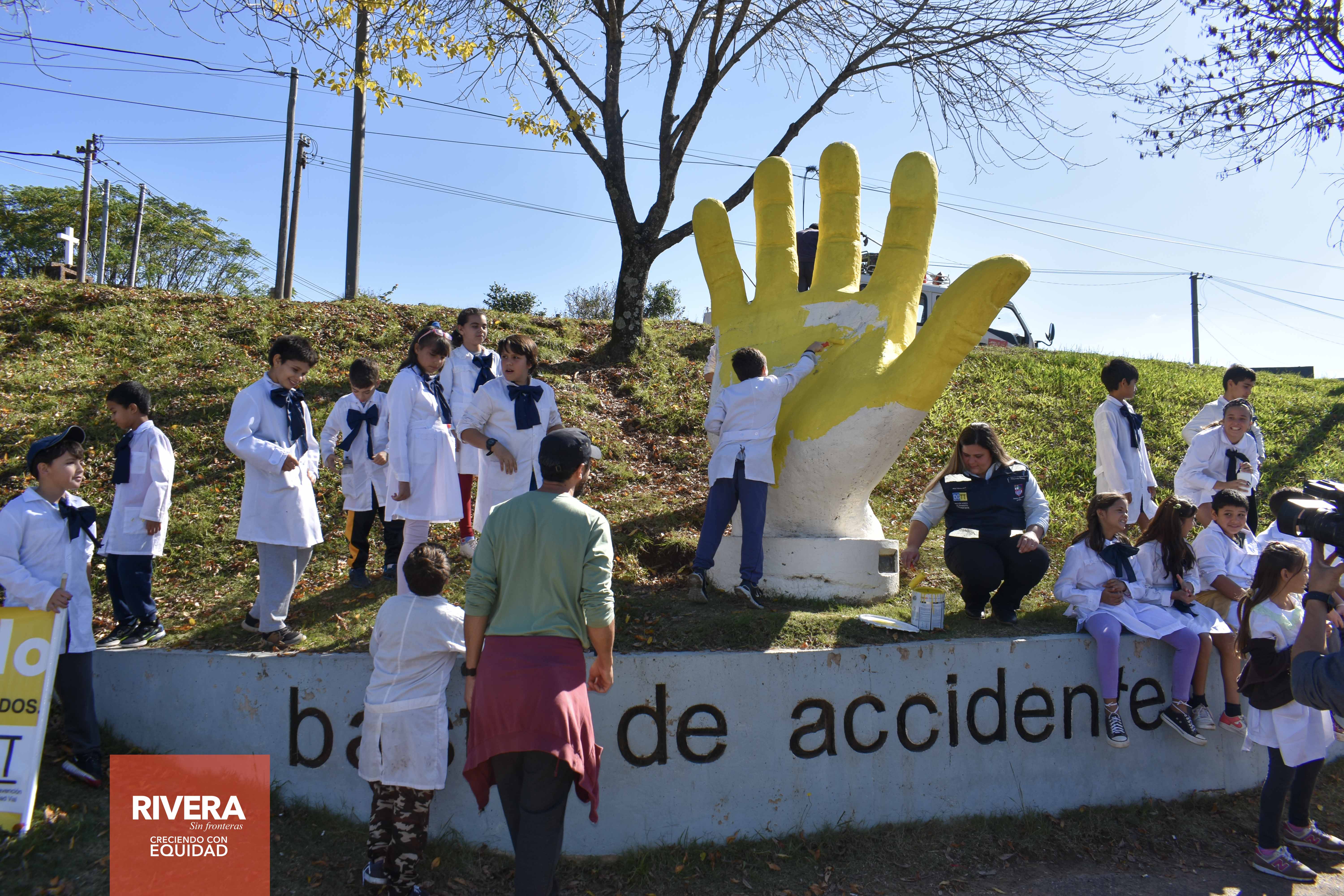Ya en horas de la tarde los alumnos de la Escuela N° 149 pintaron la escultura de la mano(que hace referencia a no mas accidentes) en la entrada de la ciudad.