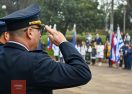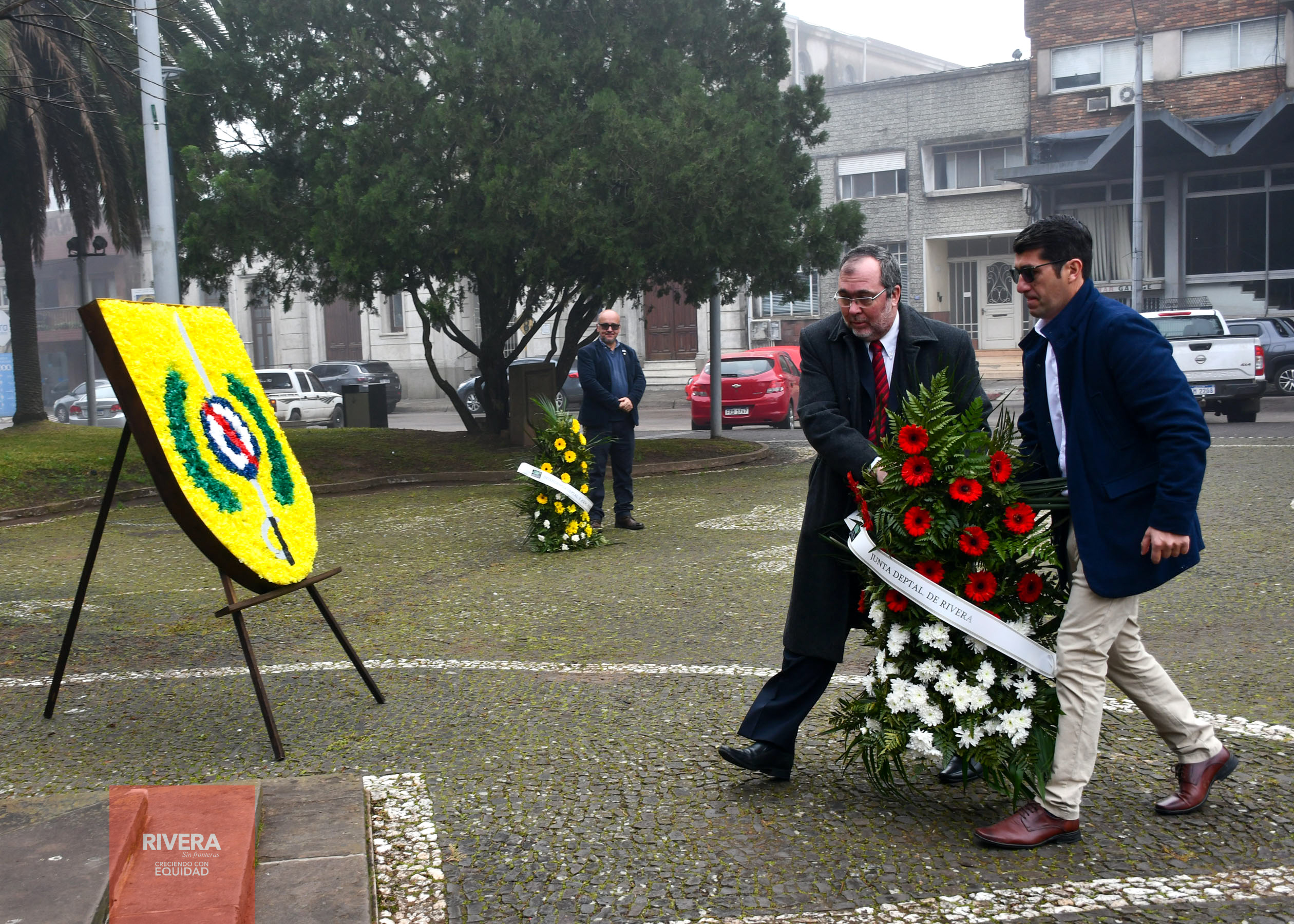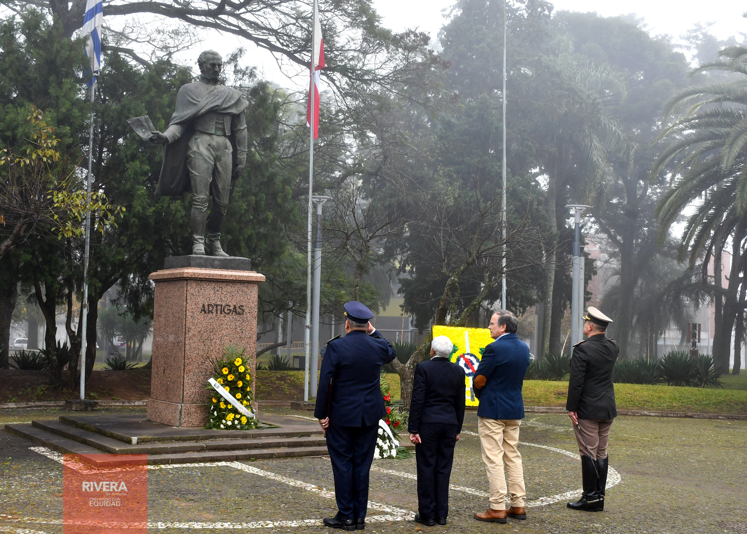 El inicio de las conmemoraciones se dió lugar con la colocación de ofrendas florales al pie del Monumento al Prócer en el Rincón de la Patria de Plaza Artigas.