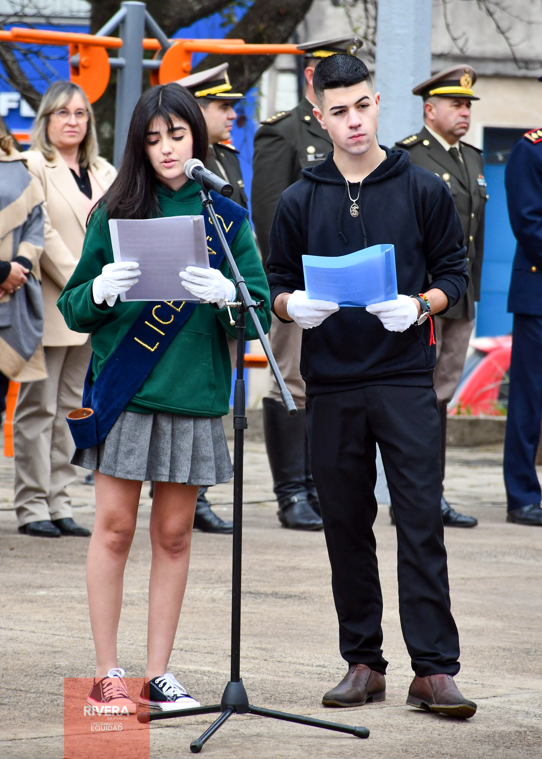 Minutos más tarde, en Plaza “18 de Julio” de Barrio Rivera Chico tuvo lugar el Acto Central en el Departamento donde la oratoria de la Fecha Patria estuvo a cargo de los Estudiantes del Liceo N° 2 y del Liceo N° 5, Sofía de la Rosa y Kevin Saavedra, respectivamente.