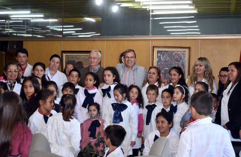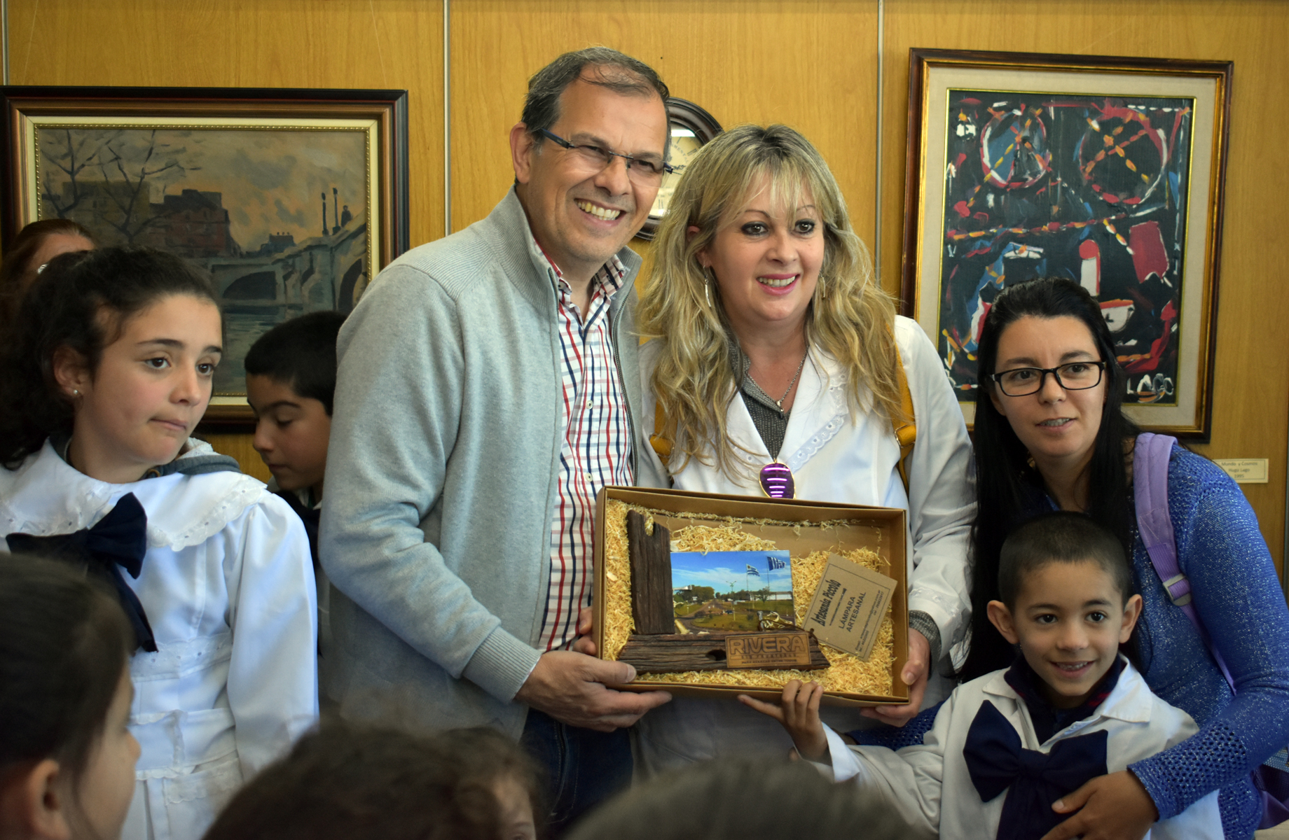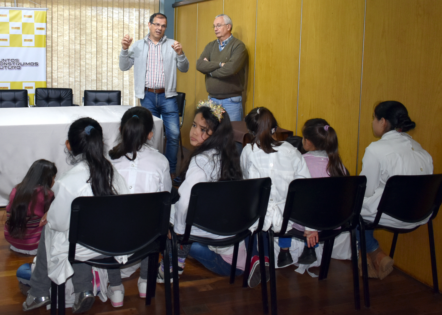 Al culminar la charla, los niños fueron recibidos por el intendente en su despacho, donde vivieron momentos simpáticos, hubo un intercambio ameno con los niños y el jefe Comunal respondió cada pregunta formulada; al finalizar la visita les obsequió un cuadro recordatorio.