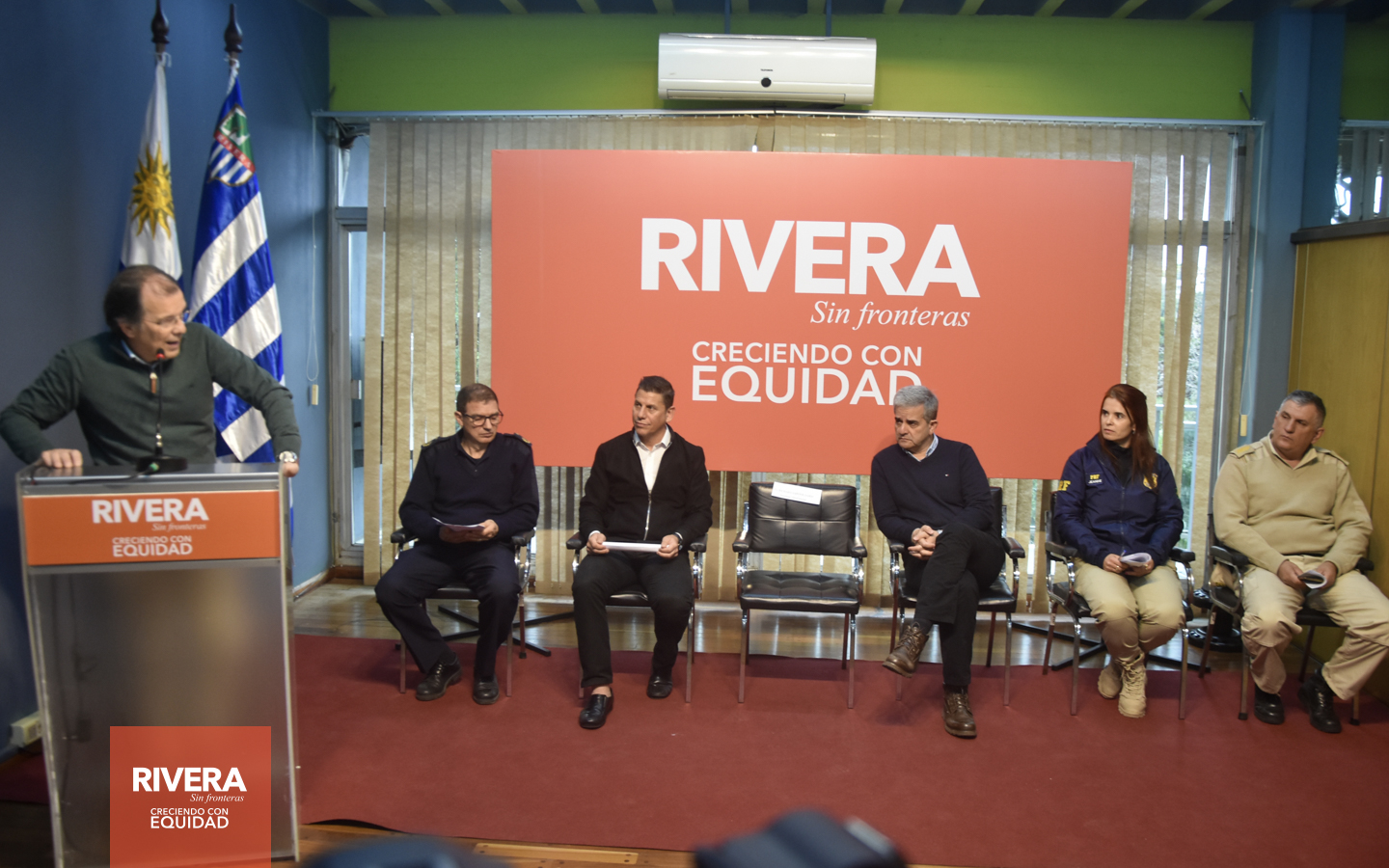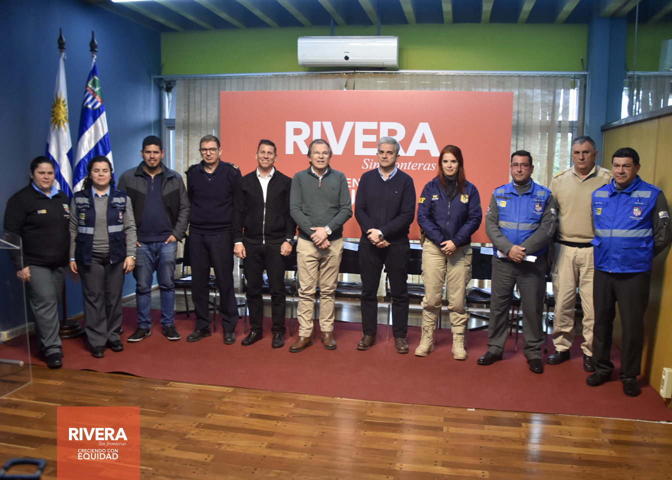 El intendente Cr. Richard Sander y el director general de Tránsito y Transporte, Mauricio González, oficiaron como anfitriones en la instancia de conferencia de prensa en la que se ofrecieron detalles de las acciones previstas para la Noche de la Nostalgia, con operativos que reúnen al Ministerio del Interior, la Policía Rodoviária Federal (BR) y la Intendencia de Rivera, a través de varias de sus dependencias; junto a representantes de cada una de las instituciones.