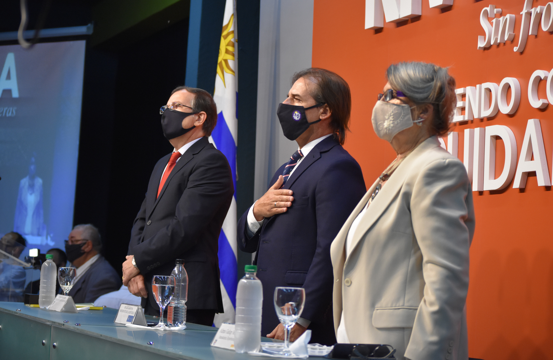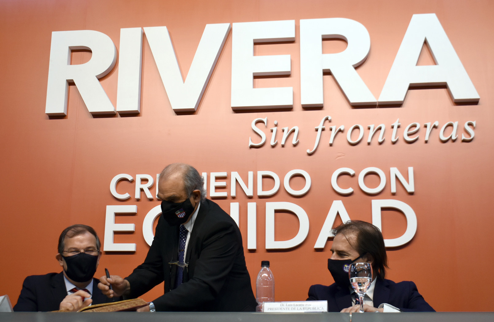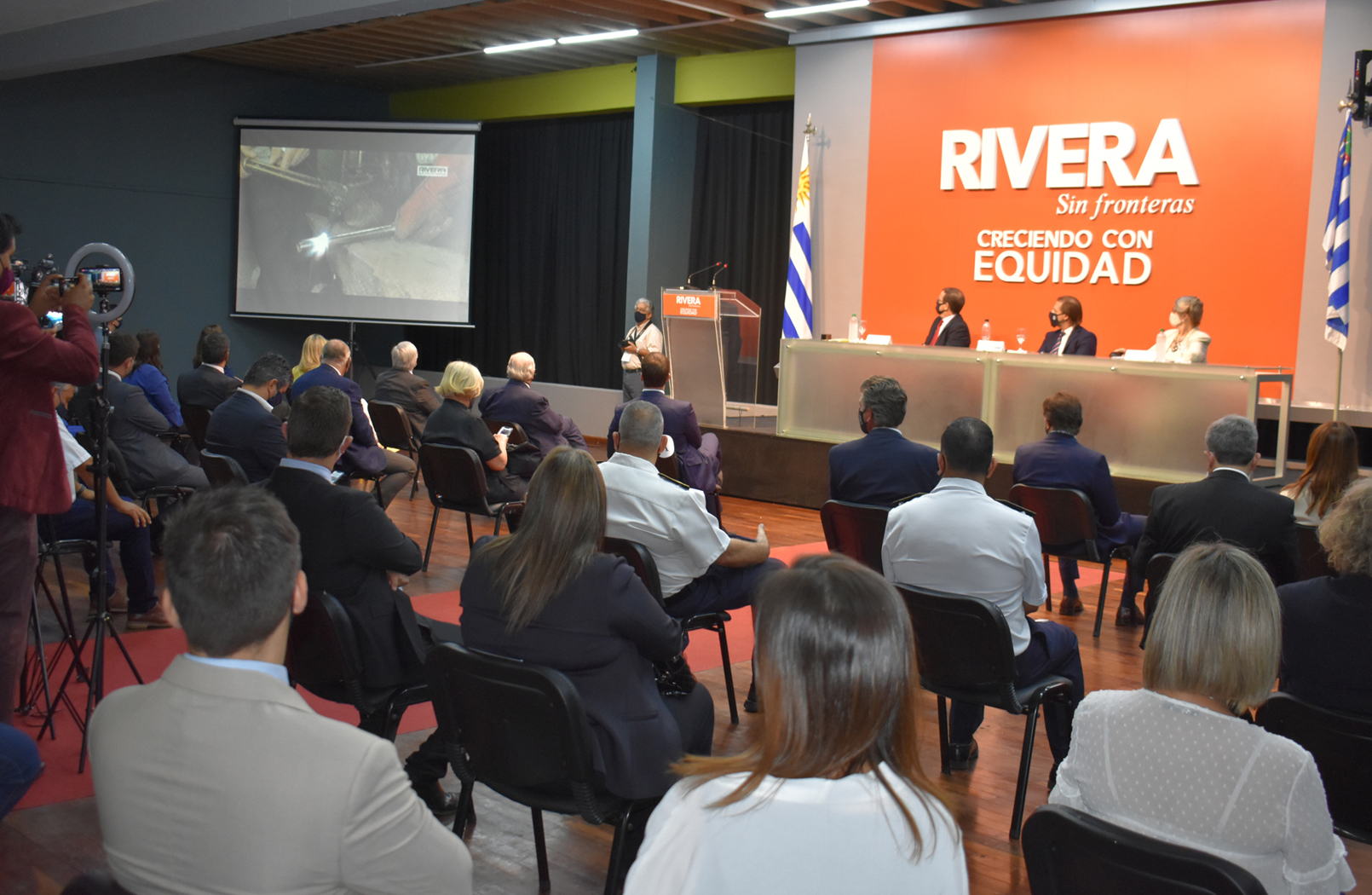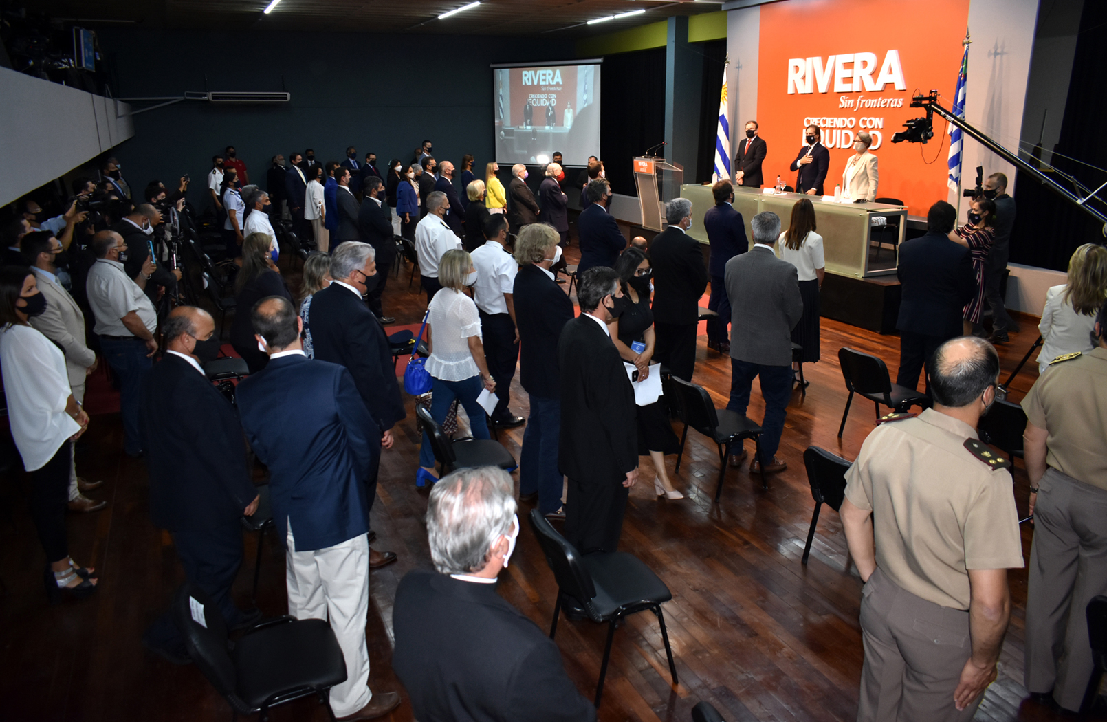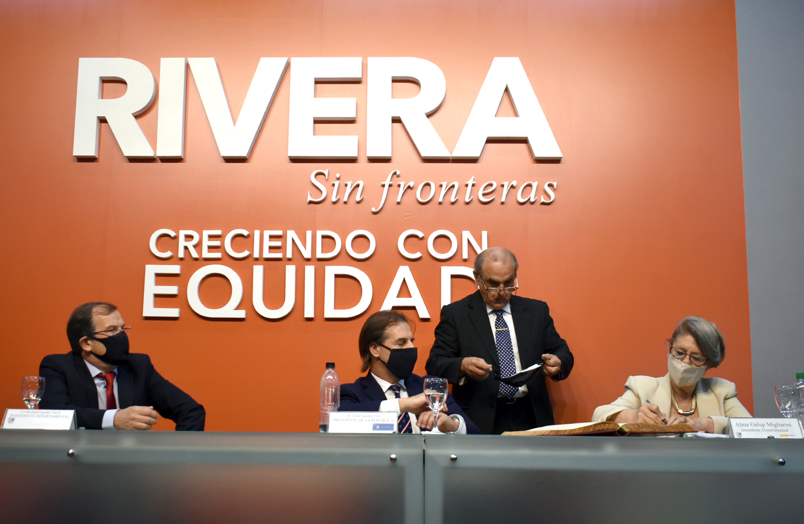 La mesa estaba constituida por el presidente de la República, Luis Lacalle Pou, la Sra.intendente saliente, Prof. Alma Galup Migliarini y el intendente Departamental de Rivera, Cr. Richard Sander Darin.