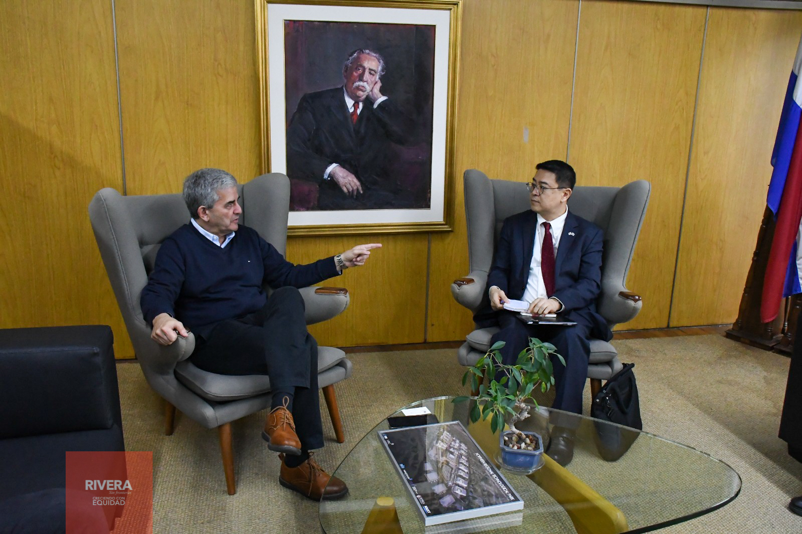 En la mañana de hoy, el secretario general de la Intendencia, Arq. José Mazzoni Gollardía, junto al director general de Obras, Arq. Martín García; el director general de Desarrollo y Medio Ambiente, Quím. Farm. Alejandro Bertón Solé; y la directora del Departamento de Relaciones Internacionales de la IDR, Lic. Paula Alonso, recibieron la visita del embajador de Corea del Sur, Sr. Noh Wonil.