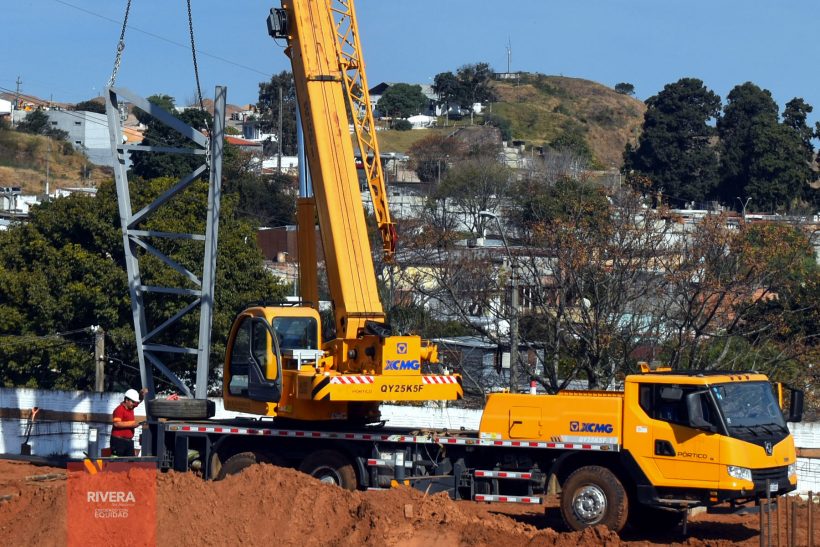 En la mañana de hoy, iniciaron la colocación de las estructuras metálicas, columnas y cerchas, de la obra del Polideportivo Don Bosco. Luego de terminada la parte de pluviales y cimentación con vigas y mucho hierro comienza la etapa de metálicos que soportarán el peso de paredes y techo.