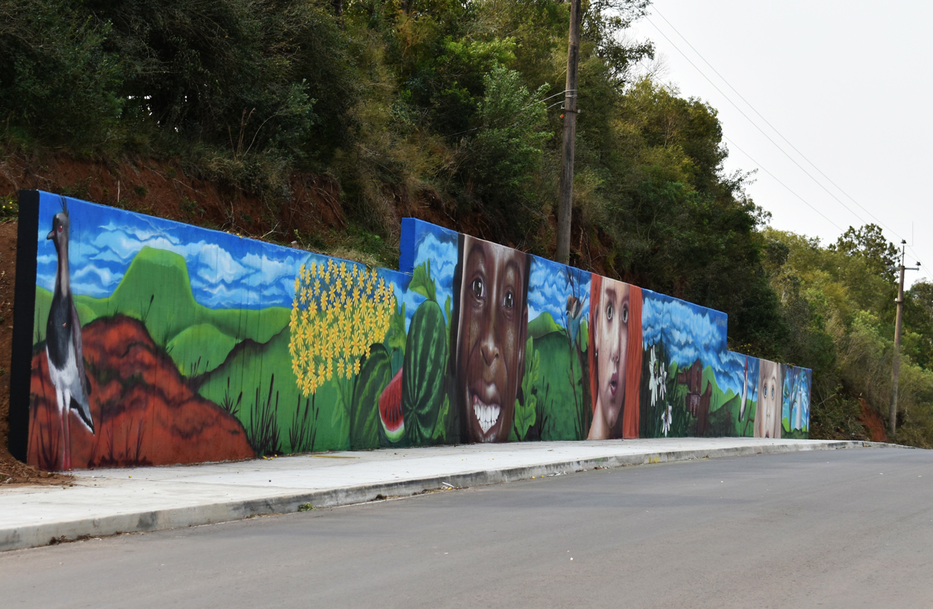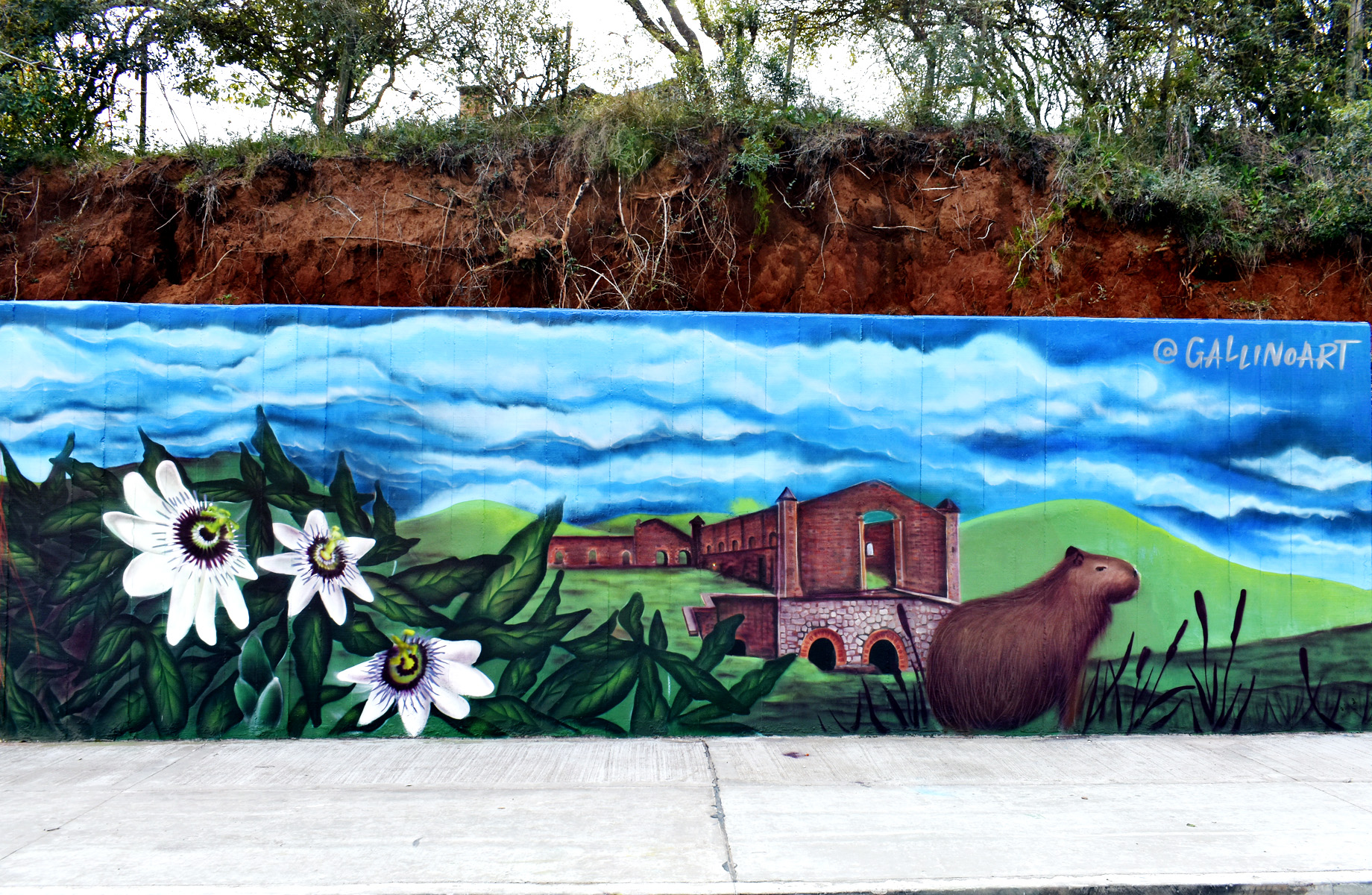 Se construyó un muro de contención , donde se puede apreciar un mural del artista plástico José Gallino, “nos deleitó con su arte y vino a coronar la obra que estamos finalizando en los próximos días”.