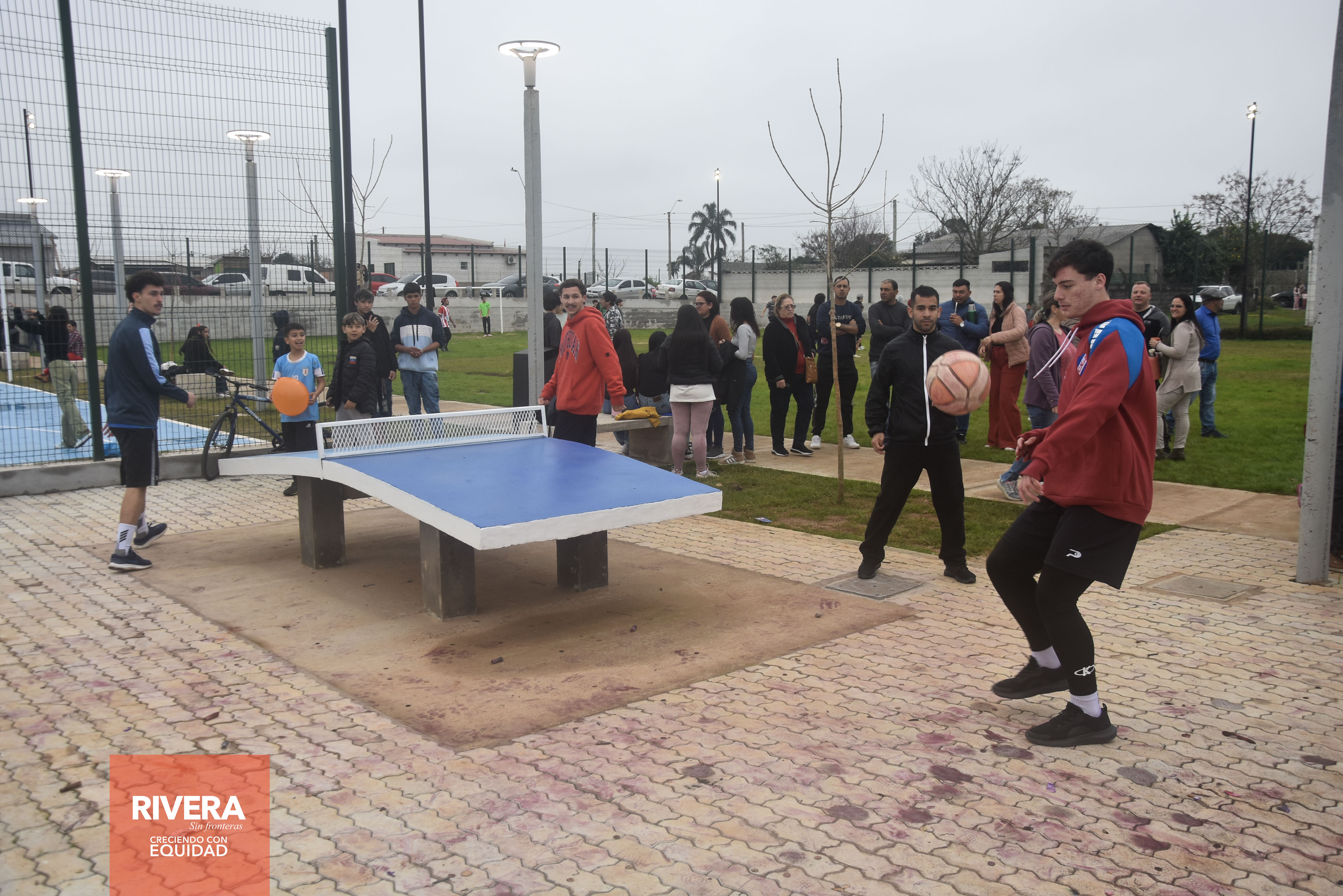 Hoy cuenta con canchas de fútbol con medidas oficiales; cancha polifuncional; de fútbol tenis; mesas de teqball; infraestructura pensada para toda la familia con tableros de ajedrez pintados en las mesas que acompañan los bancos y sin perder la mirada inclusiva (se construyeron rampas que faciliten el acceso de personas con movilidad reducida).