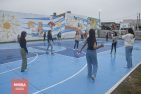 Entre los vecinos del barrio se eligieron dibujos para pintar un mural con todos los temas elegidos por ellos y embellecer un muro medianero existente.