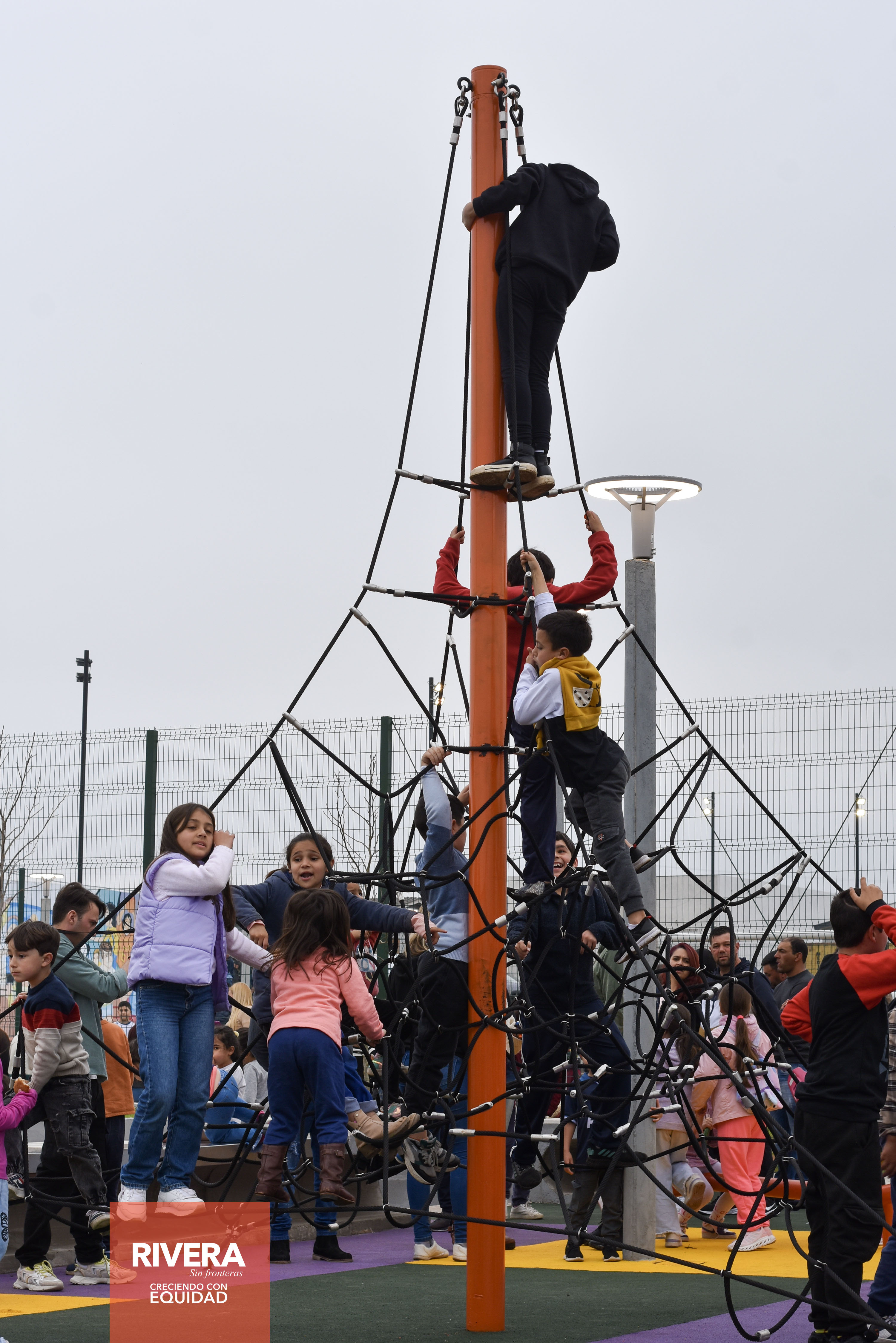 “Para la primera infancia se instalaron juegos adecuados y de vanguardia sobre un pavimento de caucho reciclado, lo que además del colorido le da una textura blanda para los más pequeños. Entre los juegos instalados están el gira mundo, la pirámide tetra, hamacas para adultos y niños, paredes de escalada y un gran tobogán de acero inoxidable” así lo expresó el director General de Obras.