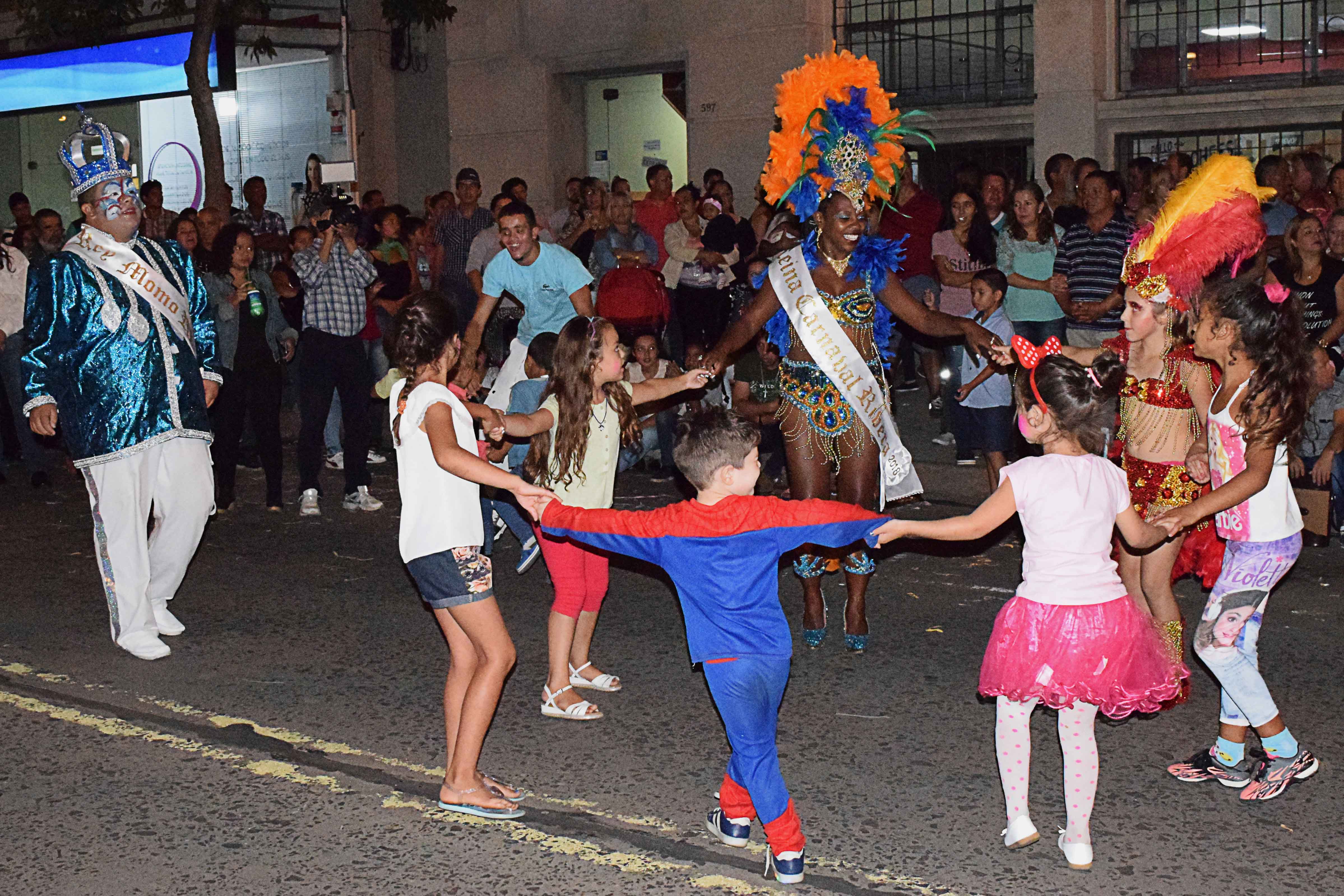 La noche del sábado comenzó con la presentación de la Reina del Carnaval, Michelle Machado y el Rey Momo, Pablo de los Santos, que bailaron junto al excelente marco de público que se dio cita para compartir el carnaval con su familia y amigos.