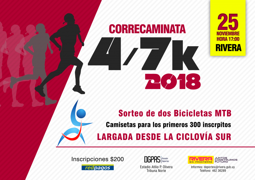 Este domingo 25 de noviembre, llega la 5ta edición de la Correcaminata en Rivera, la 4 k y 7k. Organizada por la DGPAS de la IDR, a través de División Deportes, y junto a varios colaboradores. Santiago Padilla, de División Deportes, brindó detalles e invitó a todas las familias a que participen, ya que antes de […]