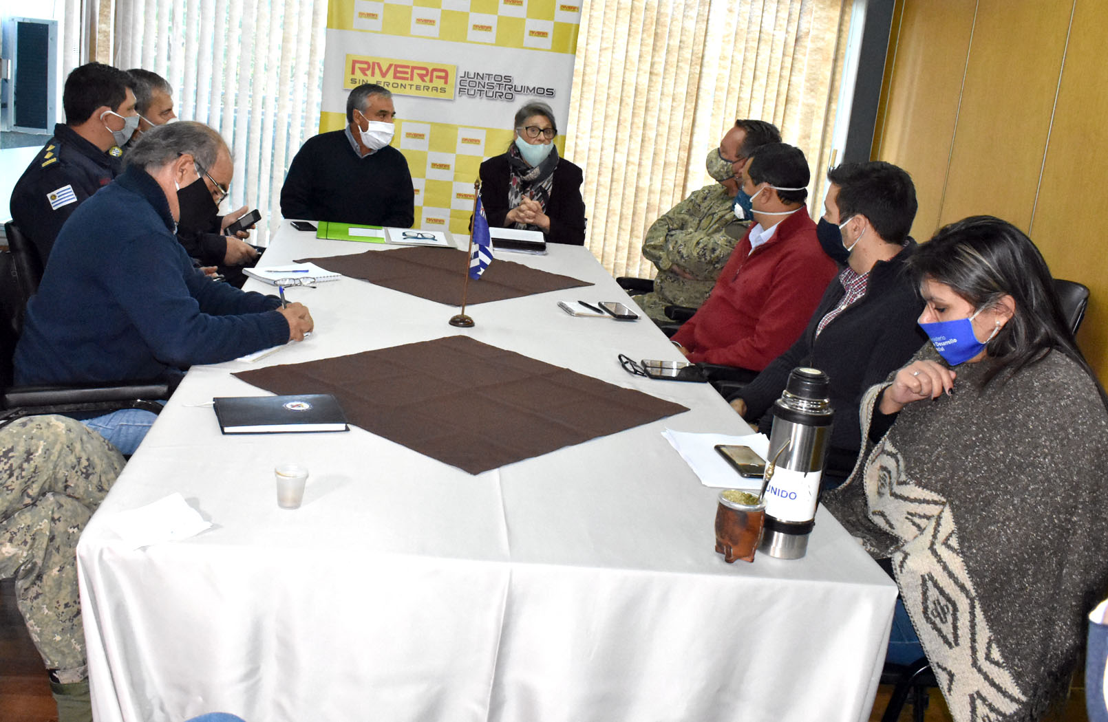 En la mañana del miércoles 6 de mayo, la Sra. Intendente Departamental de Rivera, Alma Galup Migliarini, presidió la reunión de trabajo con los miembros de carácter permanente del Comité de Emergencia Departamental de Rivera, al finalizar la misma brindaron una conferencia de prensa para informar la situación actual y las medidas tomadas con respecto a la emergencia sanitaria en la frontera (COVID-19).