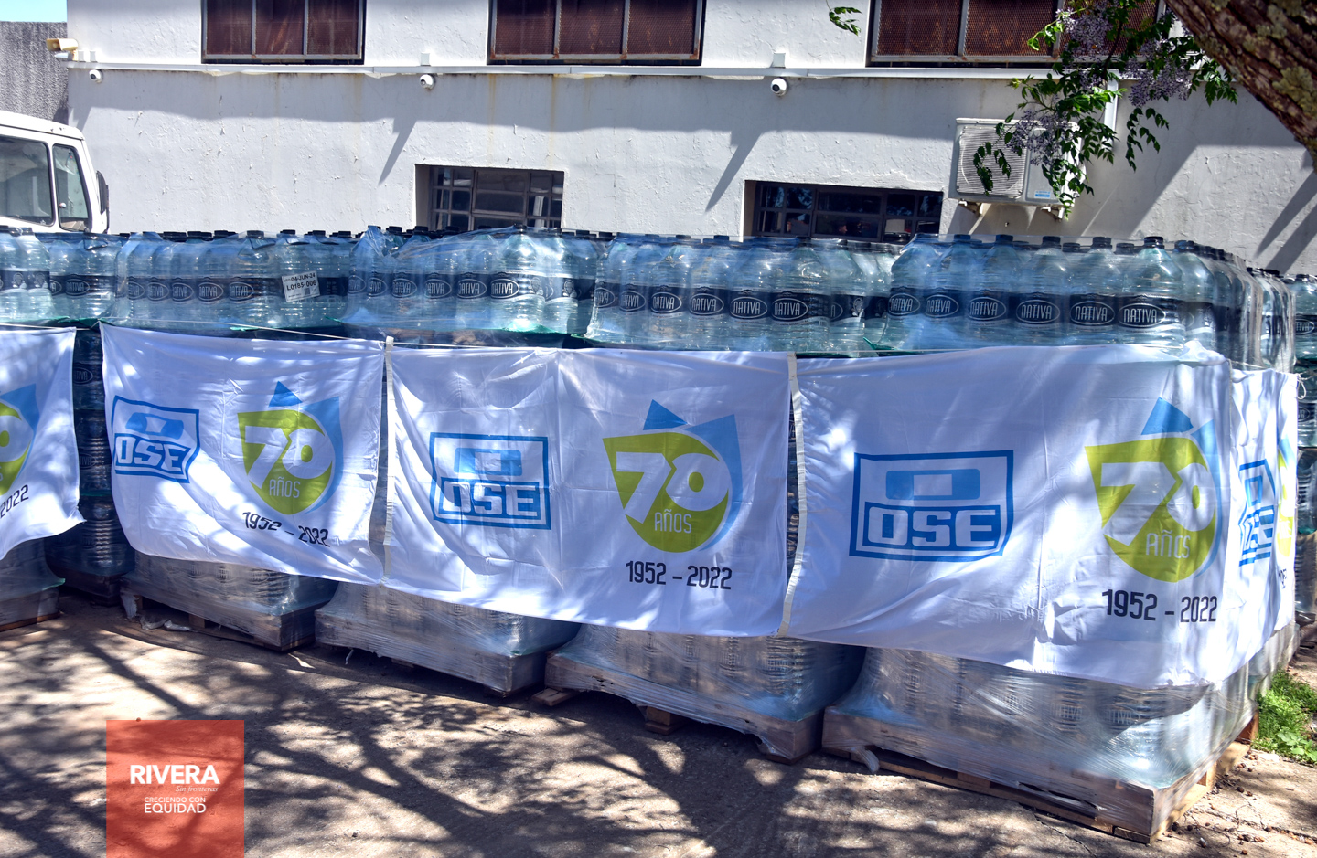En la mañana de hoy, jueves 12 de octubre en instalaciones de OSE en calle Pdte. Feliciano Viera, se procedió a la donación por parte de de la empresa estatal de 4000 bidones de 6 litros(24000 litros de agua) al CECOED Rivera y Comité departamental de emergencias.