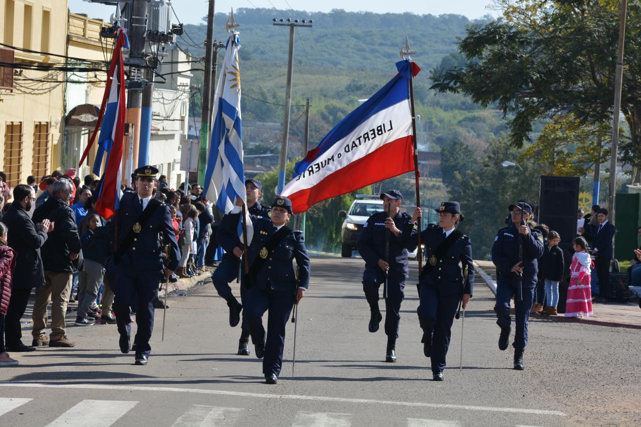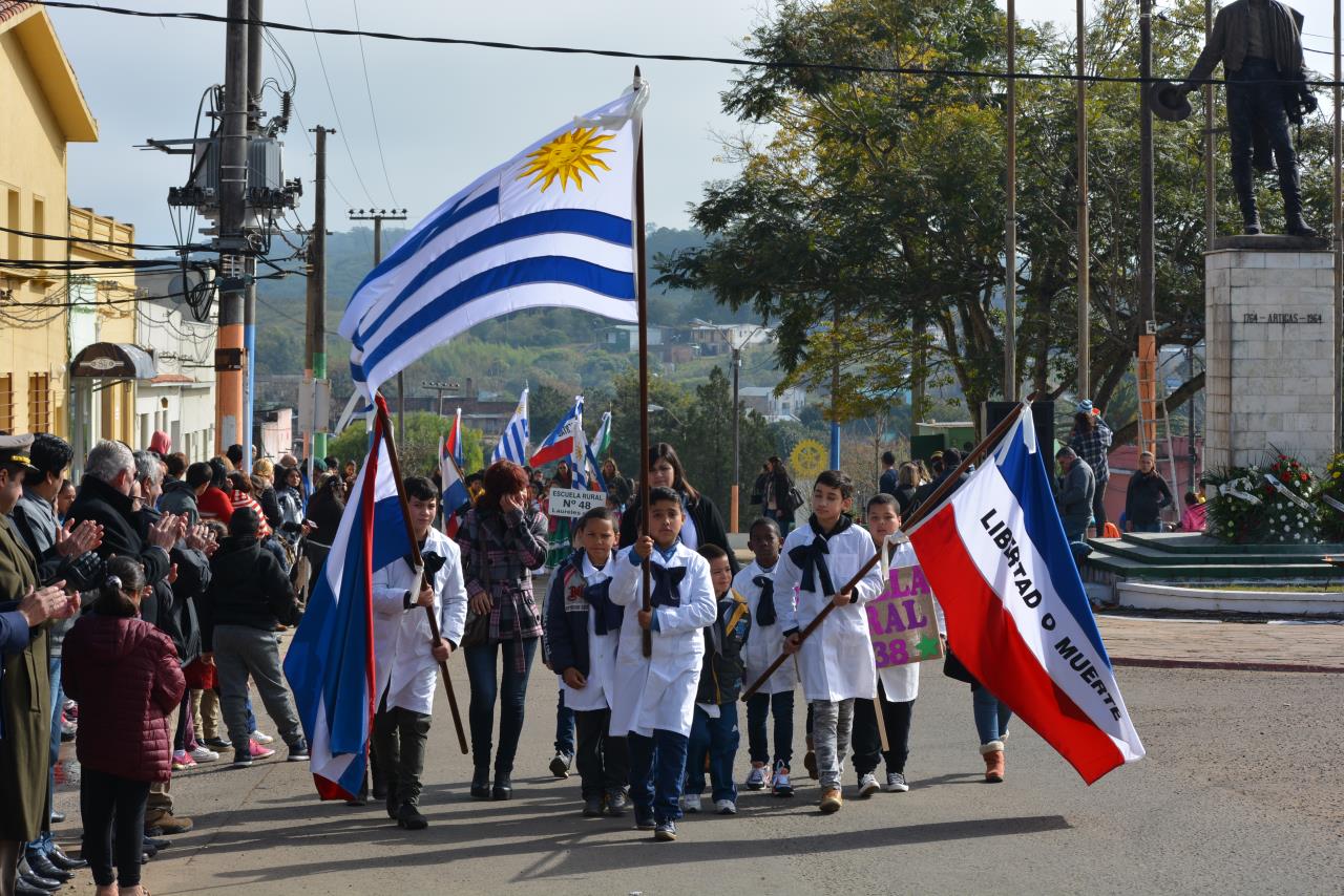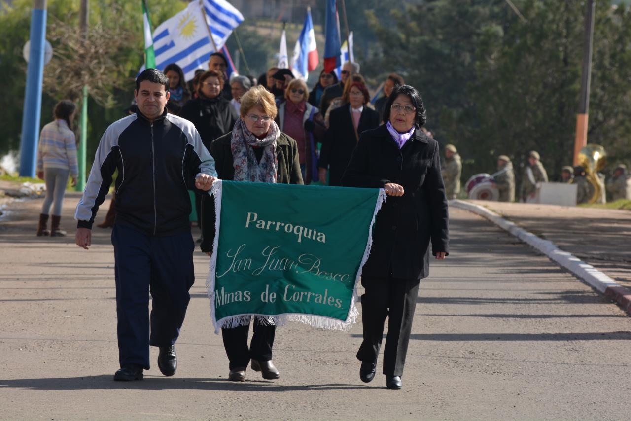 El evento organizado por la Intendencia Departamental de Rivera, la Asociación Patriótica de Rivera y el Comité Patriótico de Minas de Corrales, reunió a toda la comunidad en un gran desfile y acto frente al principal monumento del pueblo.
