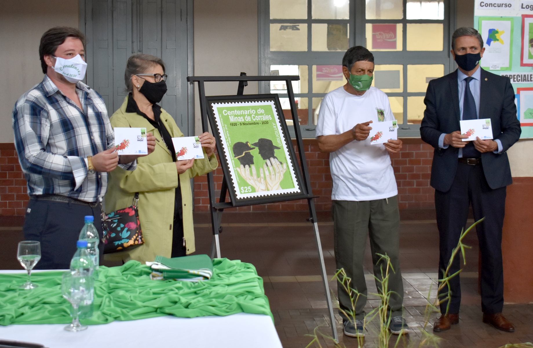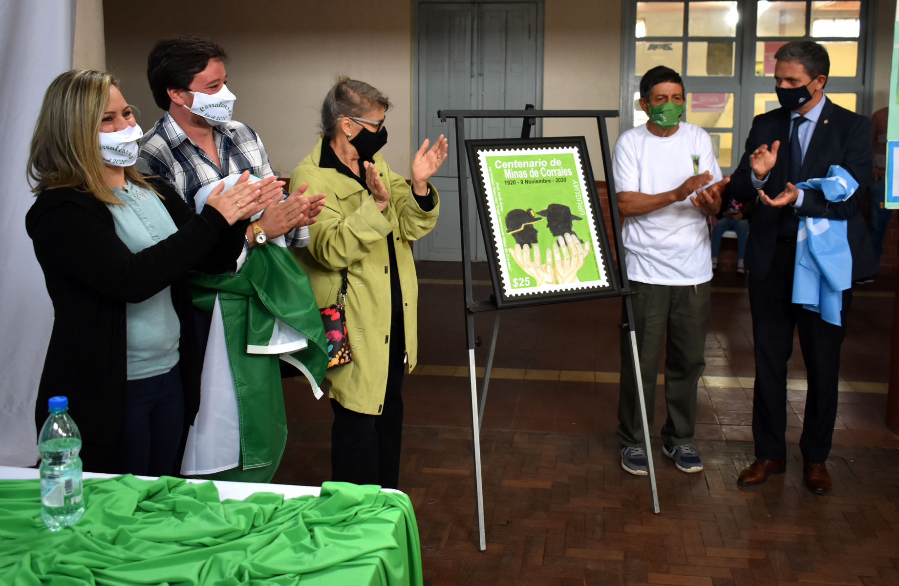 Seguidamente, en el Club Social de los Trabajadores, se reunieron autoridades departamentales, nacionales y del Correo Uruguayo, para la presentación y el lanzamiento oficial del Sello conmemorativo a los 100 años de Minas de Corrales.