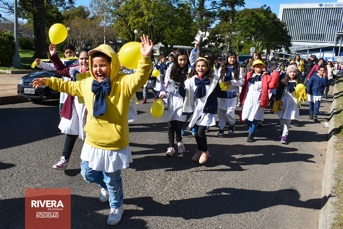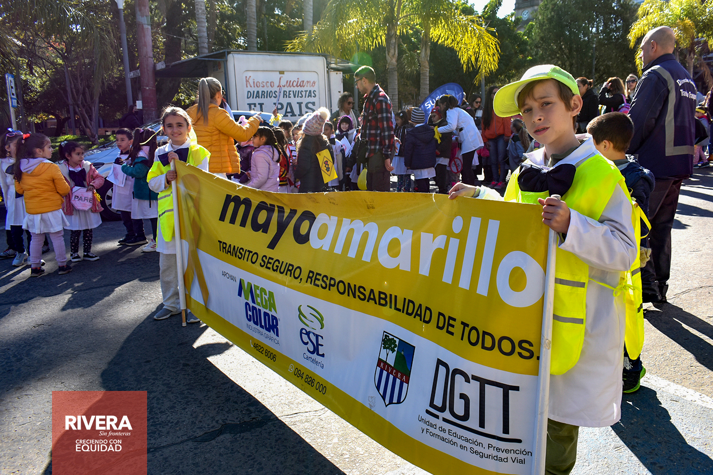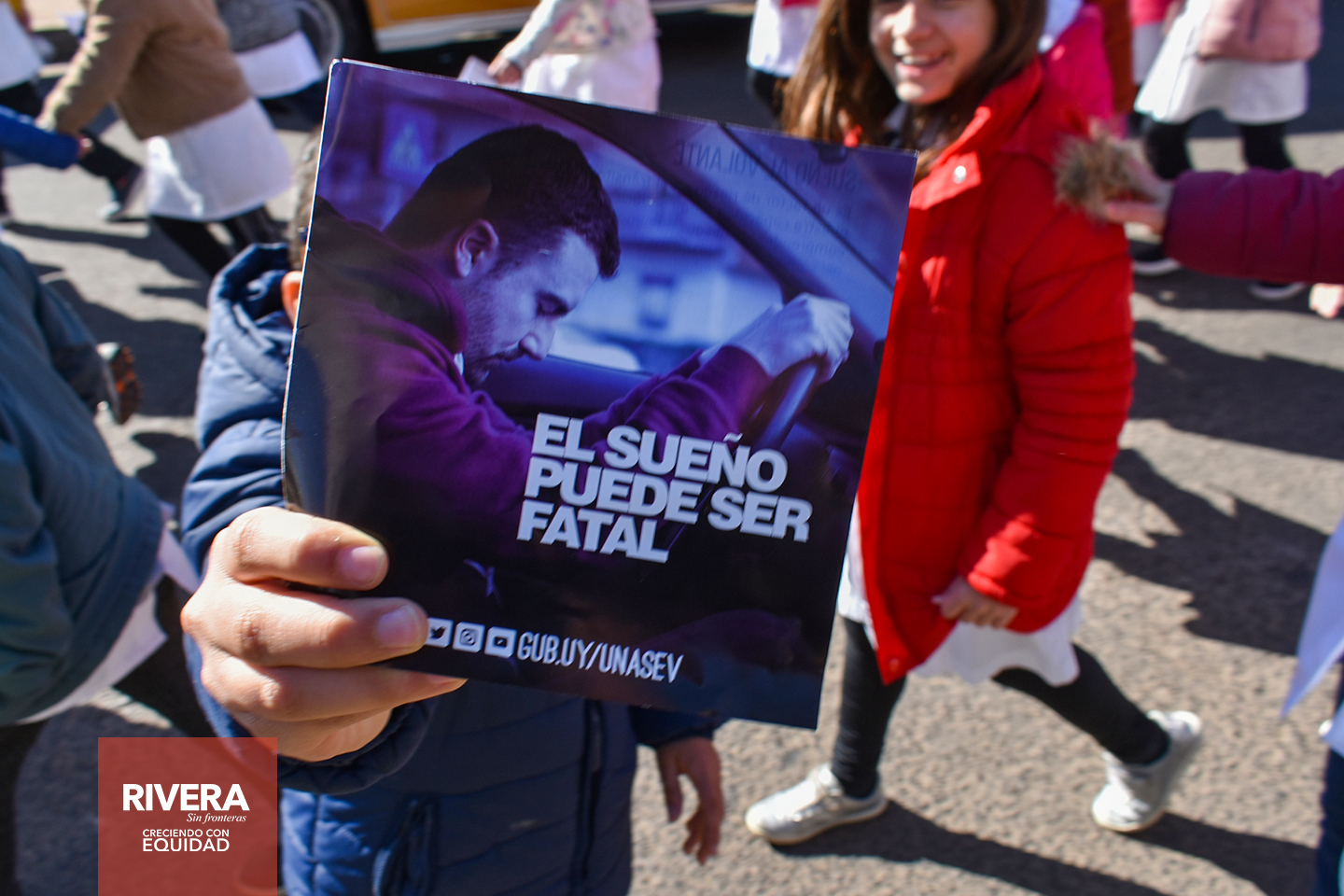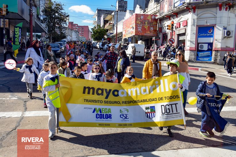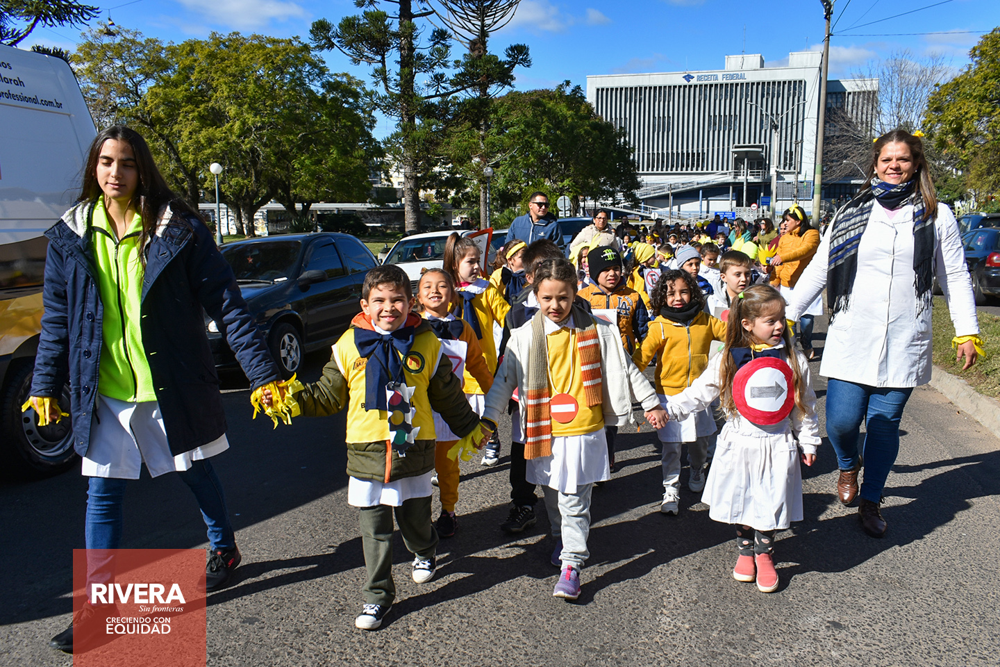 En horas de la tarde del martes 31 de mayo, en el marco de la campaña Mayo Amarillo, la Intendencia Departamental de Rivera, a través de la Dirección General de Tránsito y Transporte, realizó una paseata con alumnos,