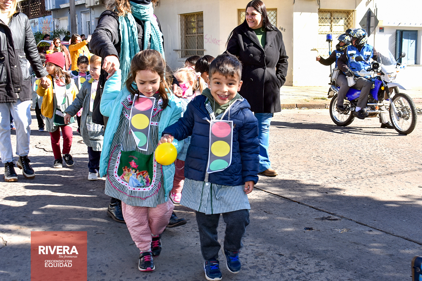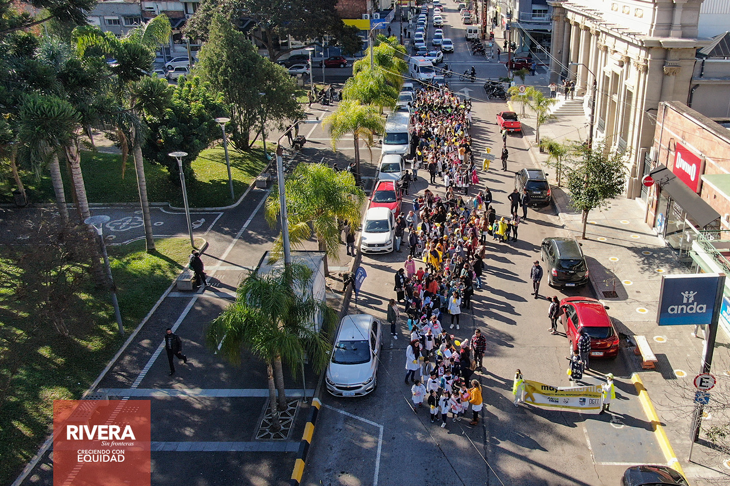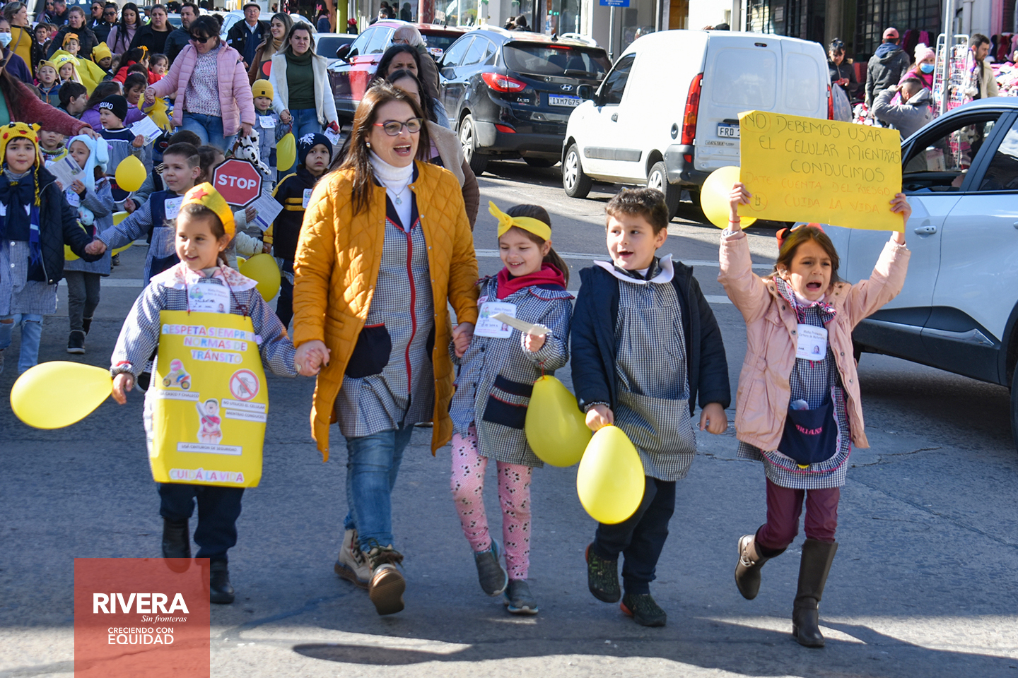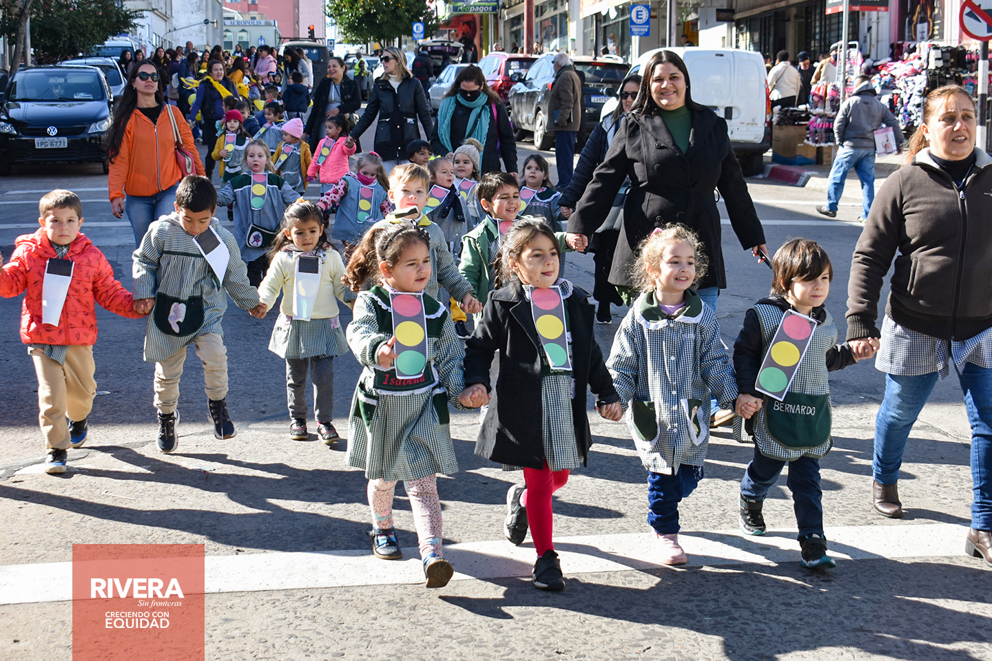 En horas de la tarde del martes 31 de mayo, en el marco de la campaña Mayo Amarillo, la Intendencia Departamental de Rivera, a través de la Dirección General de Tránsito y Transporte, realizó una paseata con alumnos,