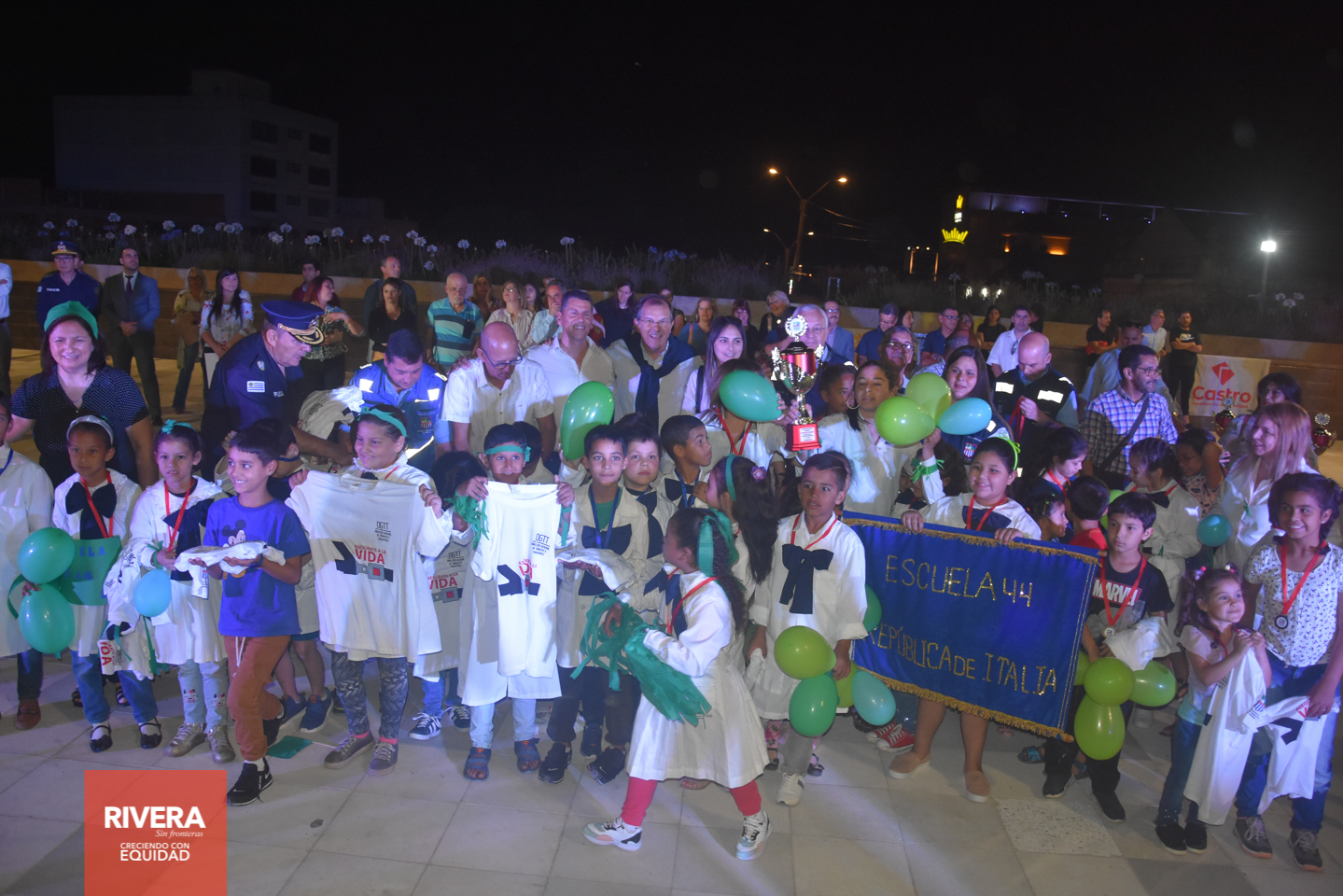 En el Teatro de Verano el martes 15 de noviembre sobre la hora 19:00, el Sr. Intendente Departamental de Rivera acompañado del director general de Tránsito y Transporte, equipo de Gobierno, empresas auspiciantes y colaboradores, realizó la entrega de premios a las 6 escuelas finalistas (categoría A y B).
