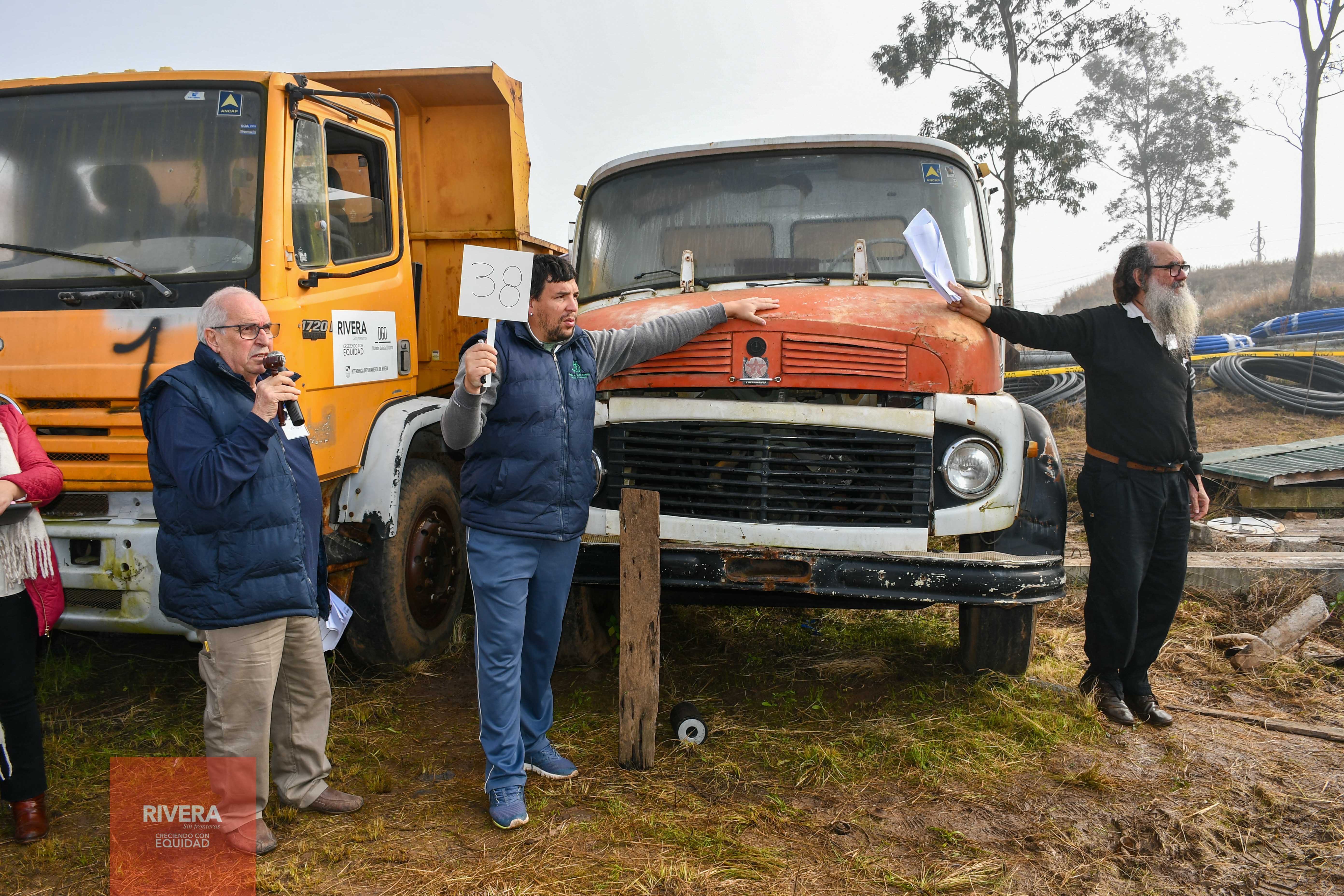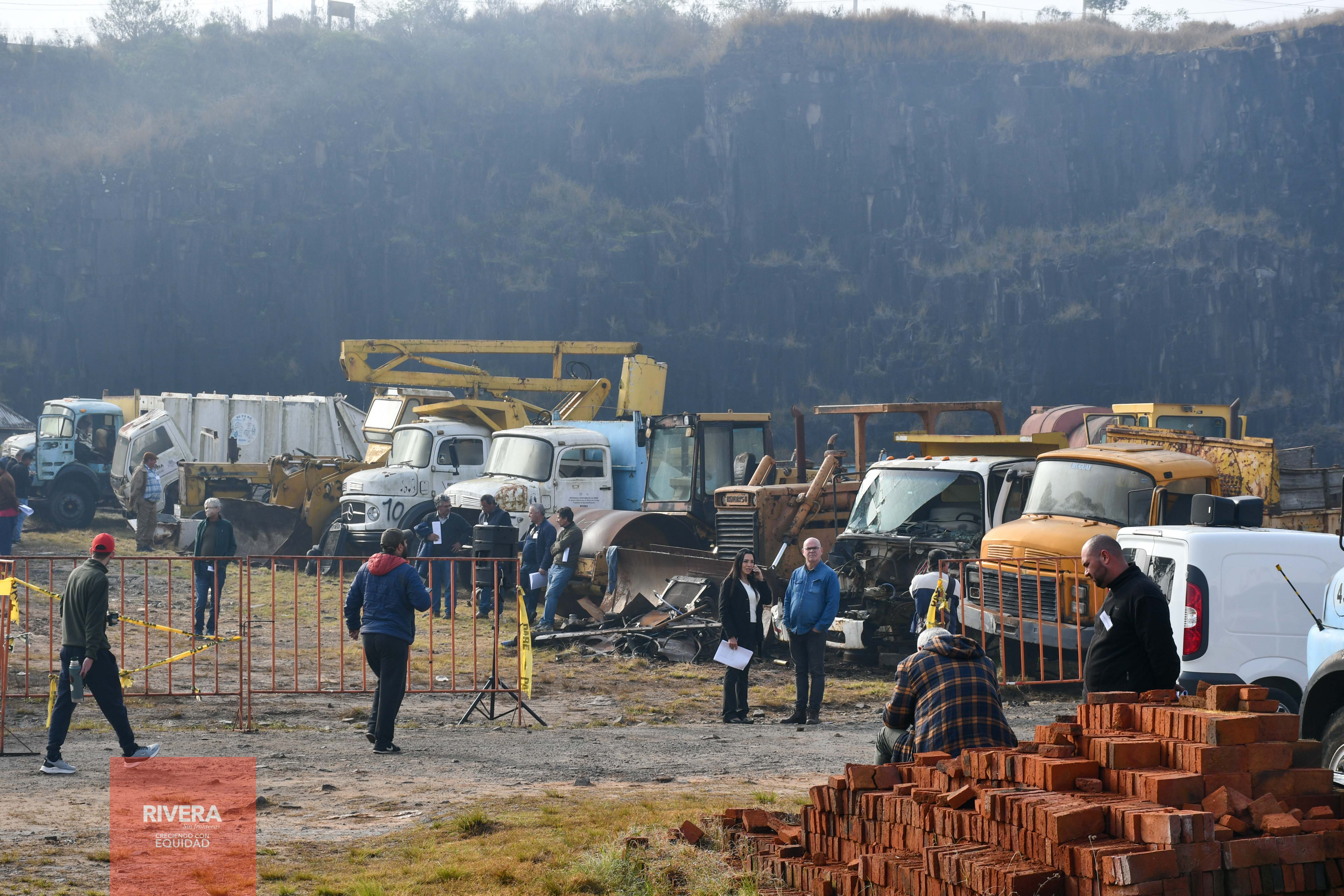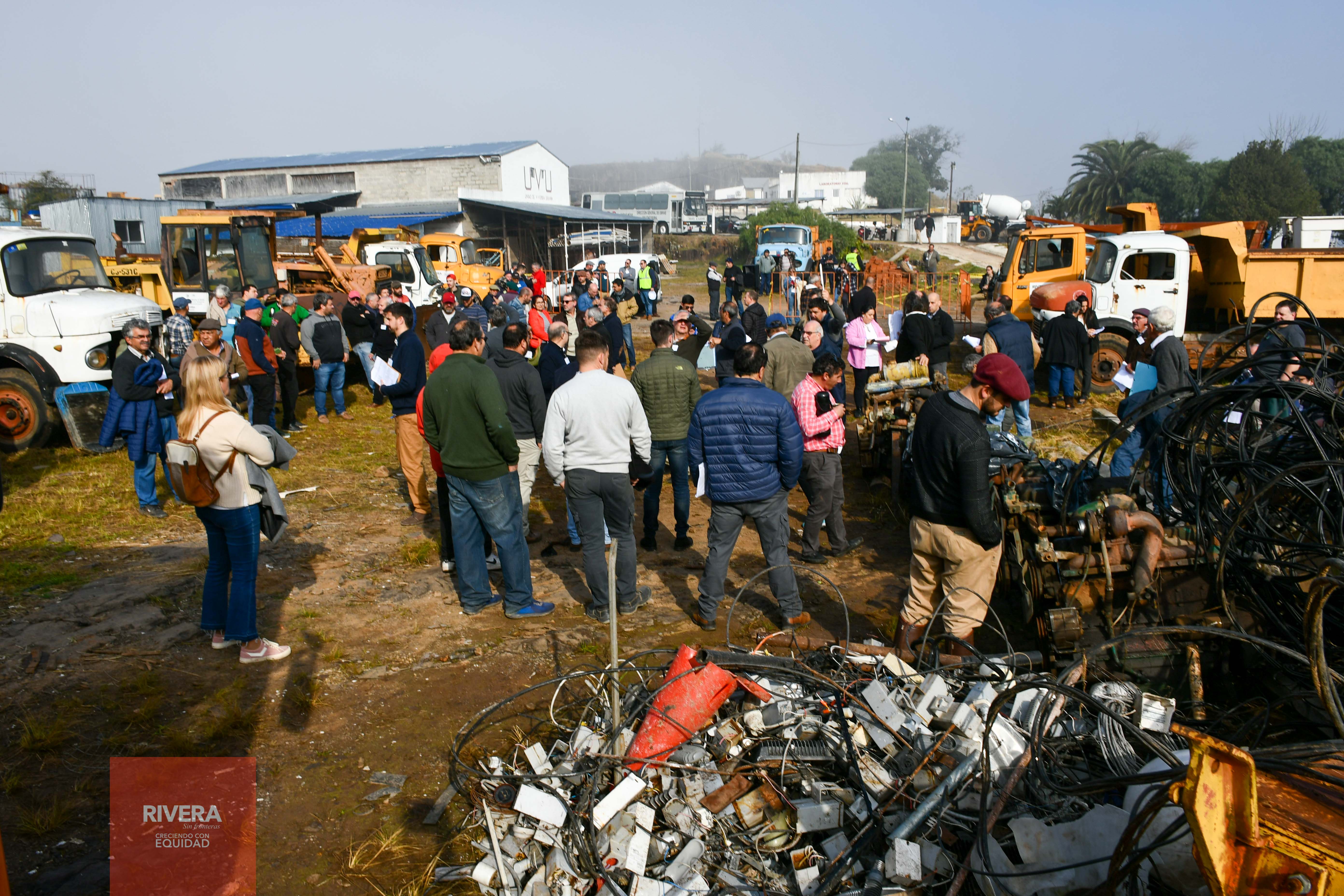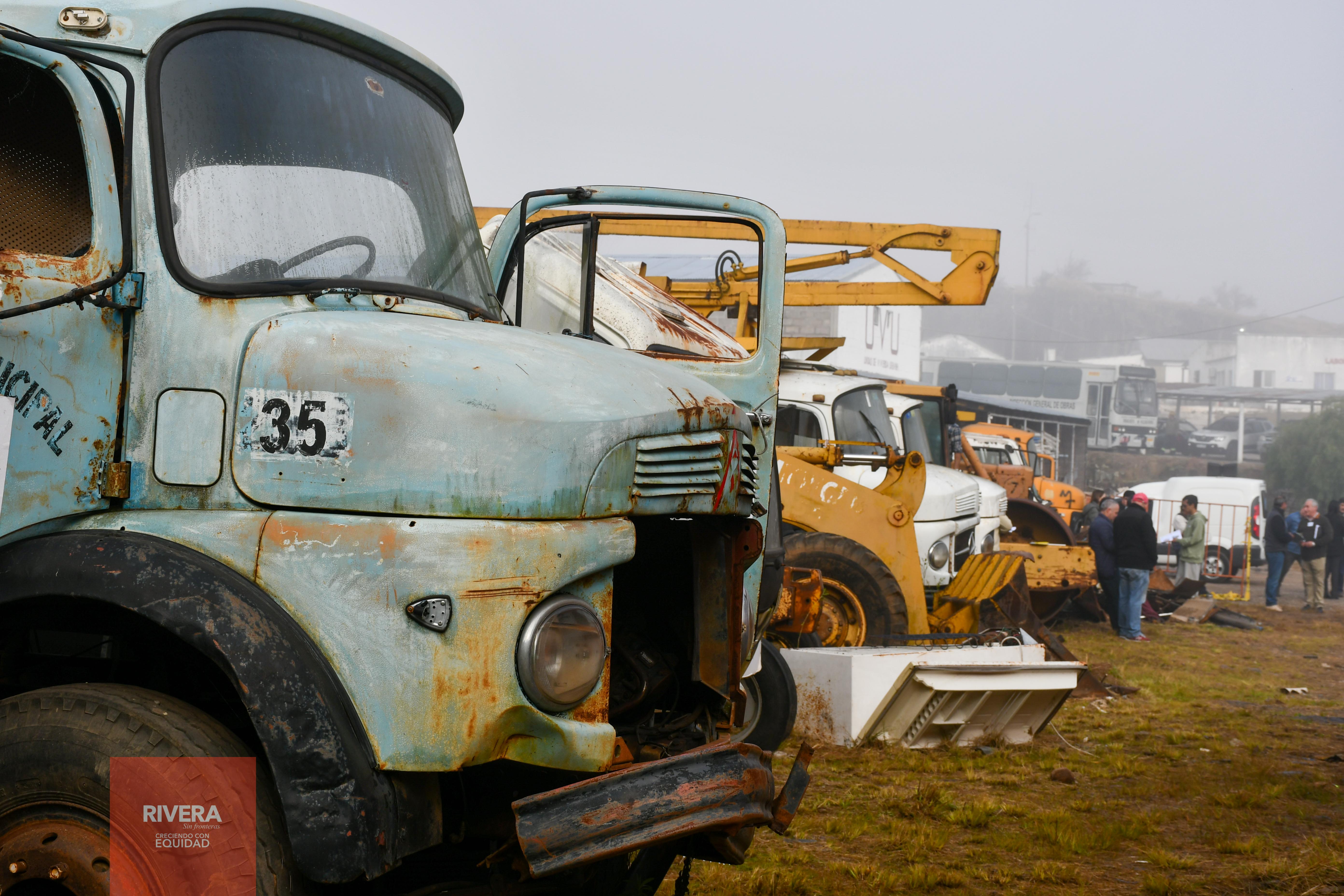 El remate de vehículos y chatarras propiedad de la Intendencia Departamental de Rivera fue un éxito (lunes 22 de julio-Cantera Municipal); de los 46 lotes (con y sin base) se remataron 42 lotes, (219.000 U$S) en dólares americanos; los 4 lotes restantes no se llegó a la base.