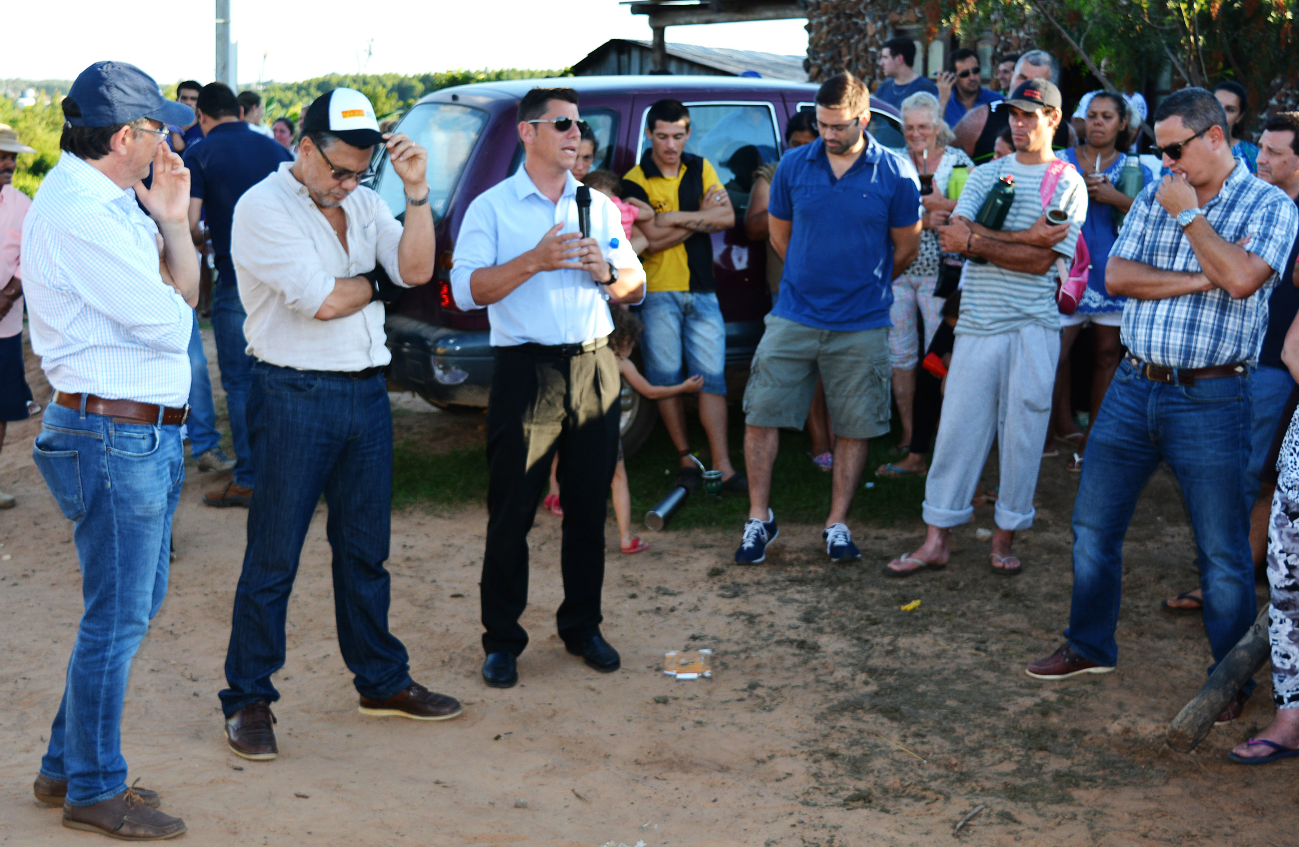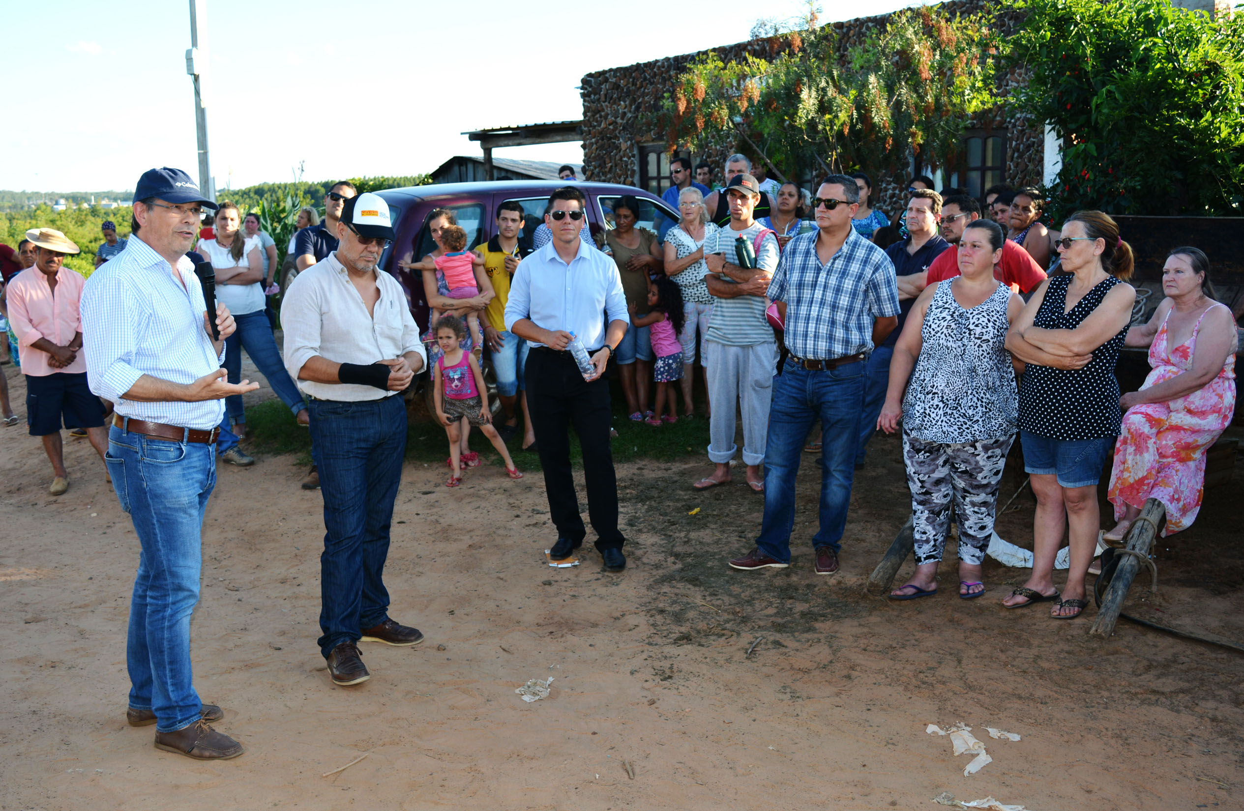 En la vereda, frente al merendero popular “San Alberto Hurtado”, que funciona desde hace varios años en una precaria construcción de madera en el Solar Nº20, el mandatario comunal manifestó: “..vinimos a dar las buenas nuevas, ya que las tierras del asentamiento le pertenecen a la Intendencia de Rivera, luego de un largo trámite y ahora luego de la titularidad de la tierra, presentar un proyecto de regularización, firmar un convenio con el gobierno nacional y así empezar a realizar intervenciones mejorando condiciones básicas que permitan tener servicio de higiene, seguridad en alumbrado público, arreglar las calles y demás. Estamos contentos y los vecinos también, trabajando juntos”.