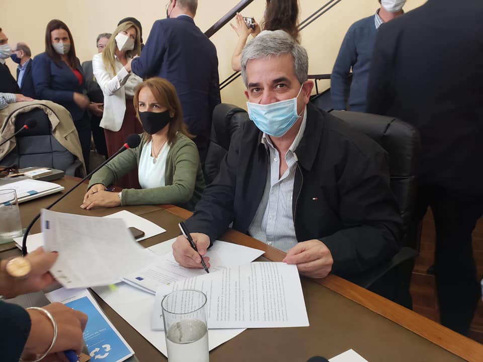 “Una etapa muy importante para el departamento de Rivera, fue la firma de los contratos con ANDE, el Congreso de Intendentes y la Unión Europea” Mazzoni informó que recibieron la visita del Embajador de la Unión Europea y la presidente de ANDE, quienes junto al secretario firmaron los dos proyectos para Rivera: