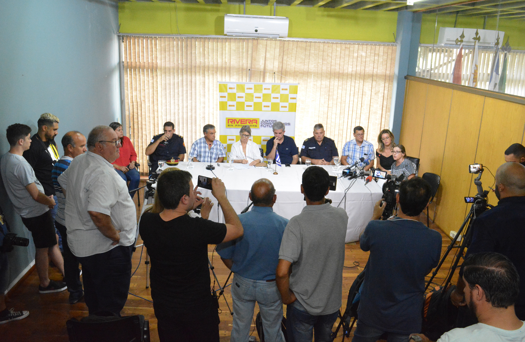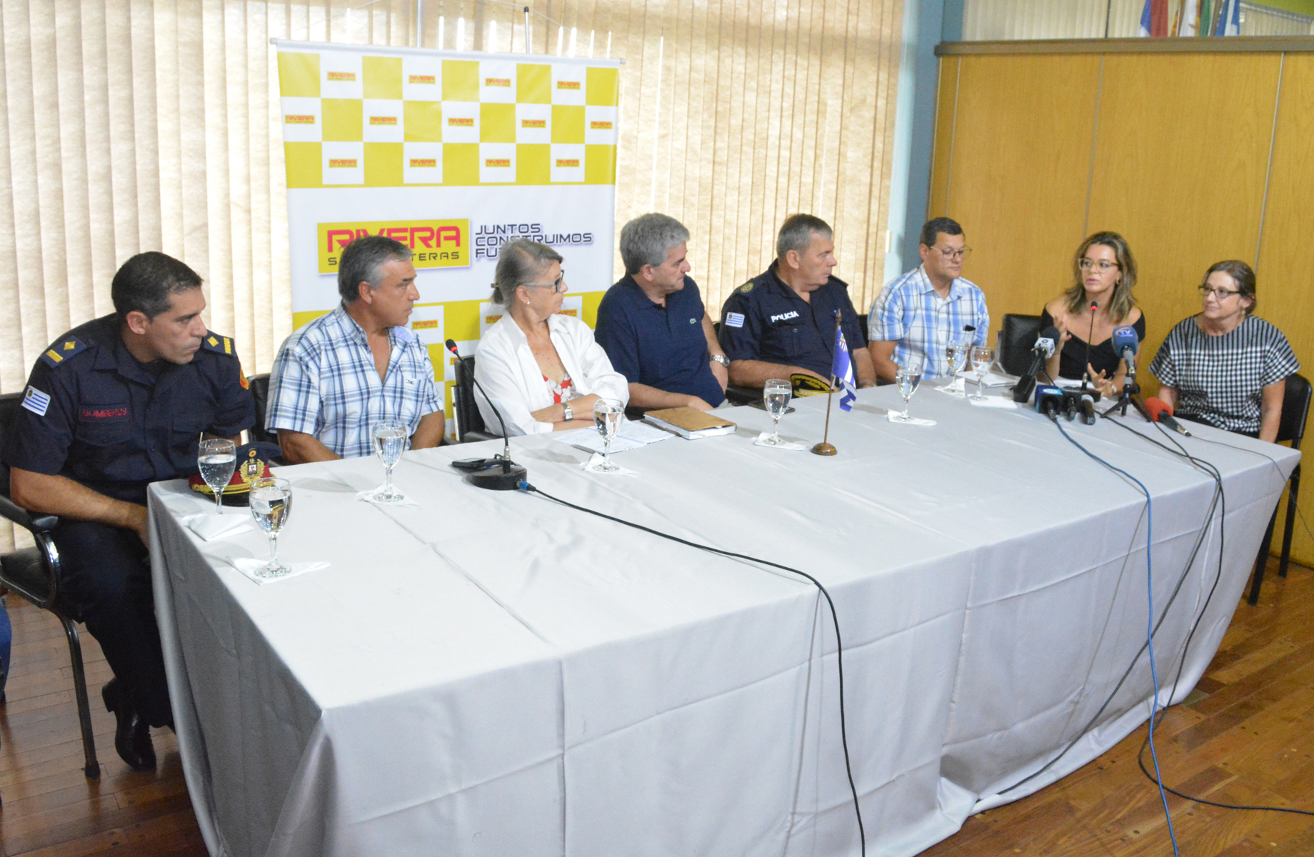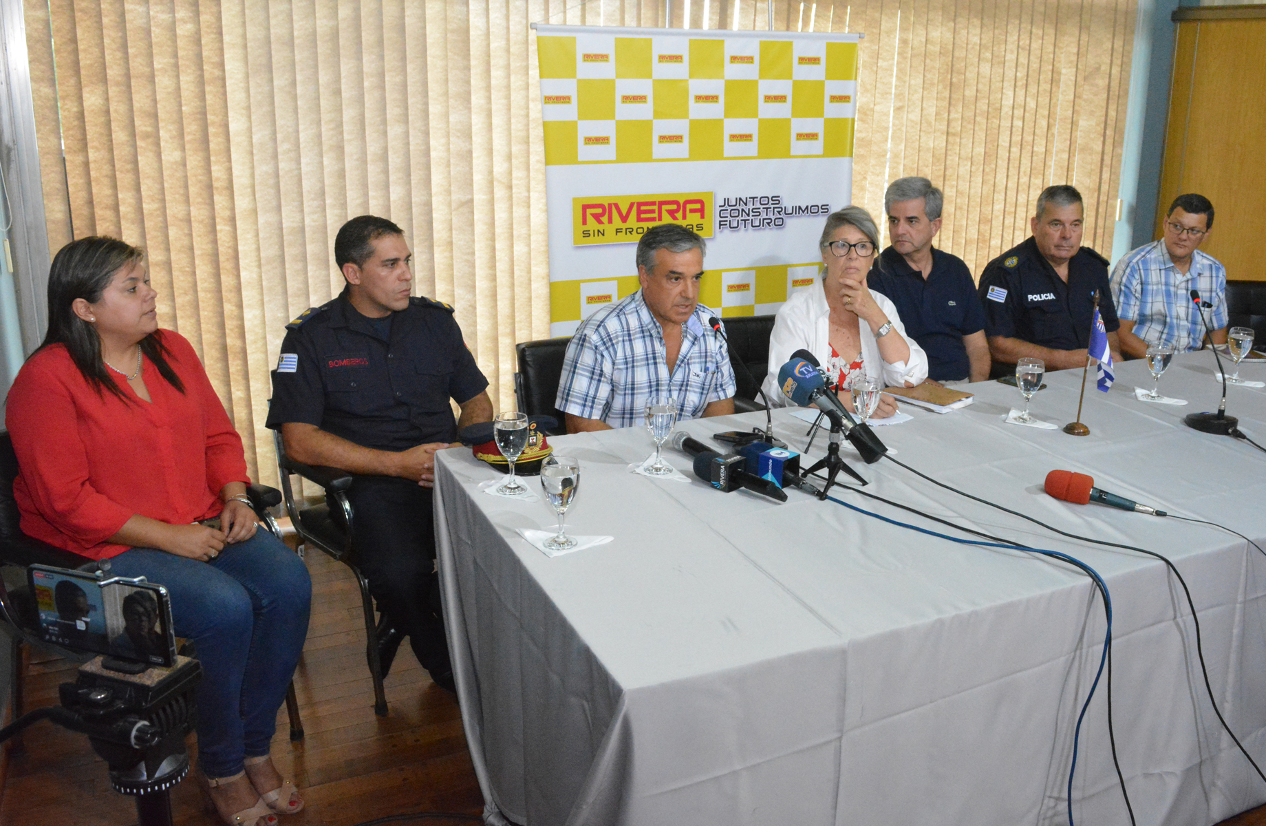 Las autoridades presentes en esta oportunidad, la intendente Departamental de Rivera Alma Galup Migliarini, secretario General Arq. José Mazzoni, Jefe de Policía Crio. Gral. ( R ) Wilfredo Rodríguez, director Departamental de Salud Dr. Carlos Sarríes, coordinador del CECOED Gustavo Guedes, Jefe de Bomberos Sub. Comisario Víctor Fagúndez y Referente MIDES Natalia López.