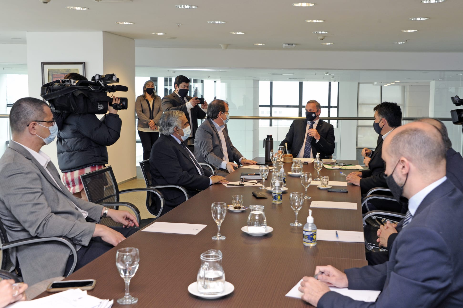 Las declaraciones en conferencia de prensa tuvieron lugar tras un encuentro con una delegación del Congreso de Intendentes representado por los jefes de las jurisdicciones departamentales de Río Negro, Omar Lafluf; de Salto, Andrés Lima, y de Rivera, Richard Sander. También participaron el director nacional de Aduanas, Jaime Borgiani; el director de Asesoría Política Comercial del MEF, Juan Labraga, y la directora de Asesoría Tributaria del MEF, Pía Biestro.