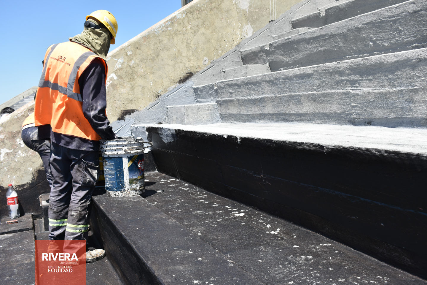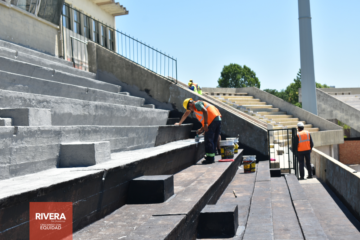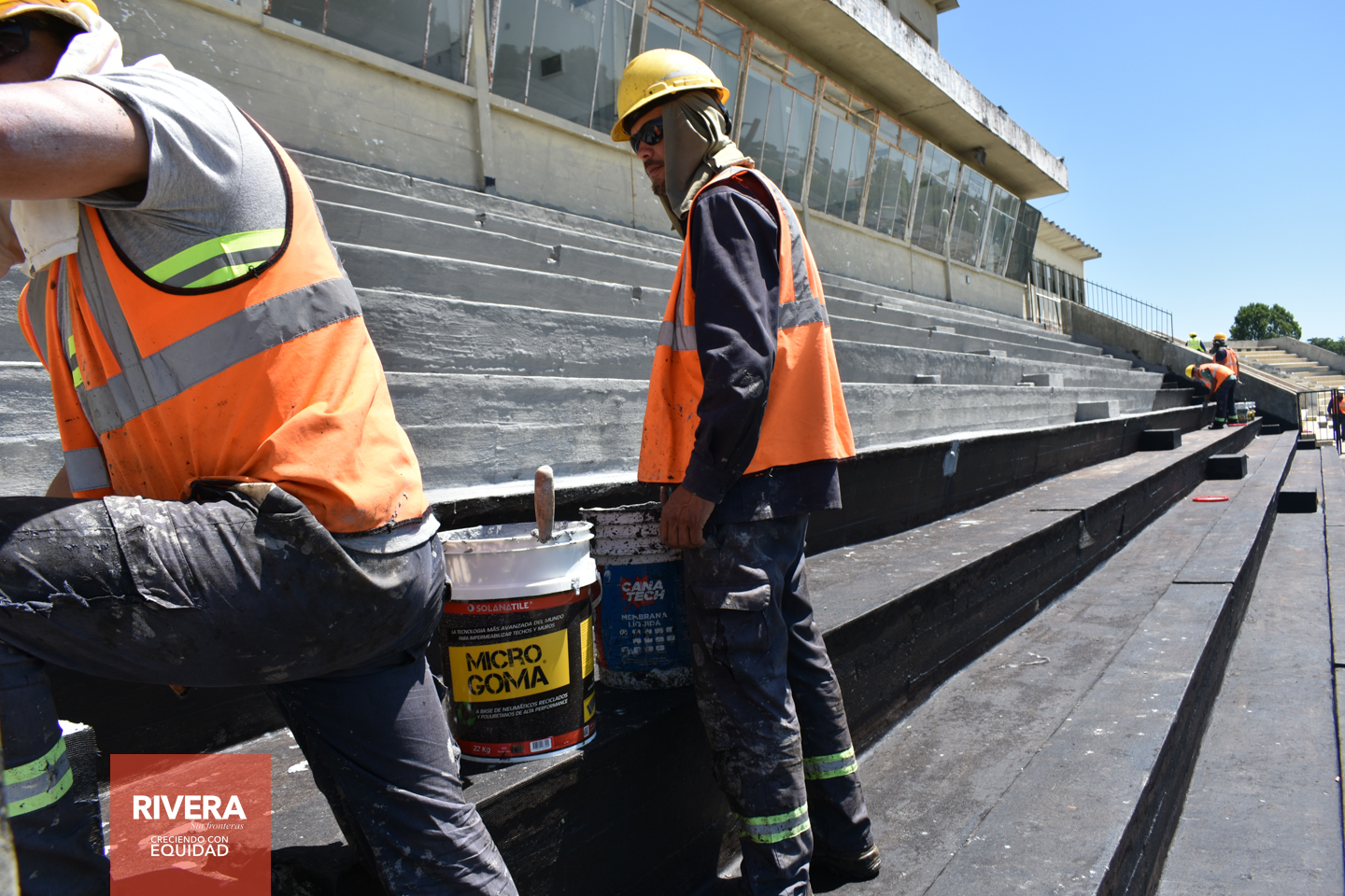 La primera etapa se centra en la tribuna principal y la pintura de la torre de iluminación; el director general de Obras de la IDR enfatizó en los detalles e informó sobre el llamado próximo desde la Intendencia para licitar la iluminación Led del estadio (el cual busca estar entre los principales estadios del Uruguay) y estar al nivel de lo que exige la Confederación Sudamericana de Fútbol.